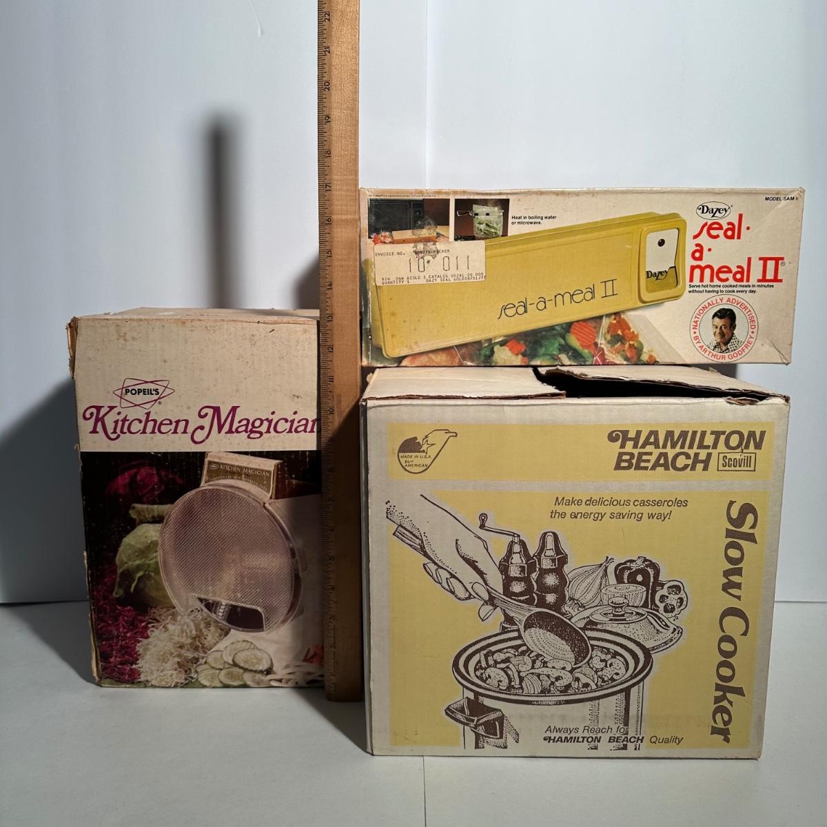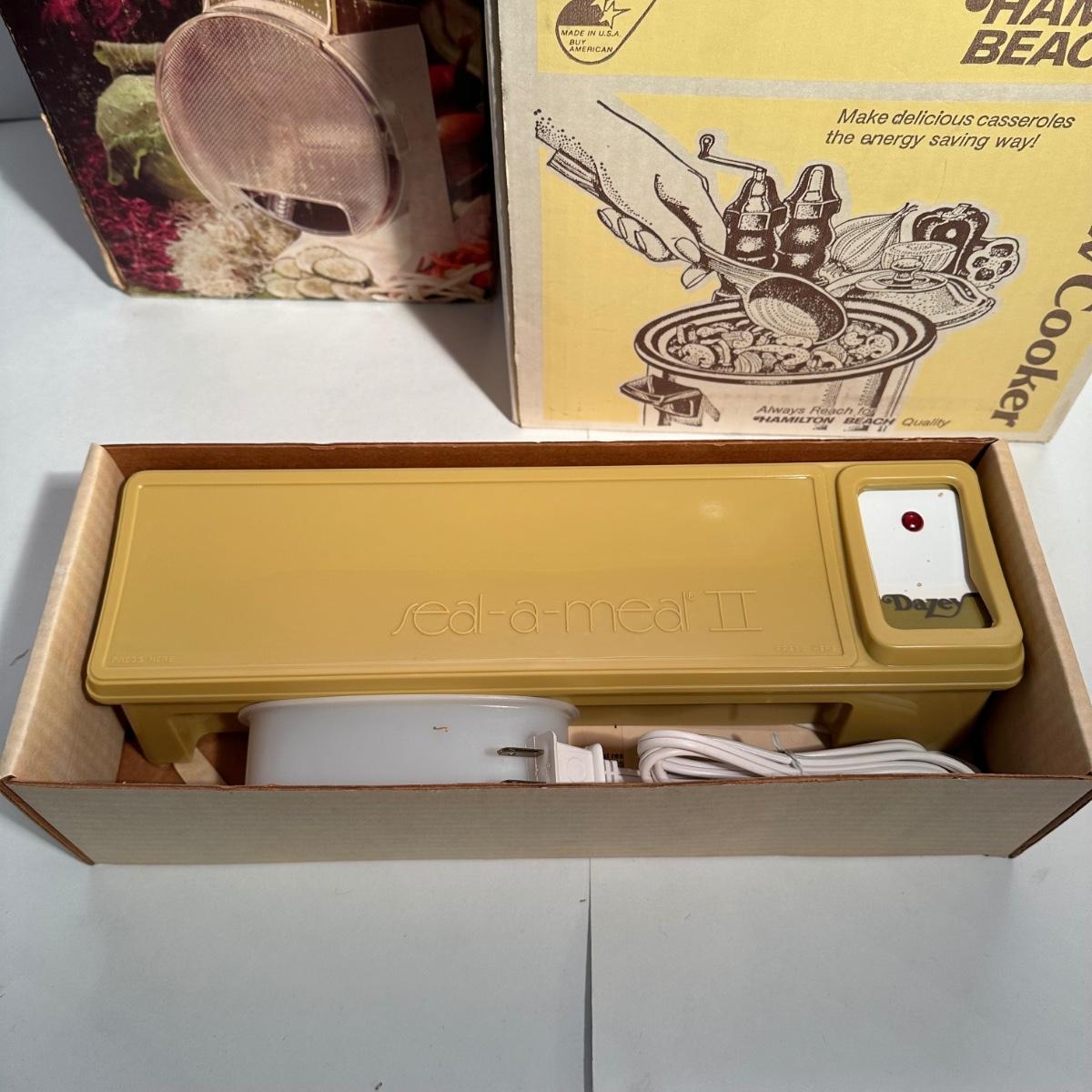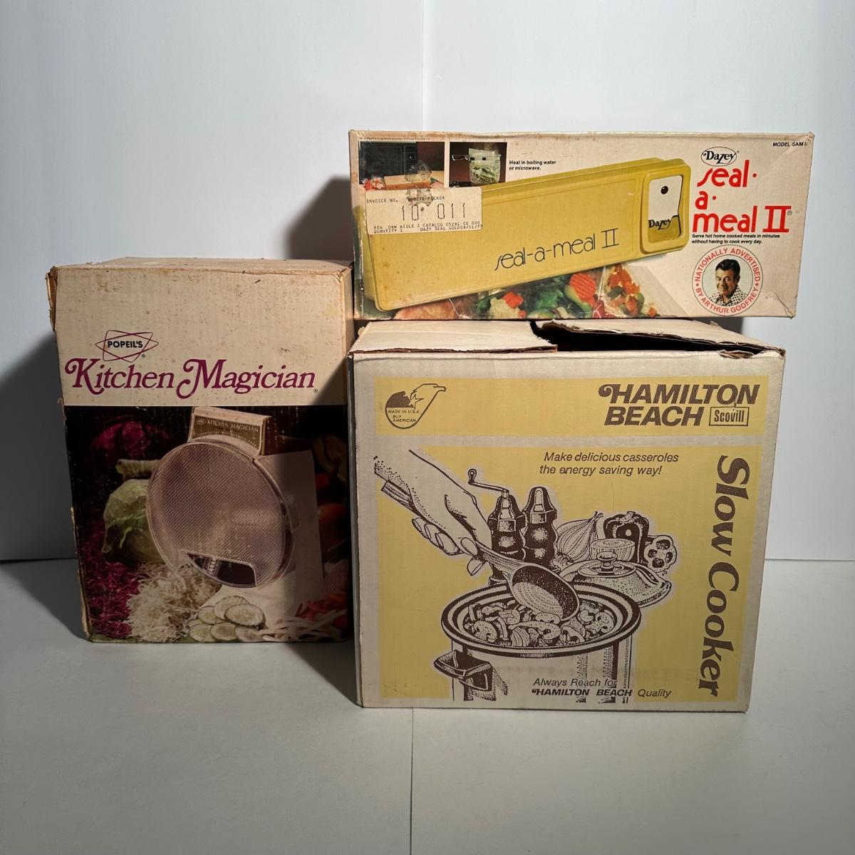 LOT 122D: Vintage Kitchen Appliances- Hamilton Beach Slow Cooker, Kitchen Magician Food Cutter & Dazey Seal a Meal