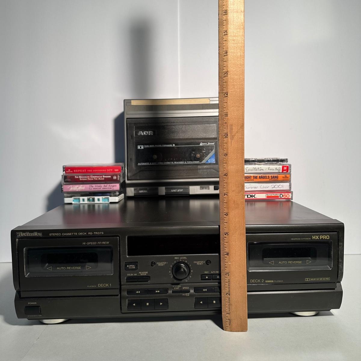 LOT 126L: Technics Stereo Cassette Deck w/ ACR Video Cassette Rewinder & Cassettes