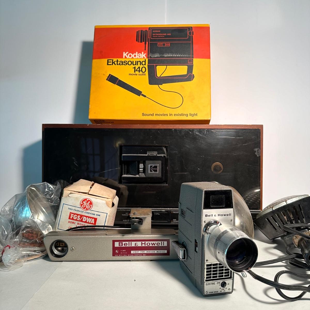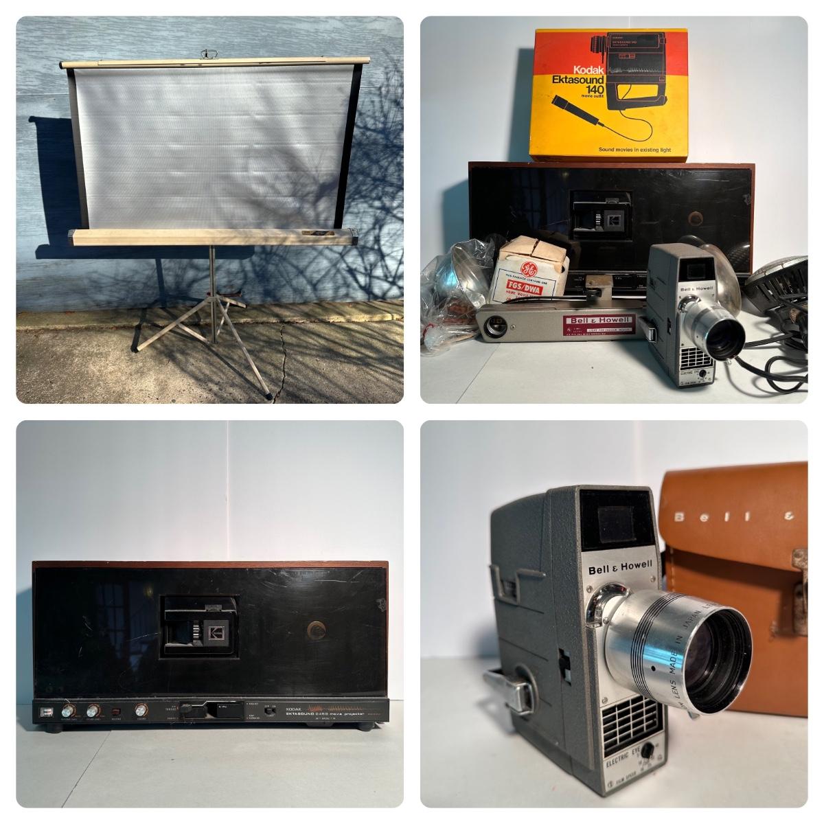 LOT 138L: Kodak Ektasound 235 Portable Super 8mm Movie Projector w/ Projection Screen, Kodak Ektasound 140 movie camera & More