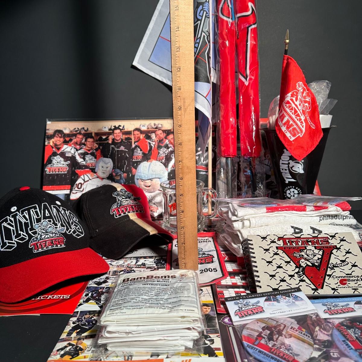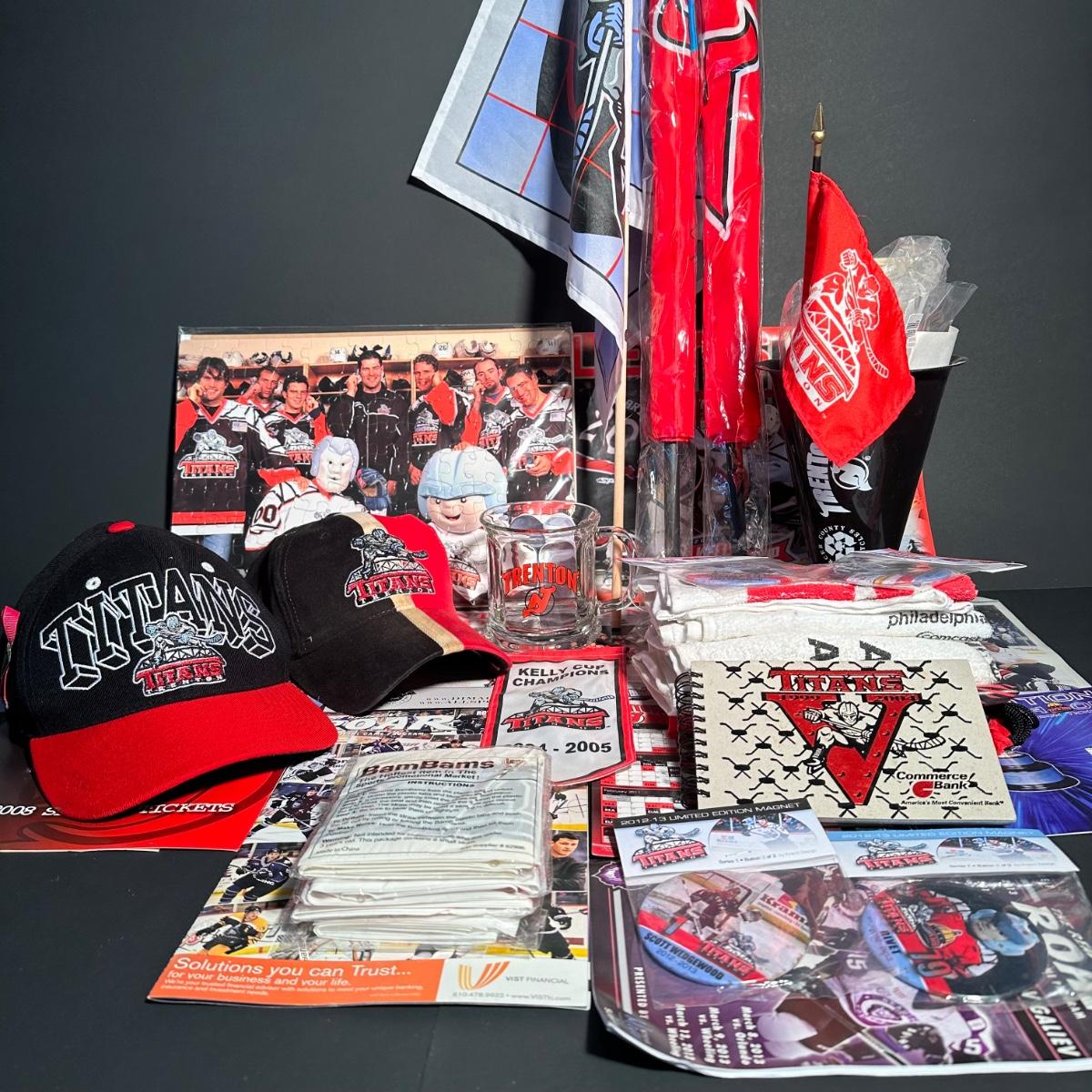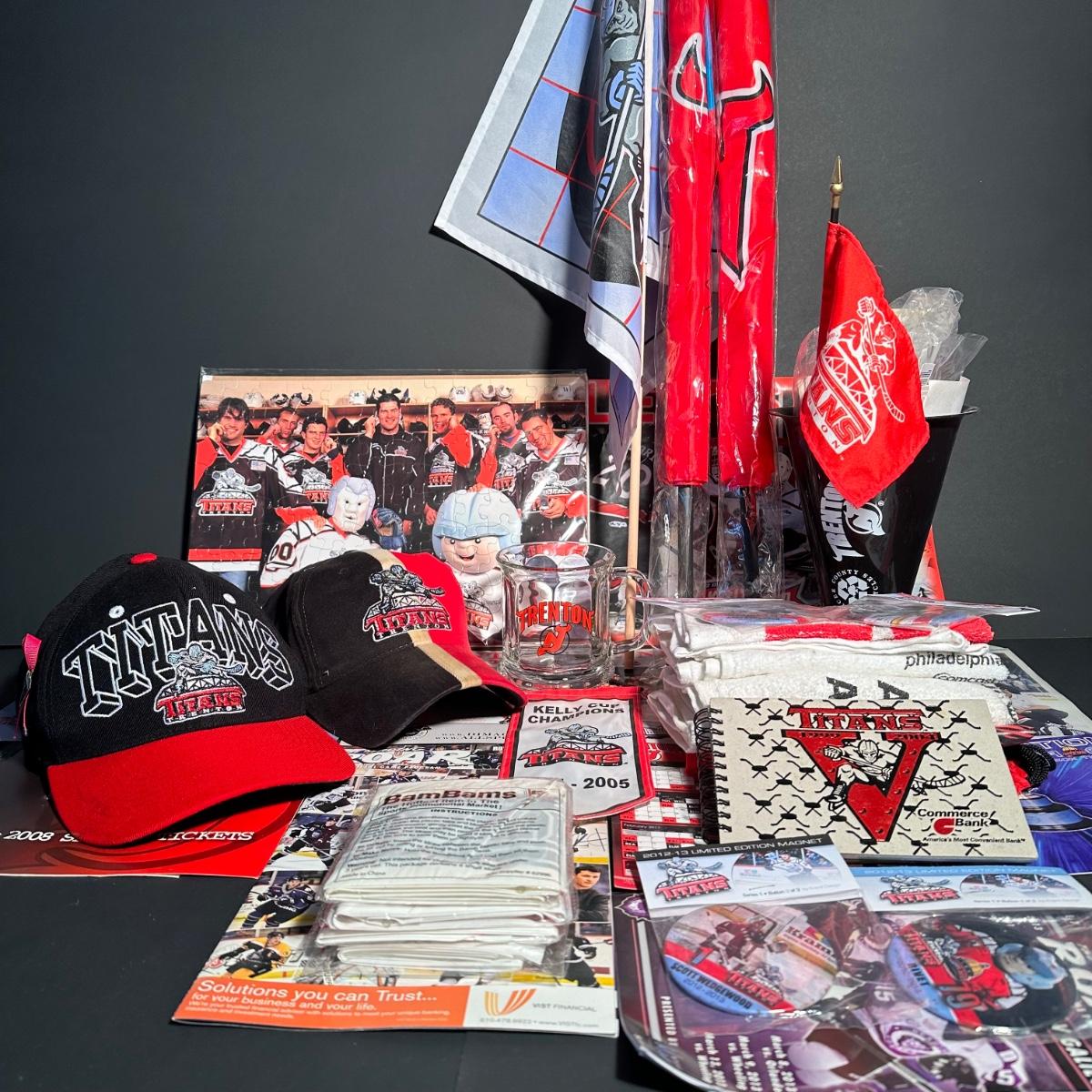 LOT 153L: Collection Of Trenton Titans Sports Memorabilia - Puzzle, Hats, Flags & More