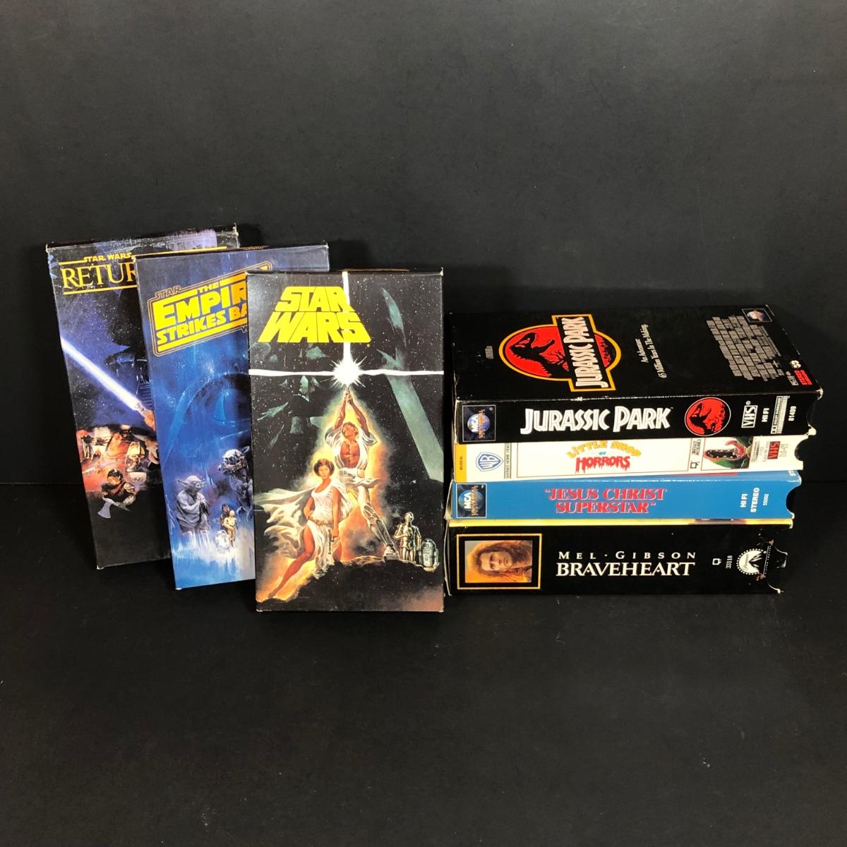 LOT 203L: VHS - Star Wars, Empire Strikes Back, Return of the Jedi, Jurassic Park, Little Shop of Horrors, Jesus Christ Superstar & Braveheart
