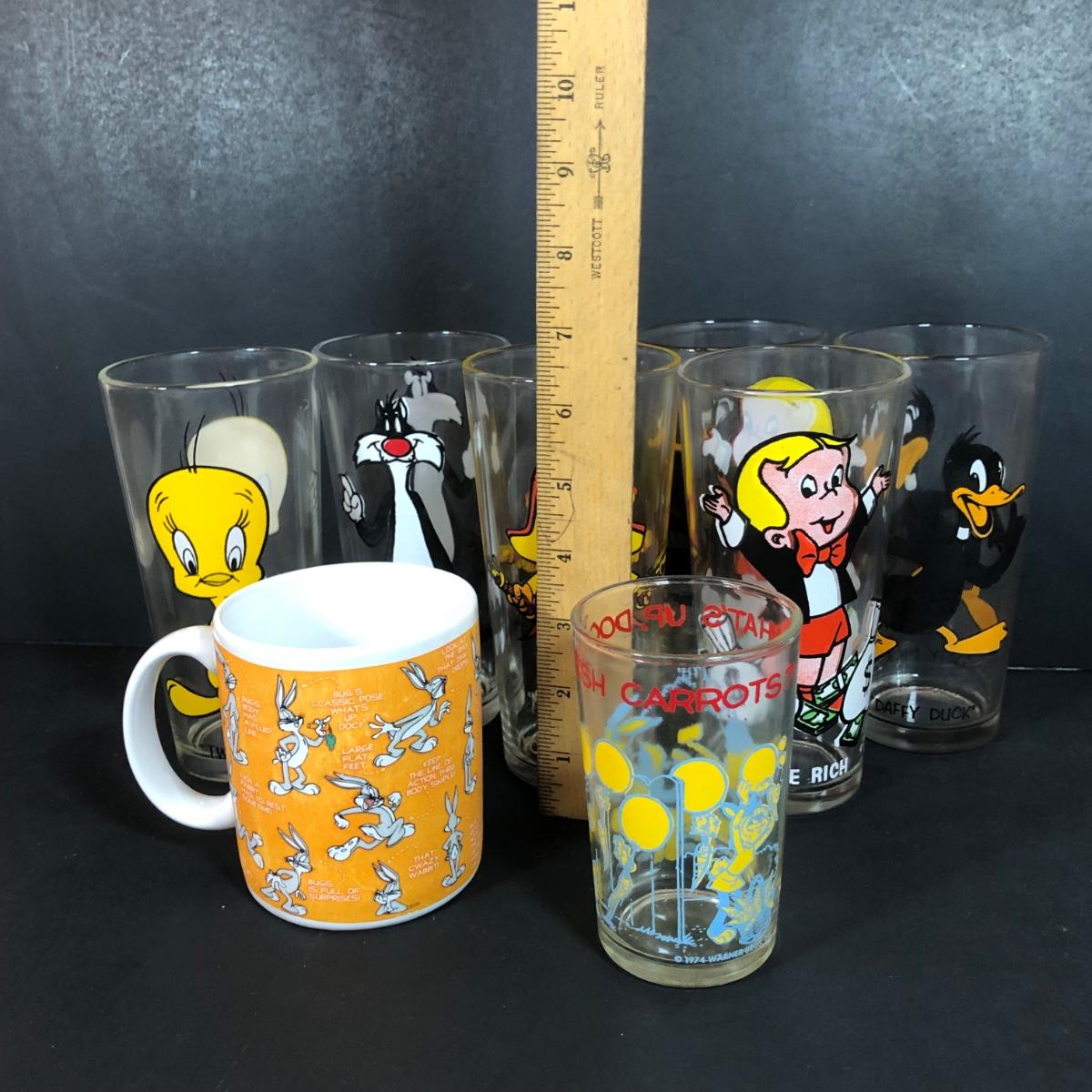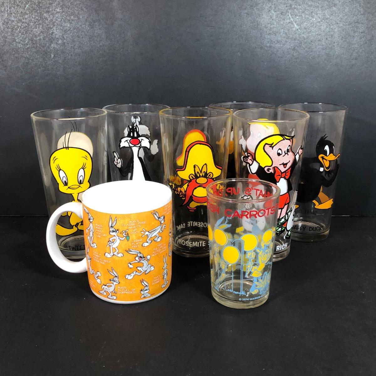 LOT 207K: 1973 Pepsi Collector's Series Looney Tunes Glasses, 1974 Warner Brothers Bugs Bunny Carrots Glass & Warner Brothers Studio Store Bugs Bunny Mug