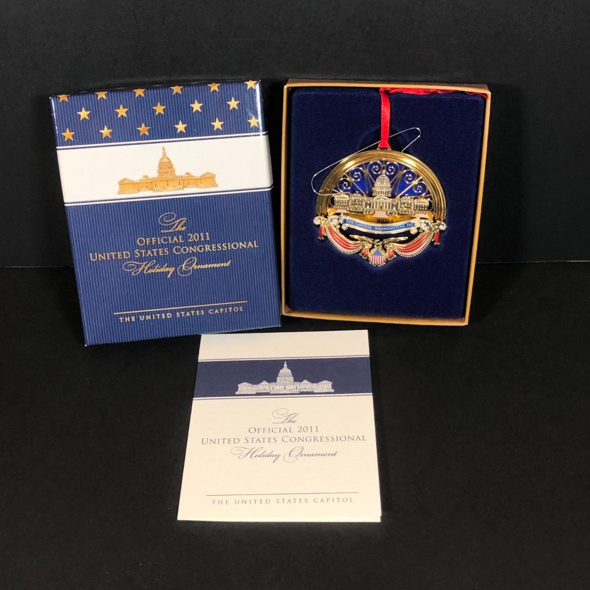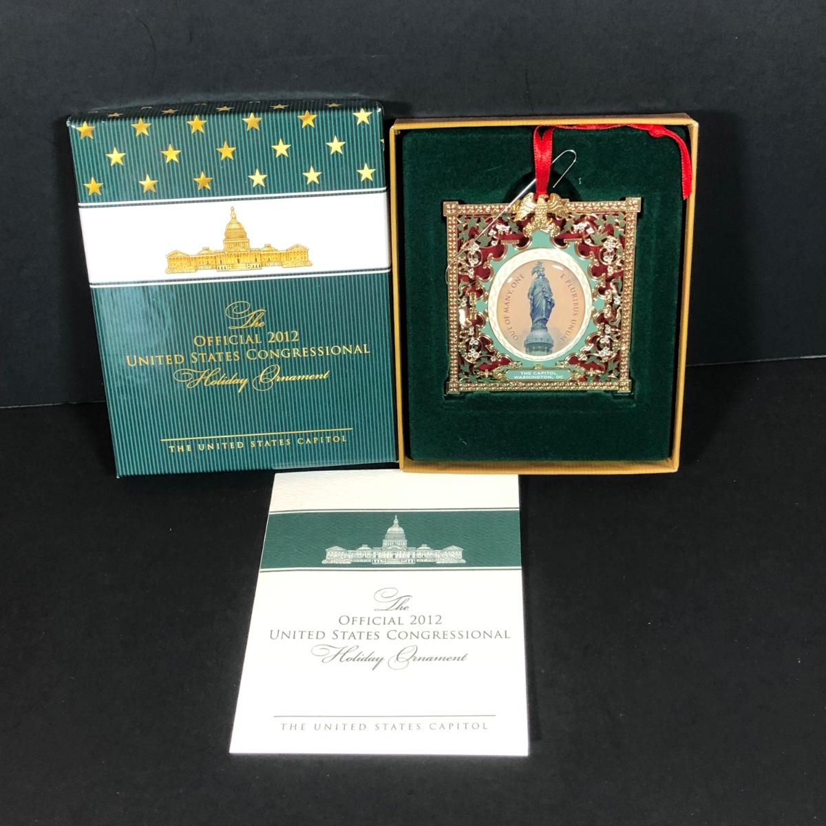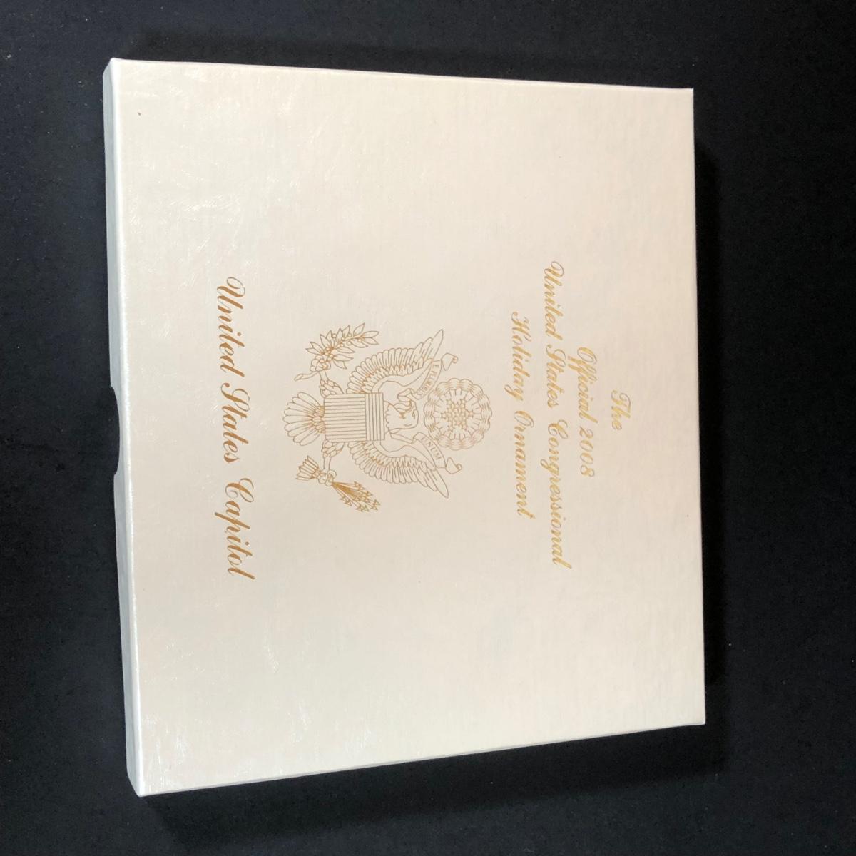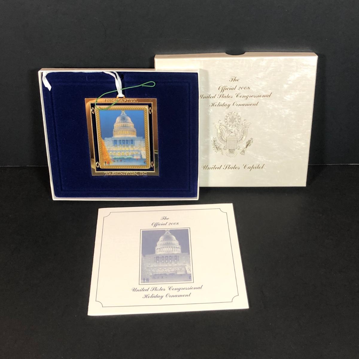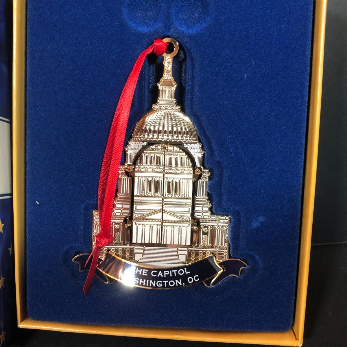 LOT 214F: Vintage Official US Congressional Holiday Ornaments in Boxes, Vintage USAF Sewing Kit, Lincoln Memorial Coin & Bicentennial Log Cabin Syrup Bottles