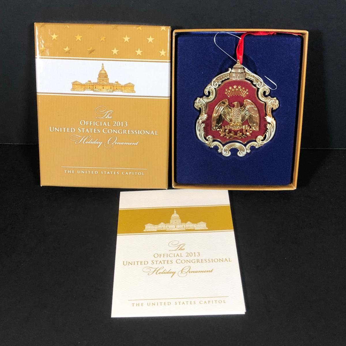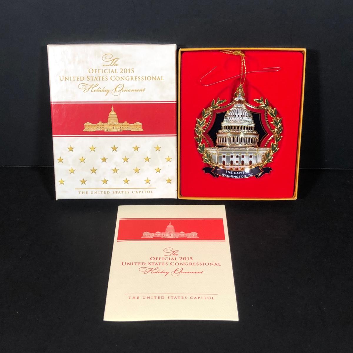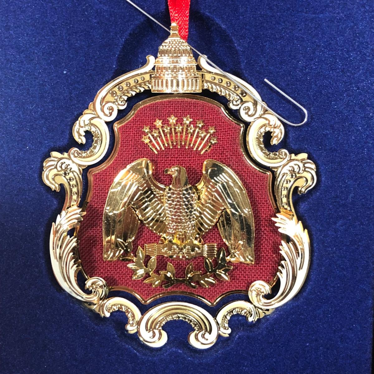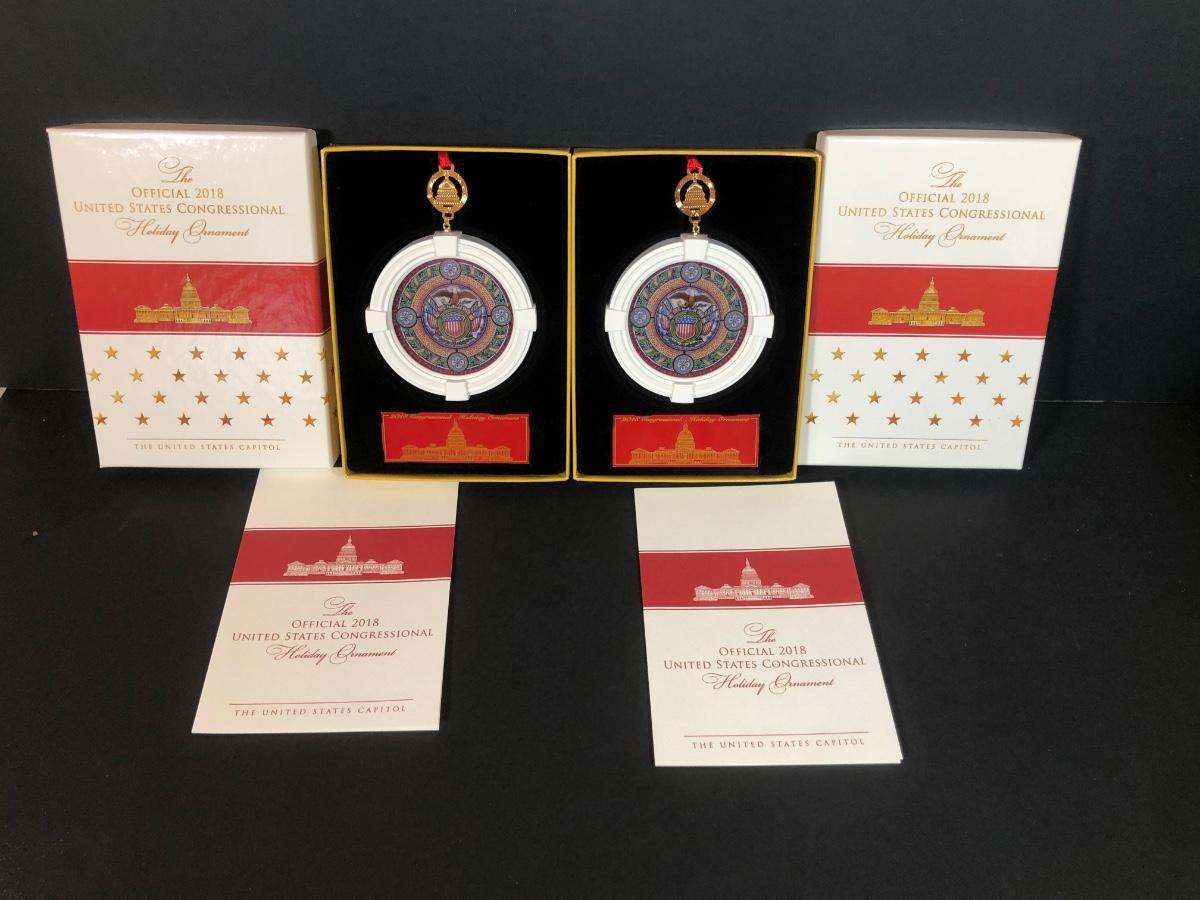 LOT 214F: Vintage Official US Congressional Holiday Ornaments in Boxes, Vintage USAF Sewing Kit, Lincoln Memorial Coin & Bicentennial Log Cabin Syrup Bottles