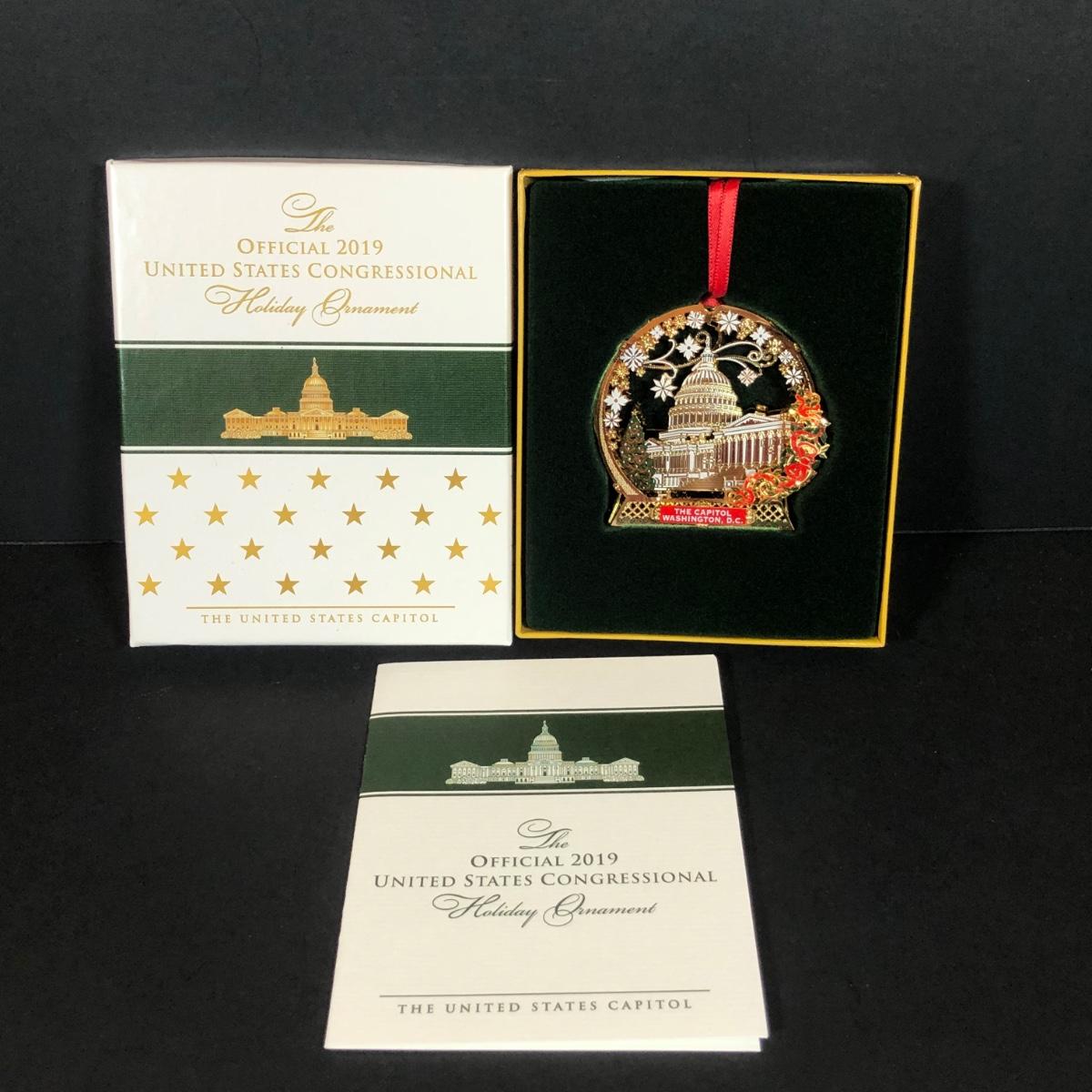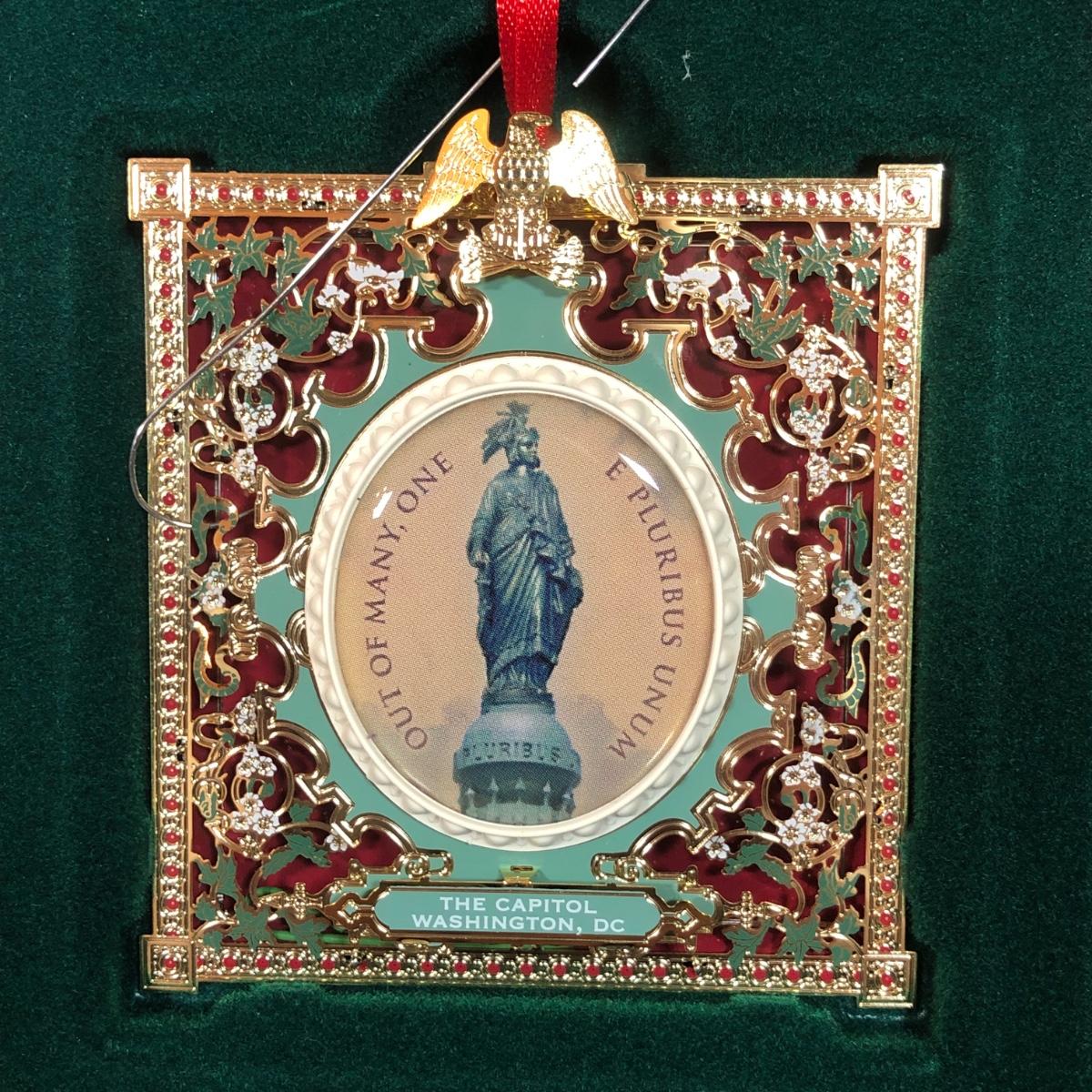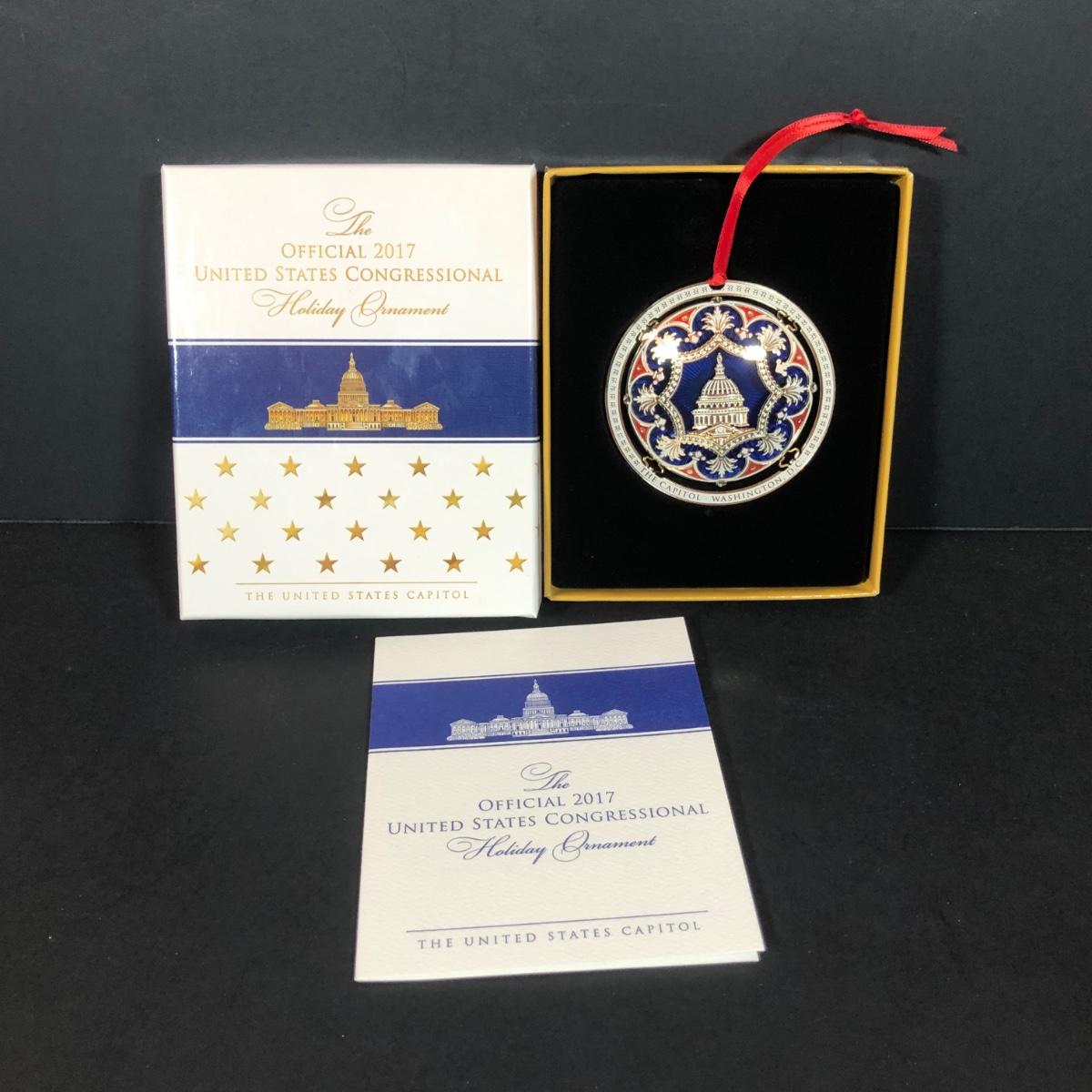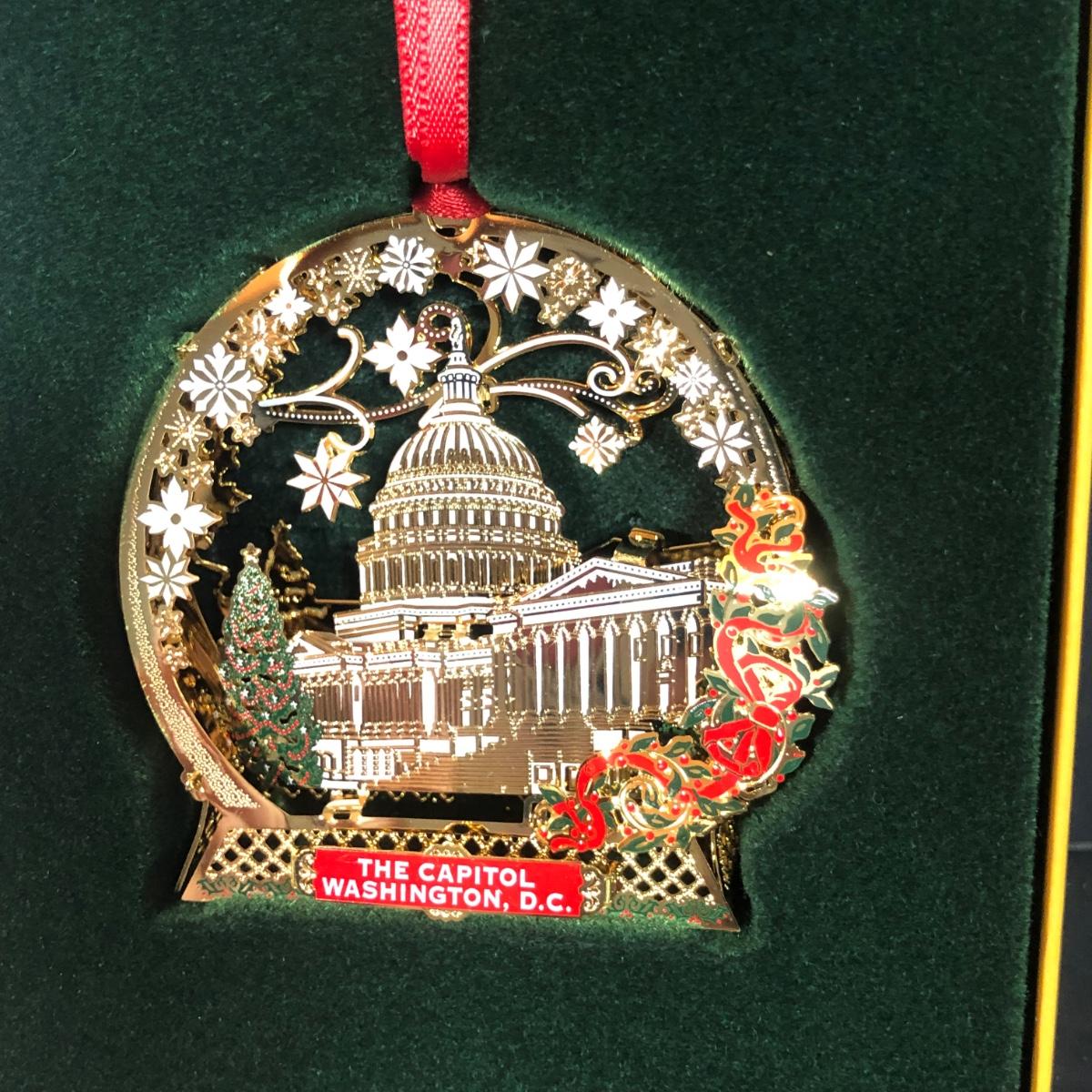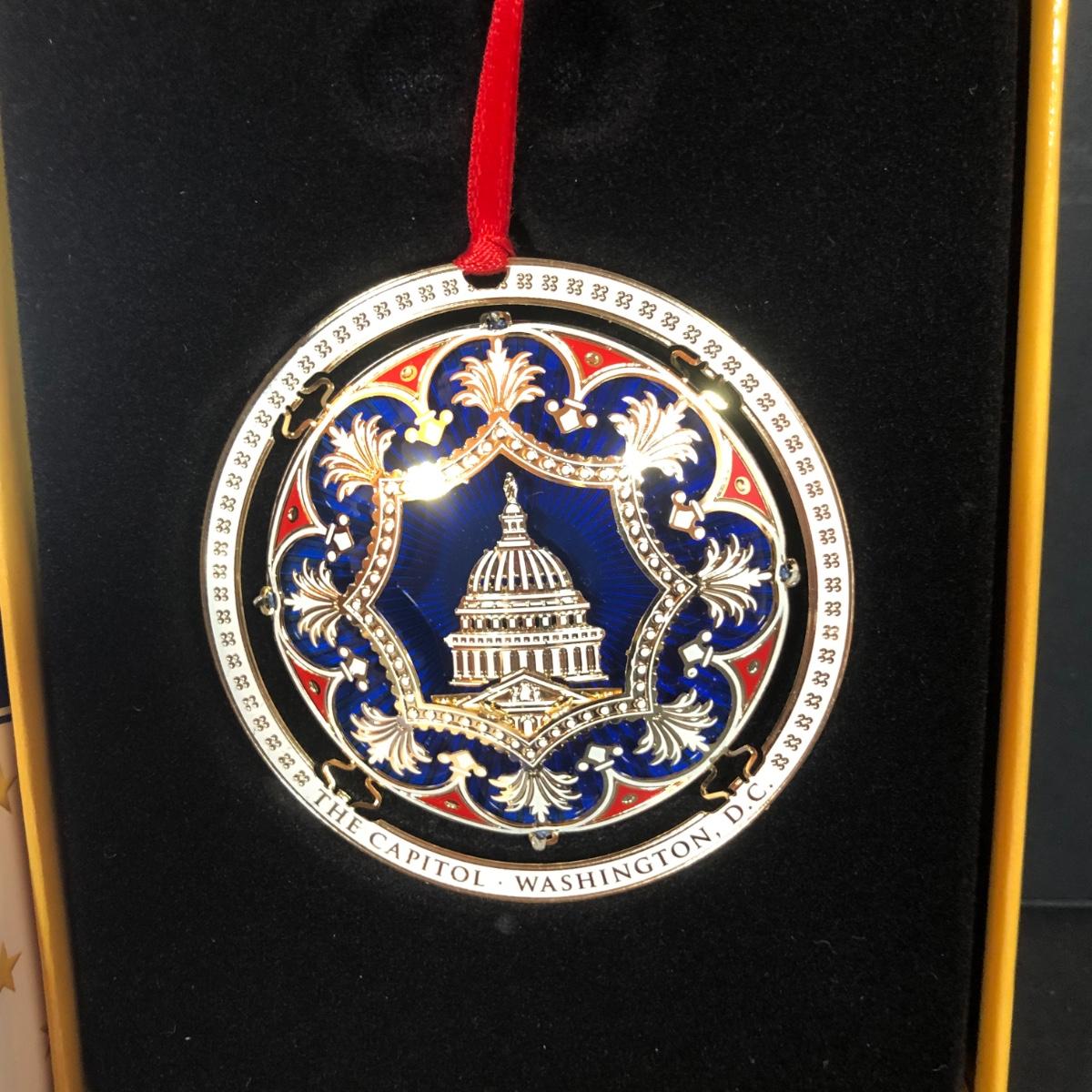 LOT 214F: Vintage Official US Congressional Holiday Ornaments in Boxes, Vintage USAF Sewing Kit, Lincoln Memorial Coin & Bicentennial Log Cabin Syrup Bottles