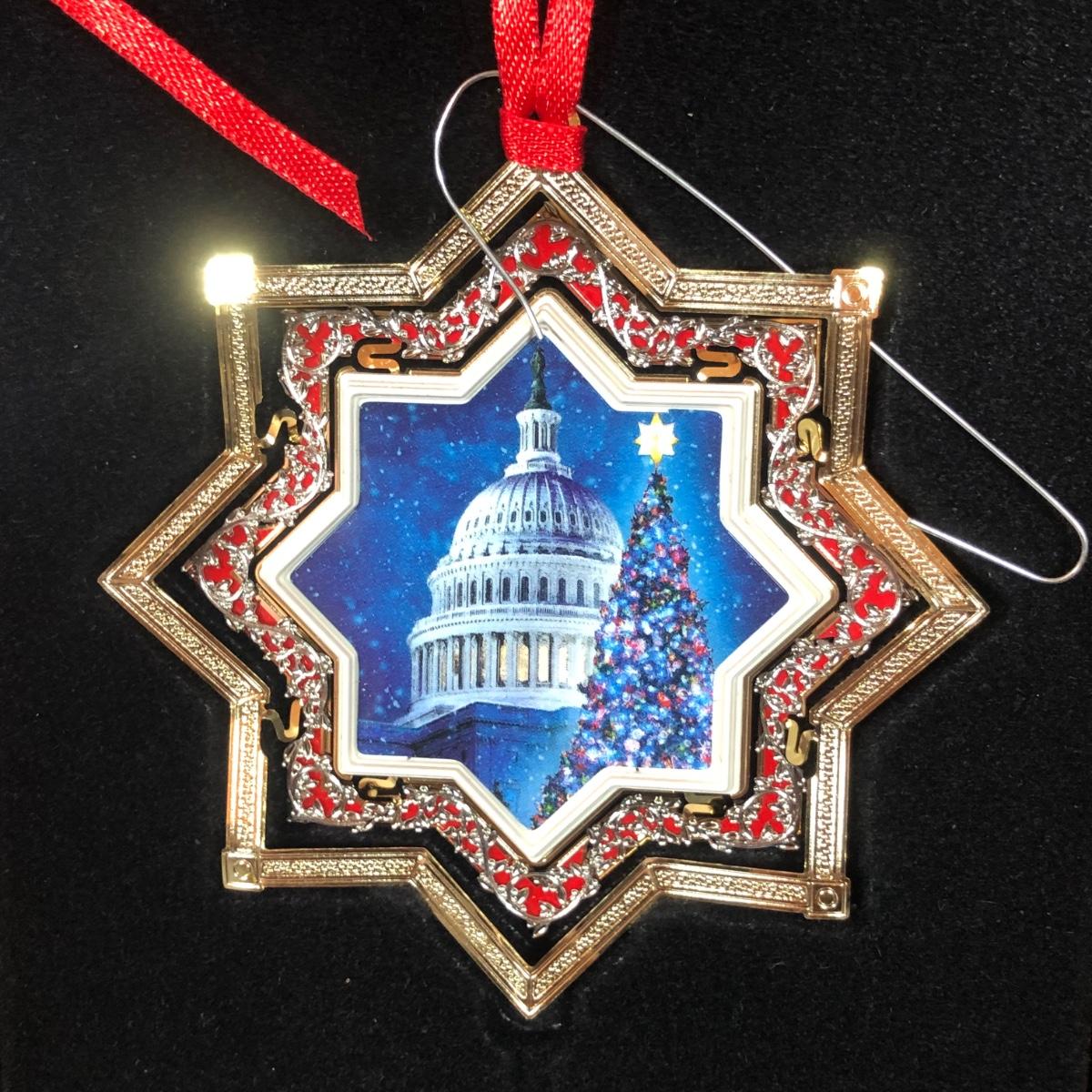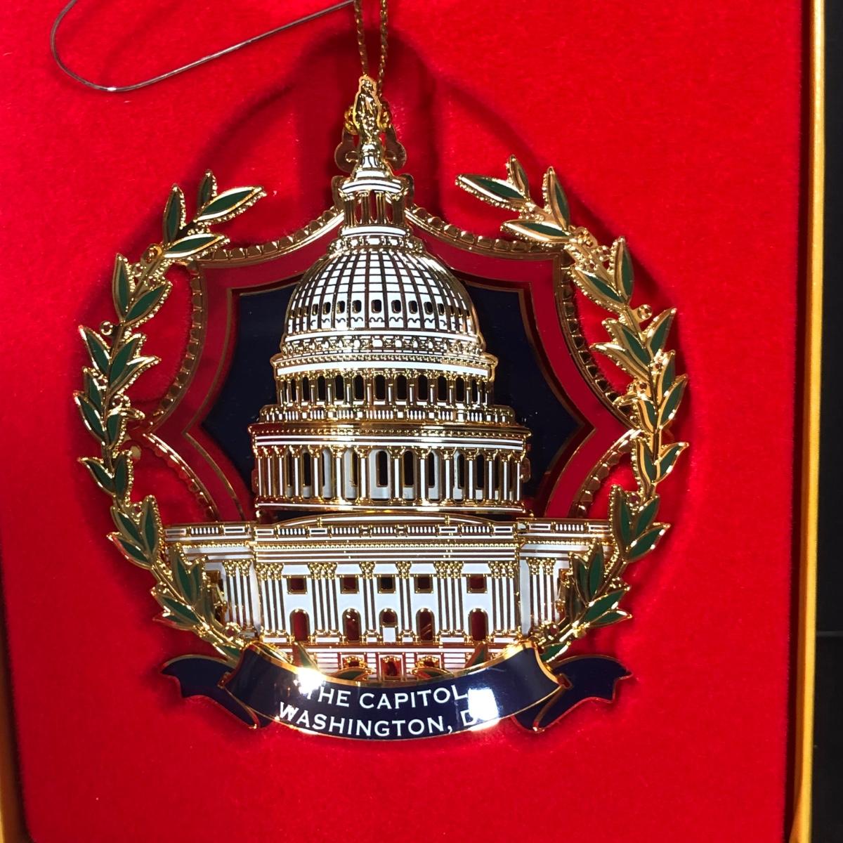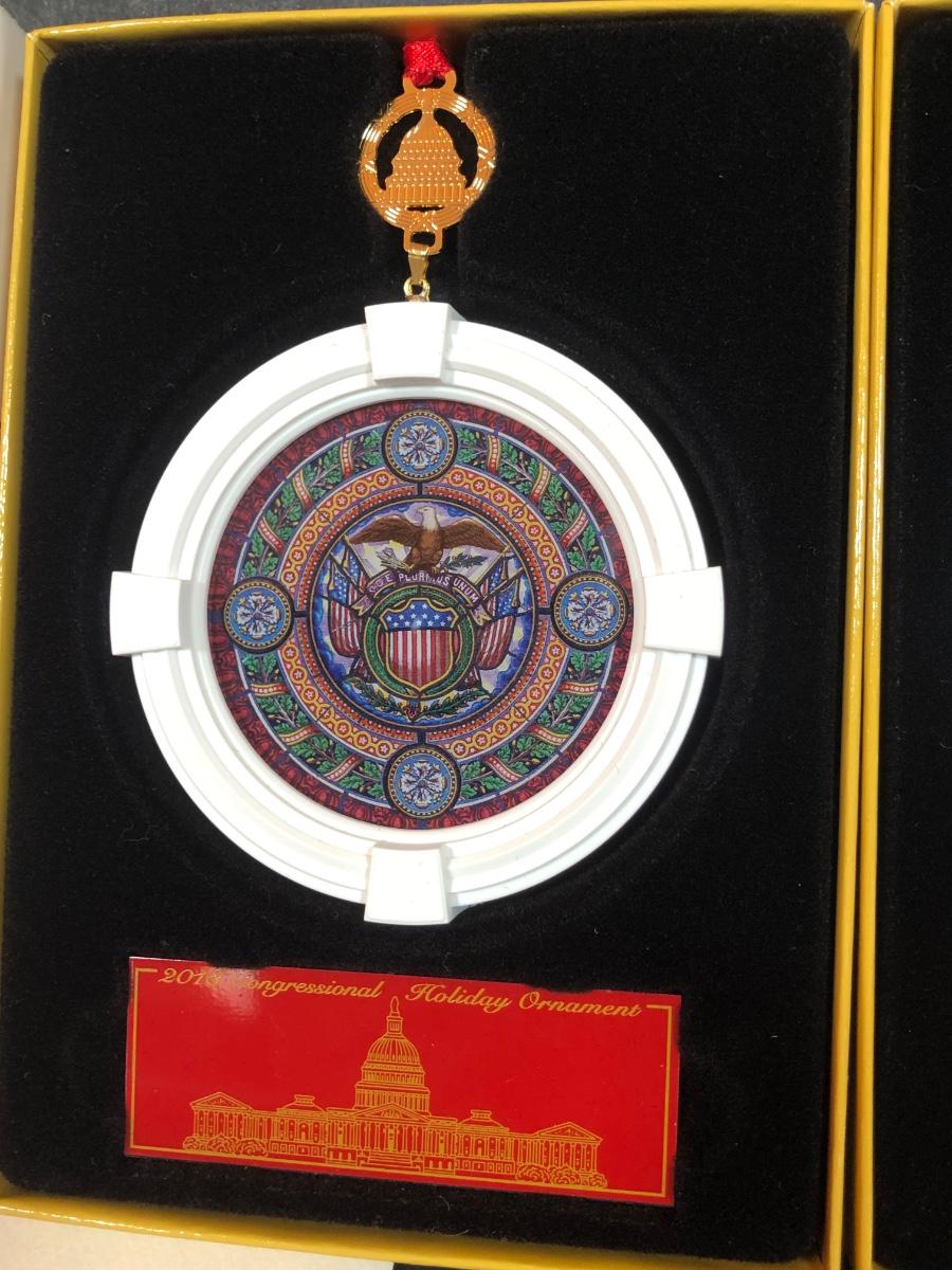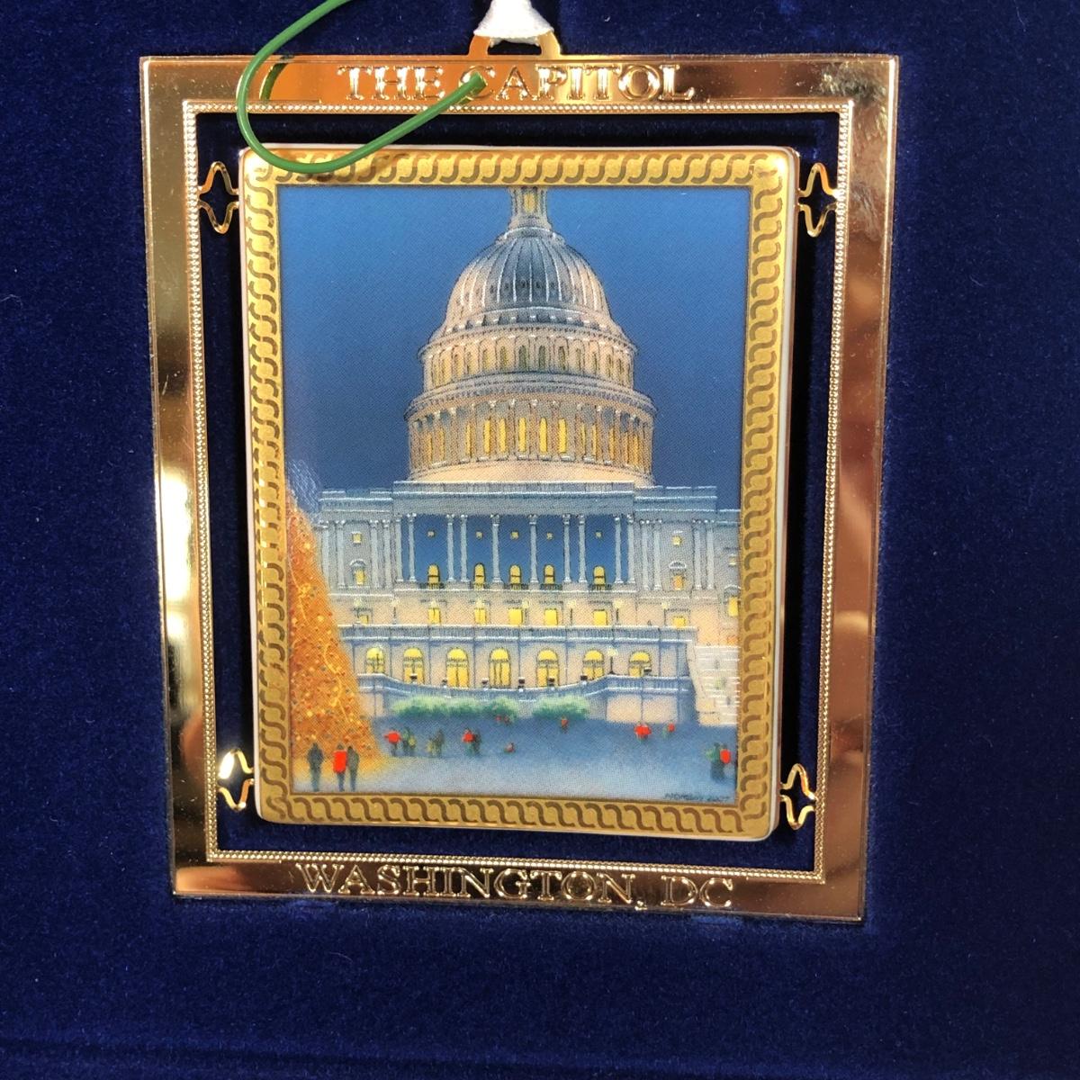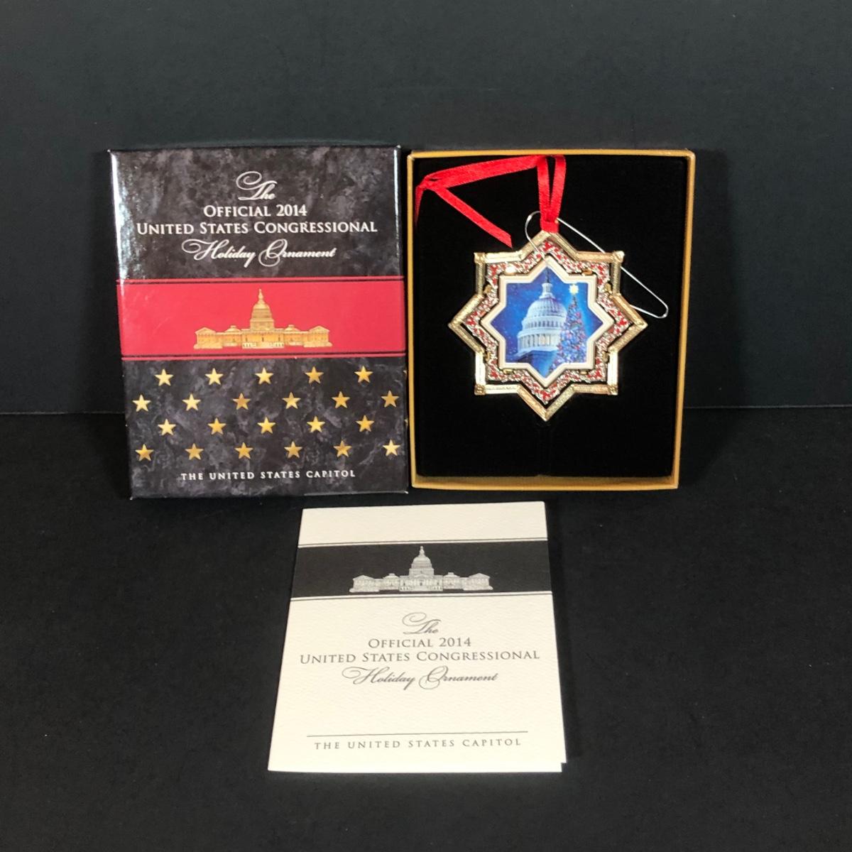 LOT 214F: Vintage Official US Congressional Holiday Ornaments in Boxes, Vintage USAF Sewing Kit, Lincoln Memorial Coin & Bicentennial Log Cabin Syrup Bottles