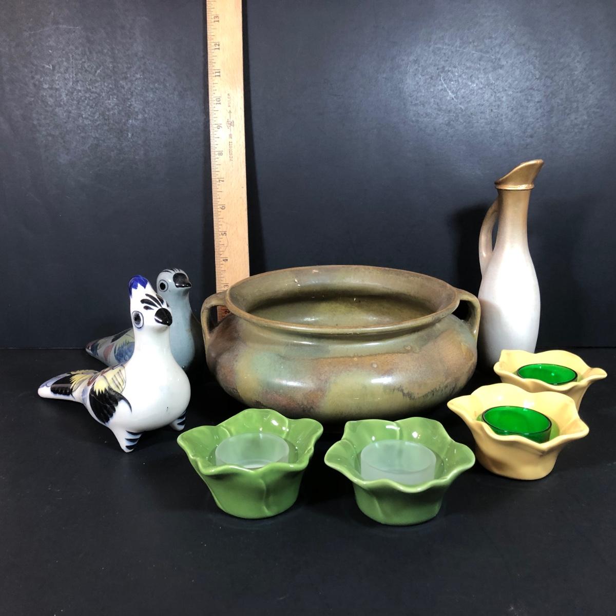 LOT 218D: Pottery Collection - Birds from Mexico, Southern Living at Home Petals of Light Candle Holders & More