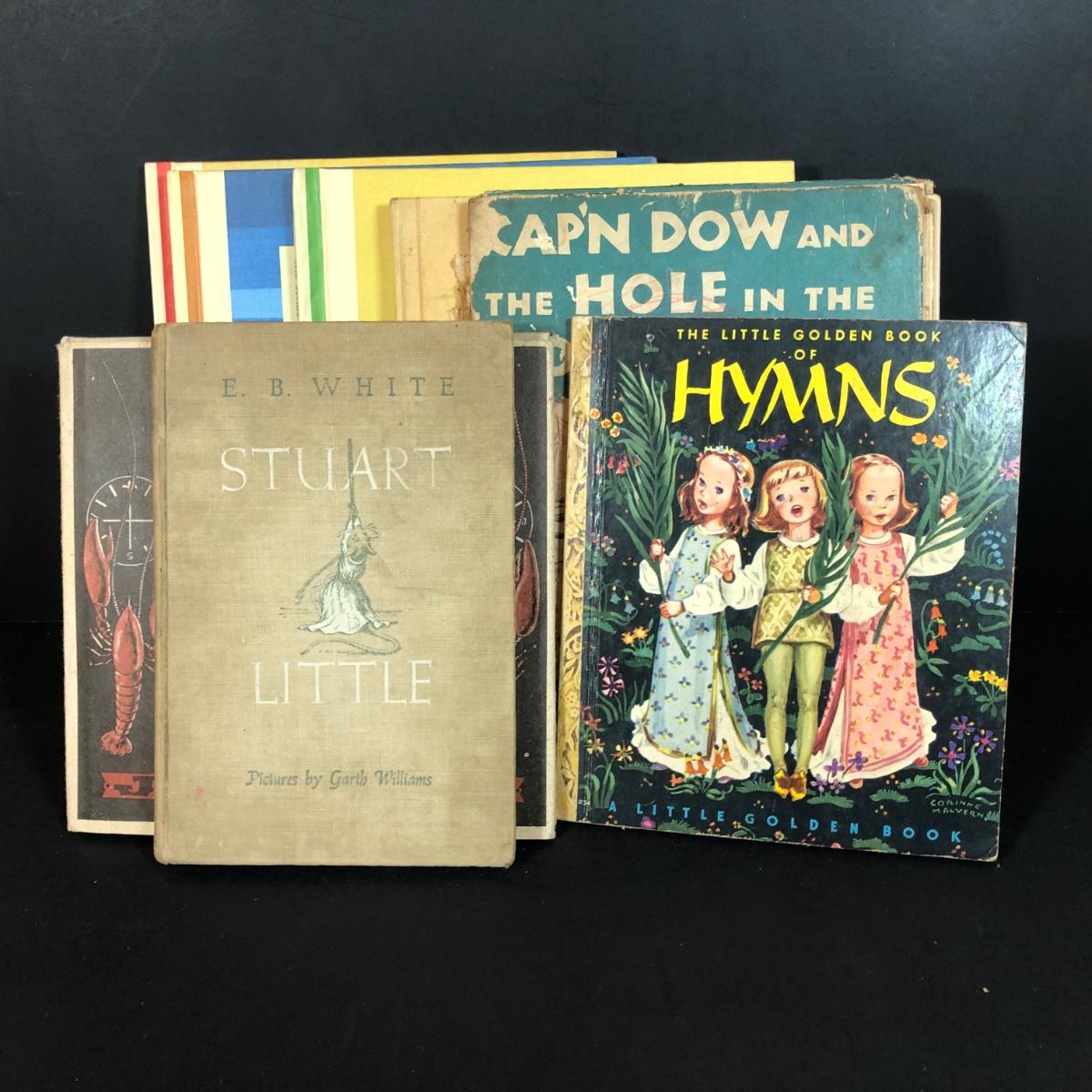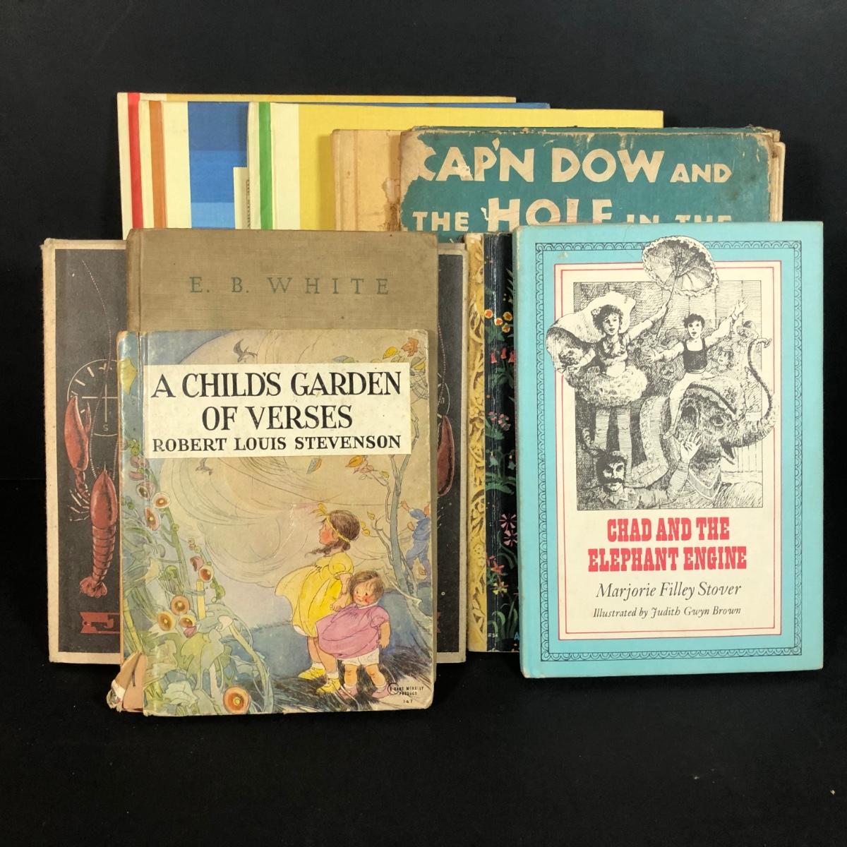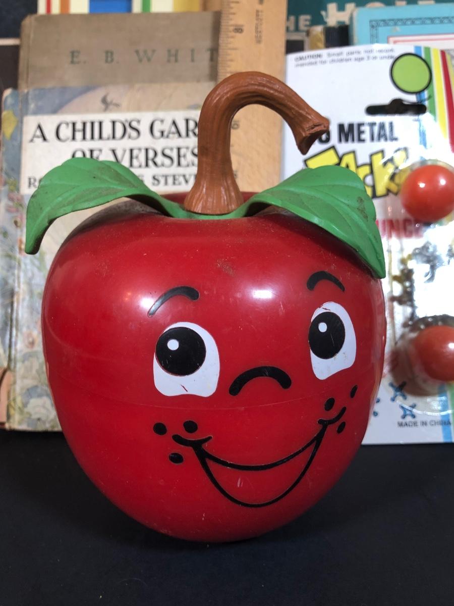 LOT 221D: Vintage Children's Books, Fisher Price Happy Apple Toy & Sears Winnie the Pooh Glass