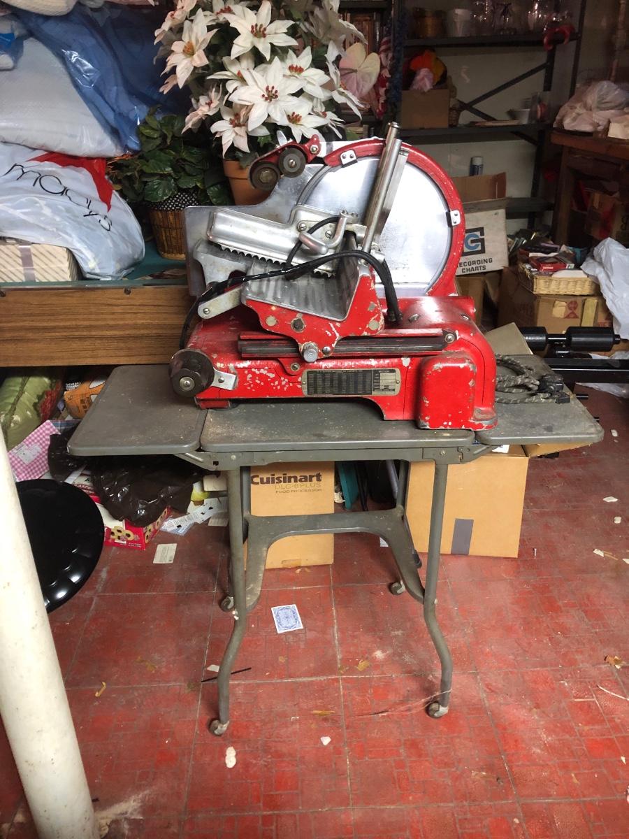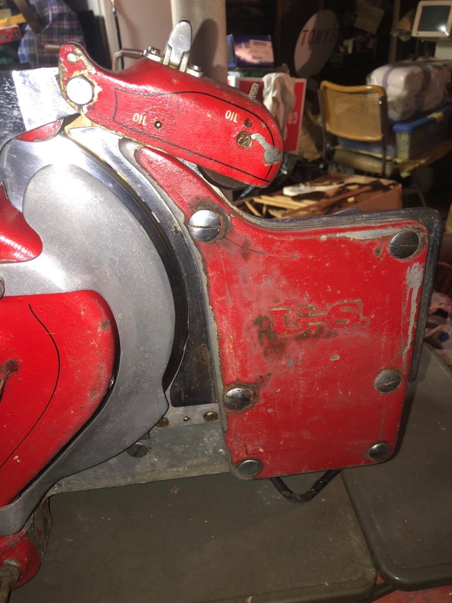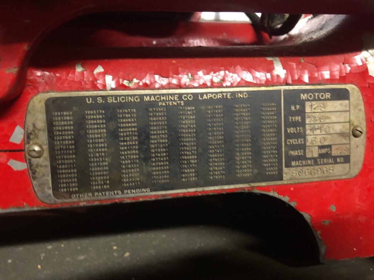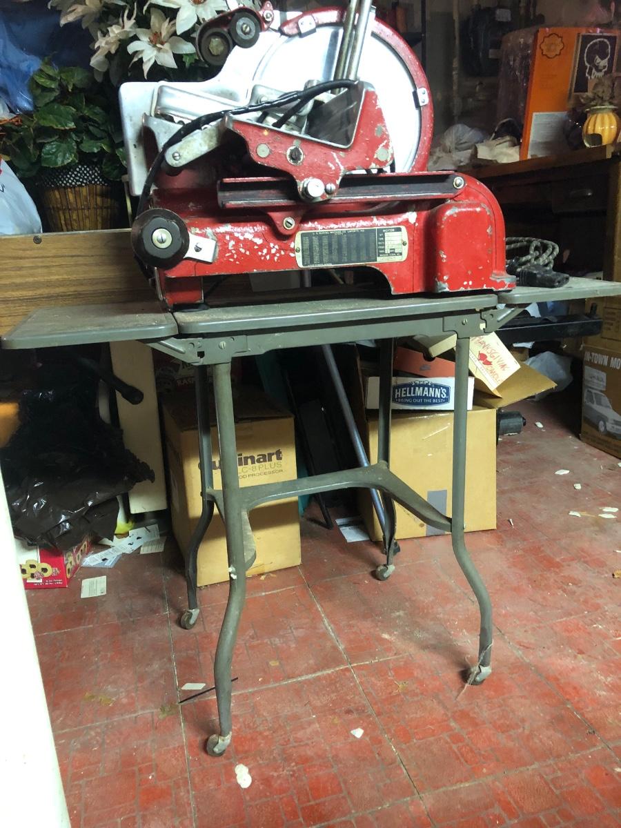 LOT 222B: Vintage US Slicing Machine Co. Meat Slicer Model G on Metal Cart