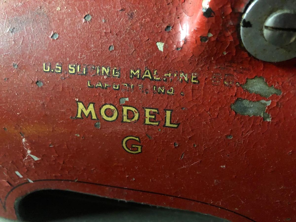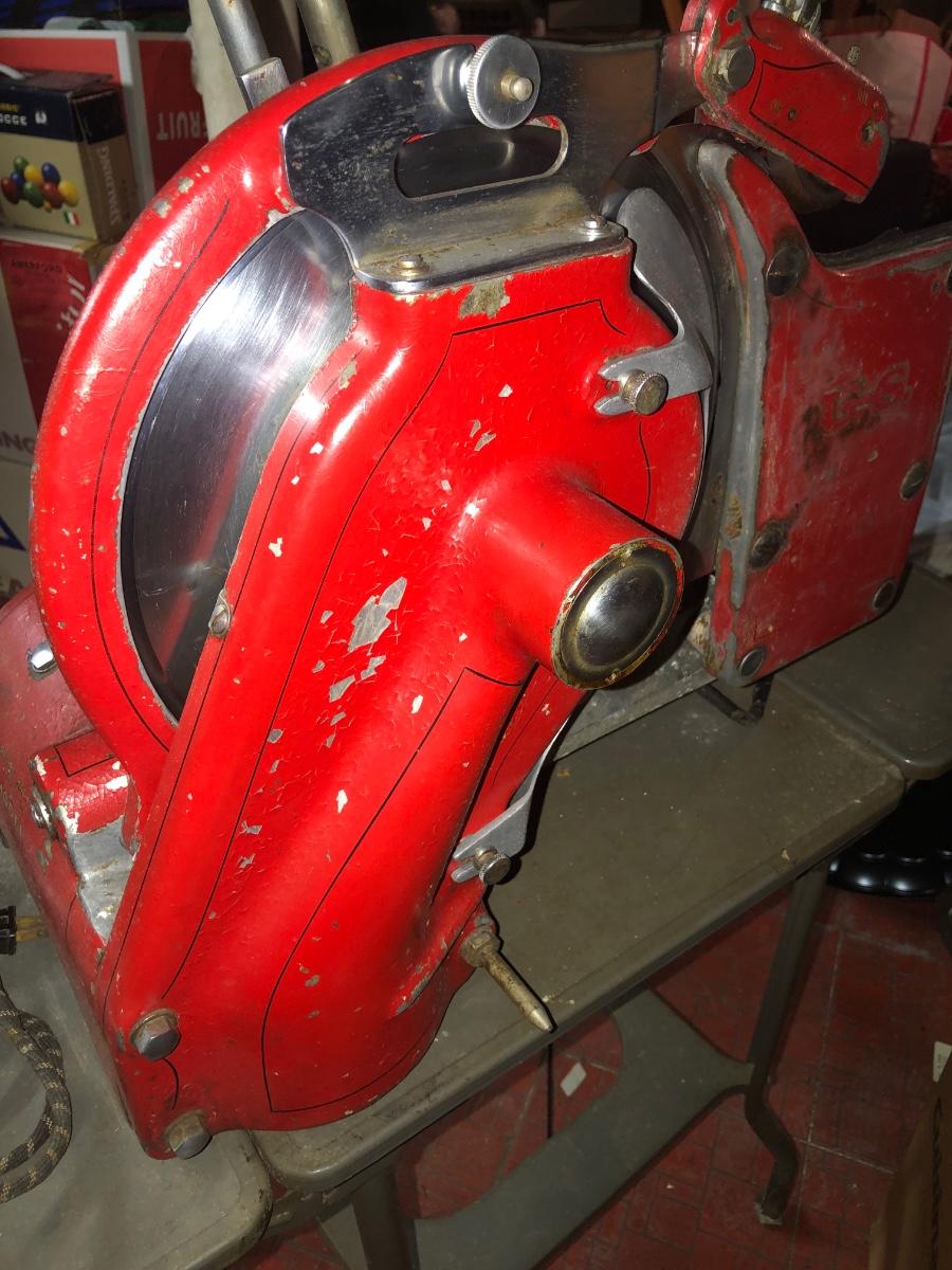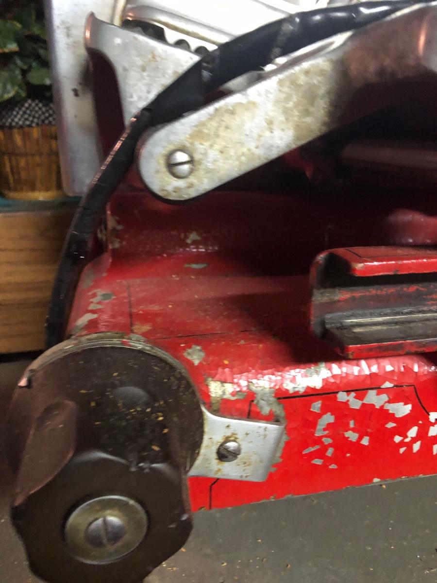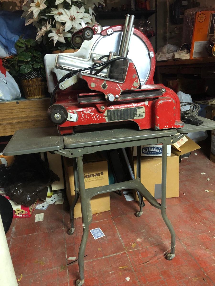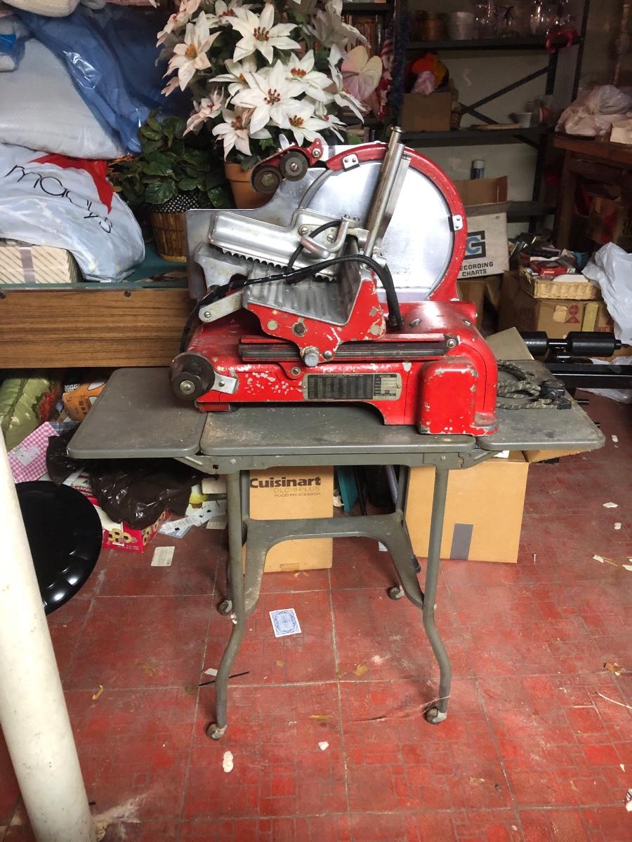 LOT 222B: Vintage US Slicing Machine Co. Meat Slicer Model G on Metal Cart