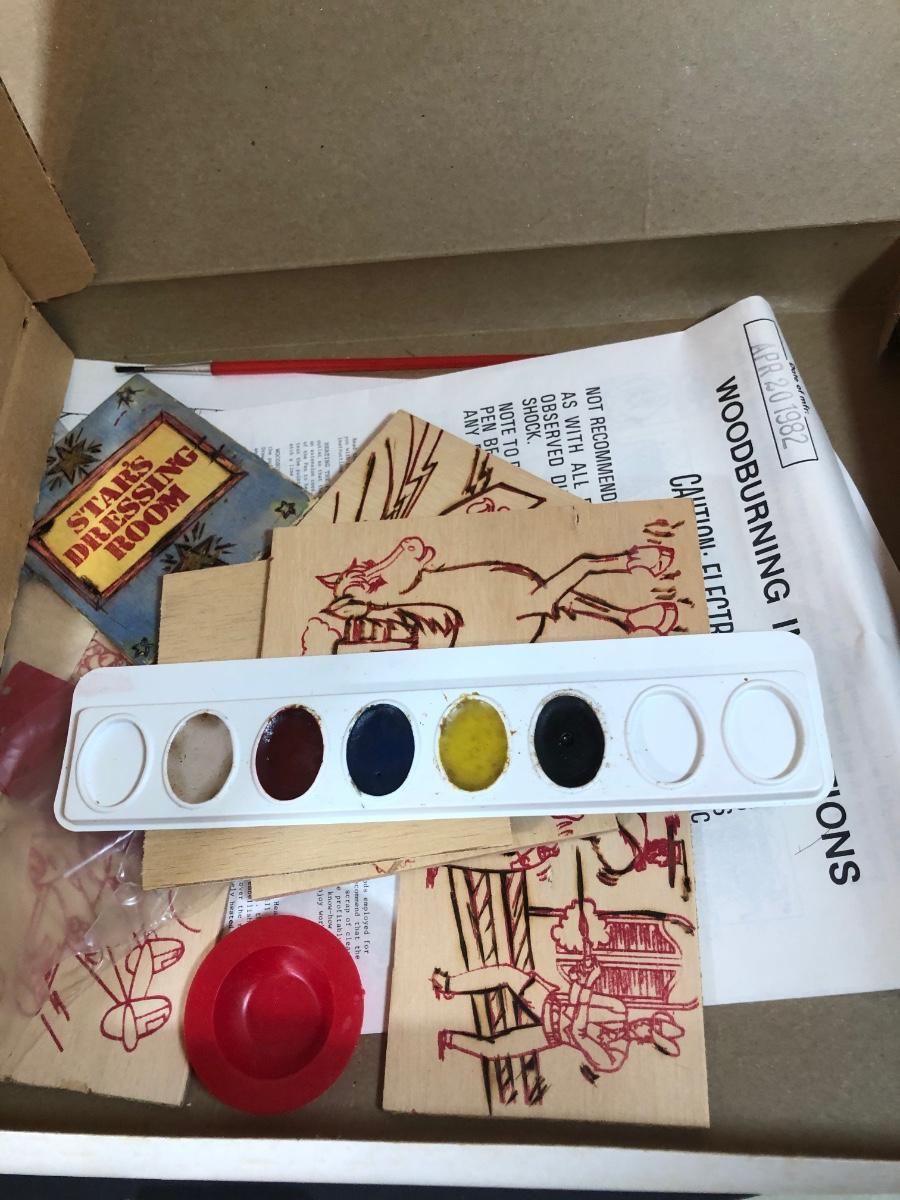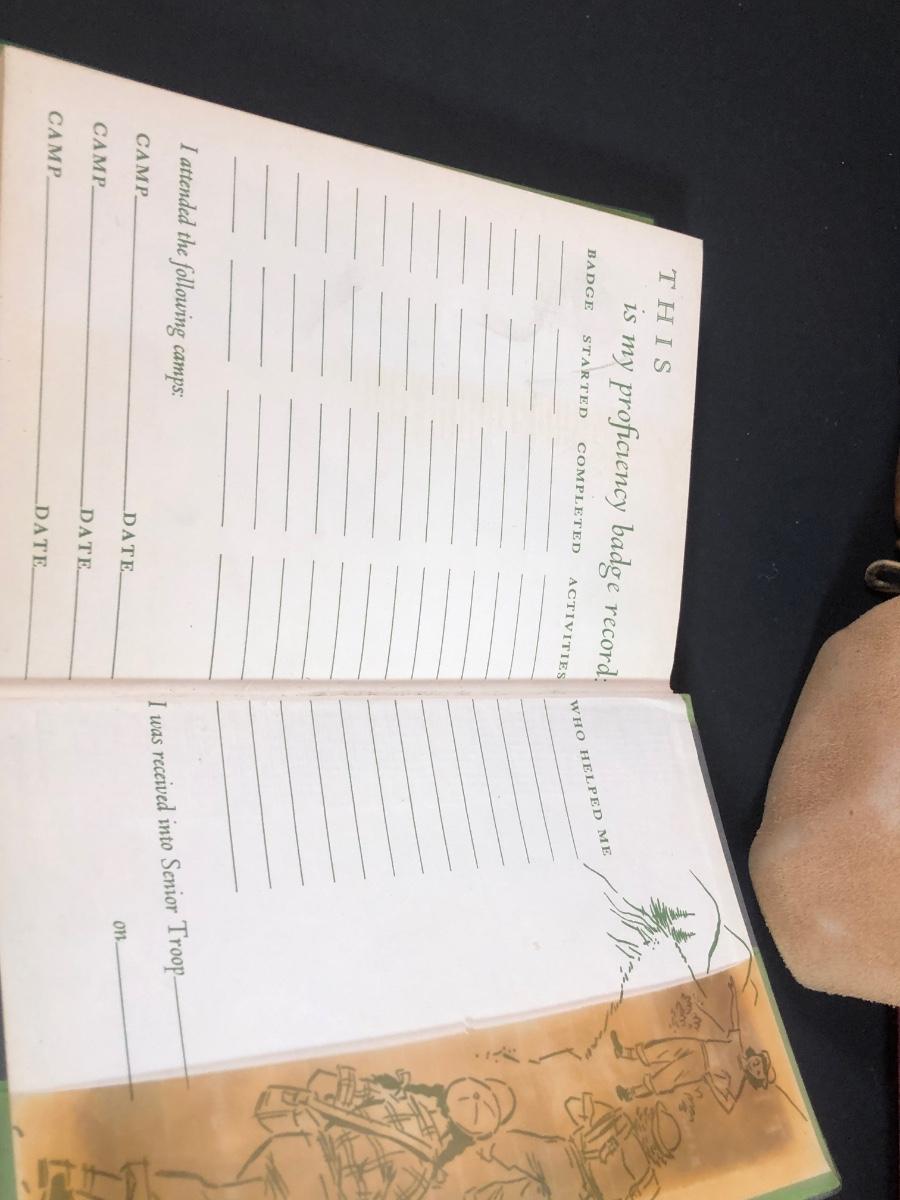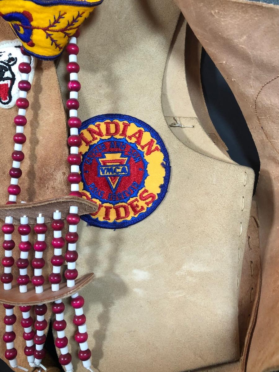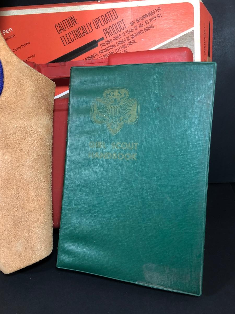 LOT 228K: YMCA "Indian Guides" Children's Vests, Woodburning Kits, Vintage Girl Scout Book & More