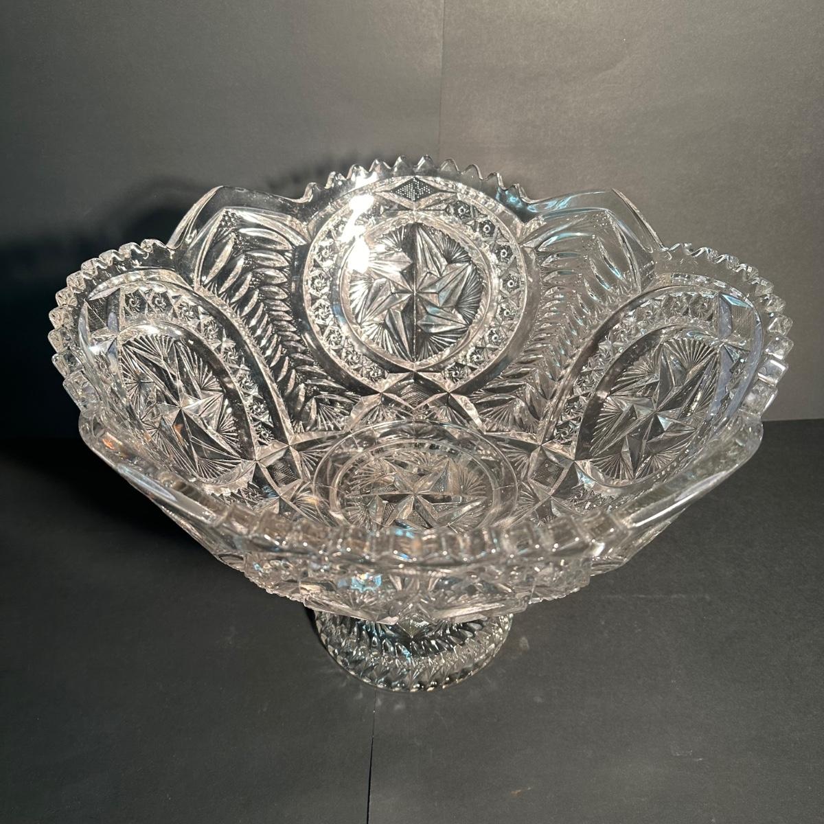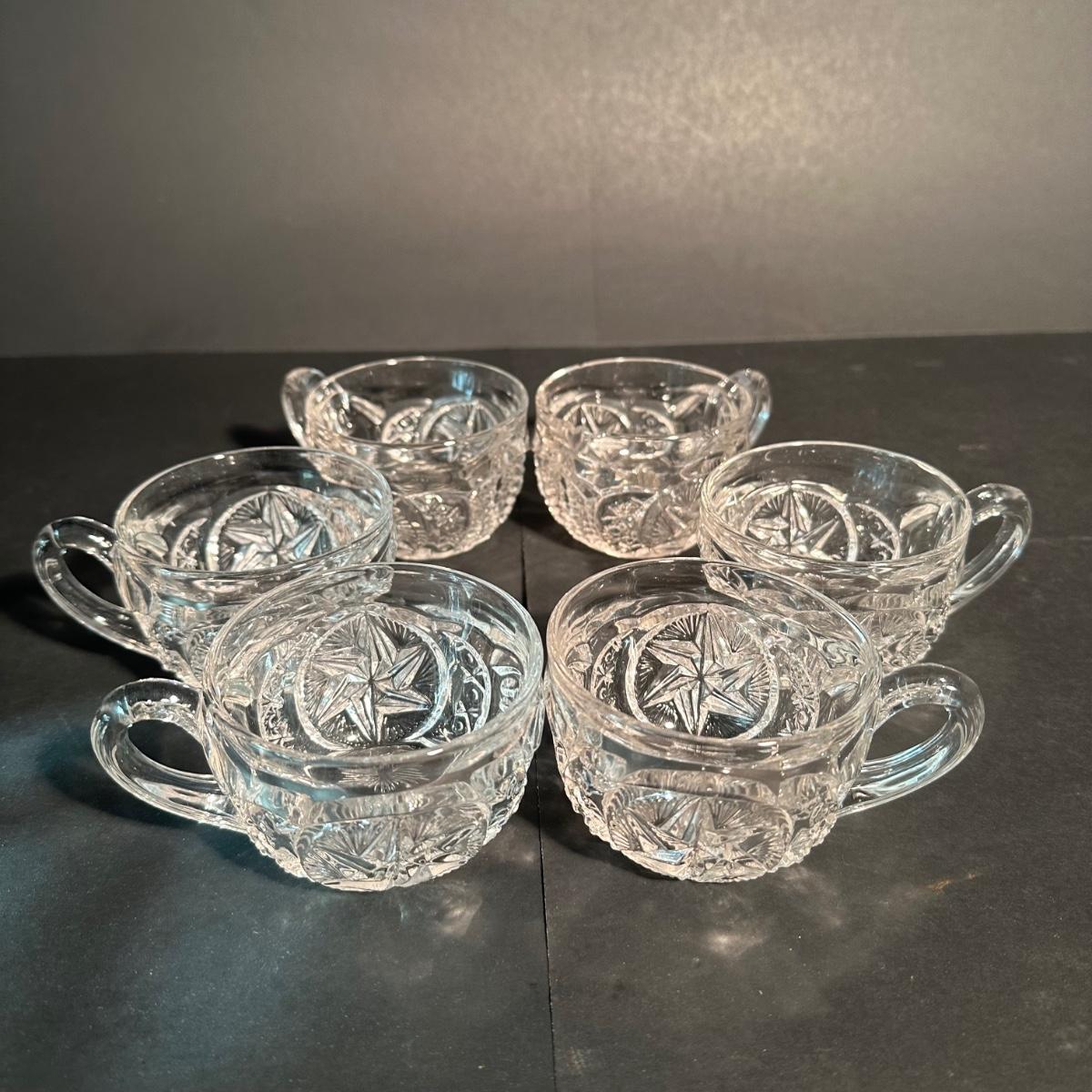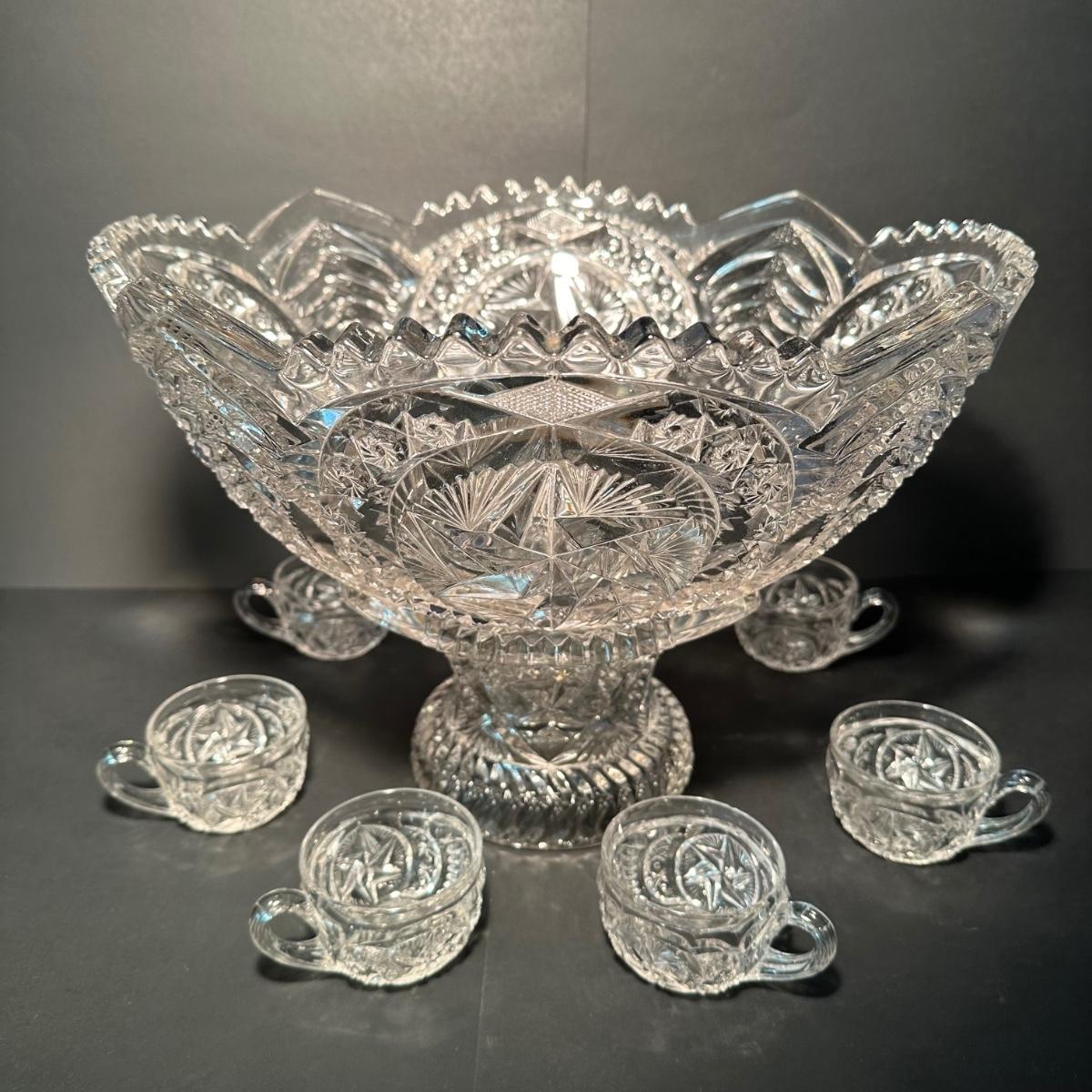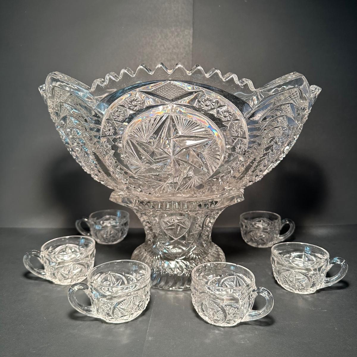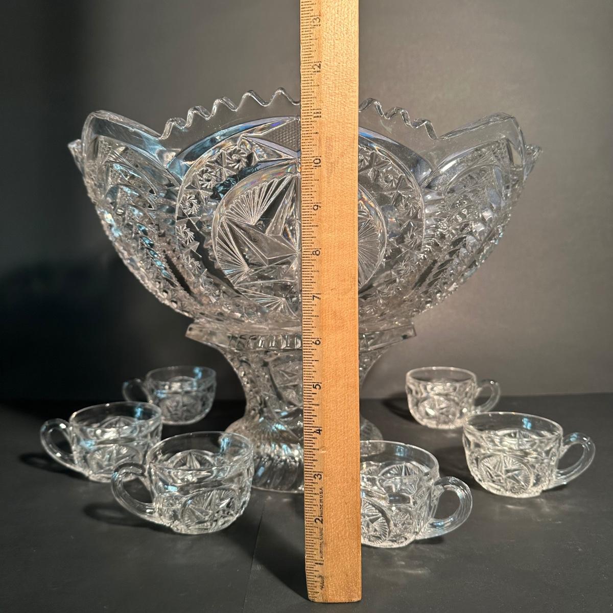 LOT 233F: Vintage EAPG US Glass Punch Bowl w/ Stand & 6 cups