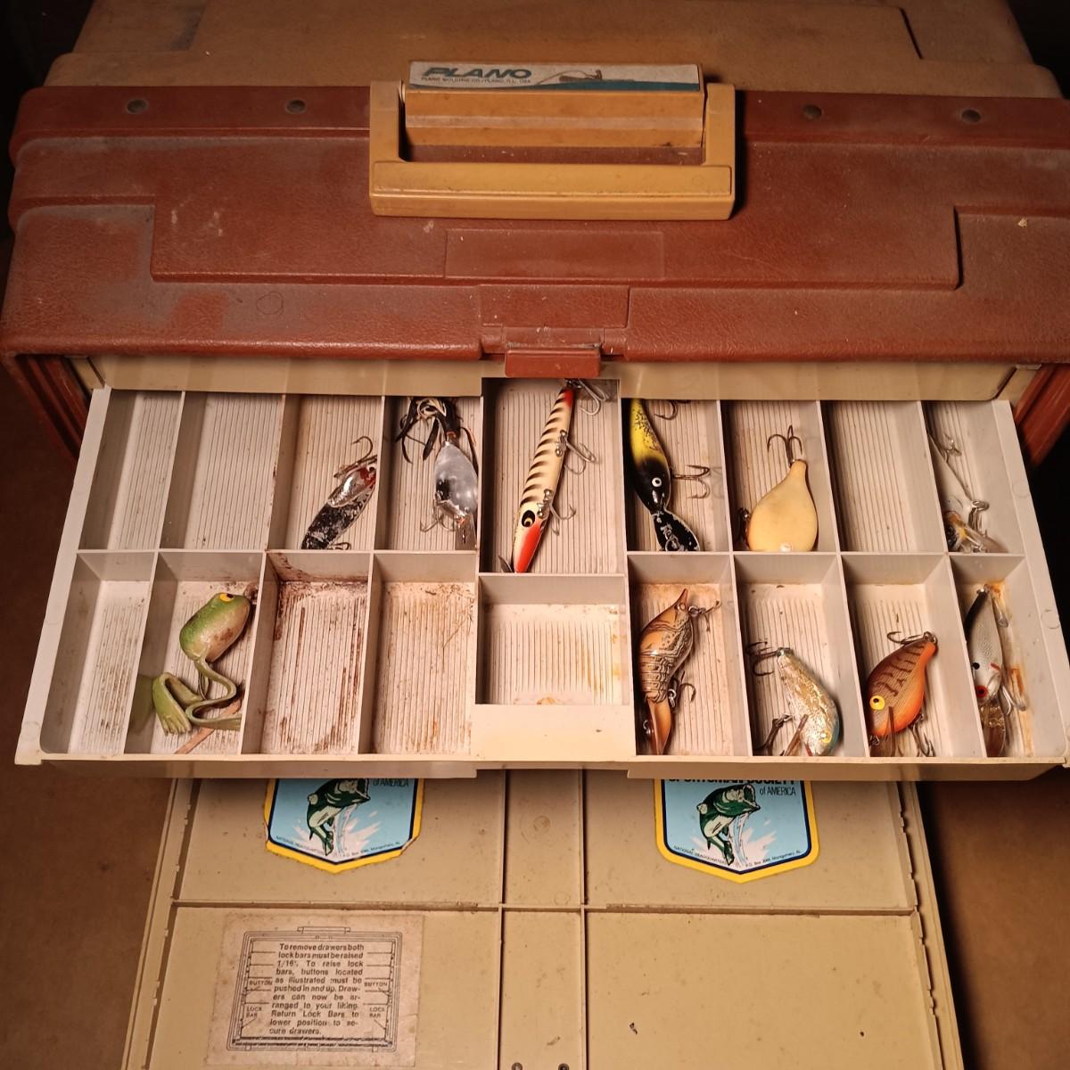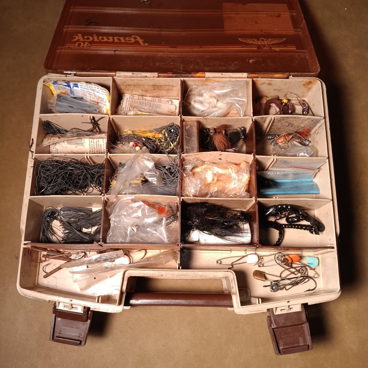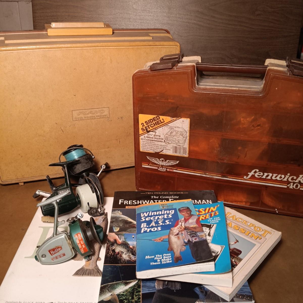 LOT 232K: Basement Finds- Vintage Fishing Reels, Lures, Tackle Boxes & Books