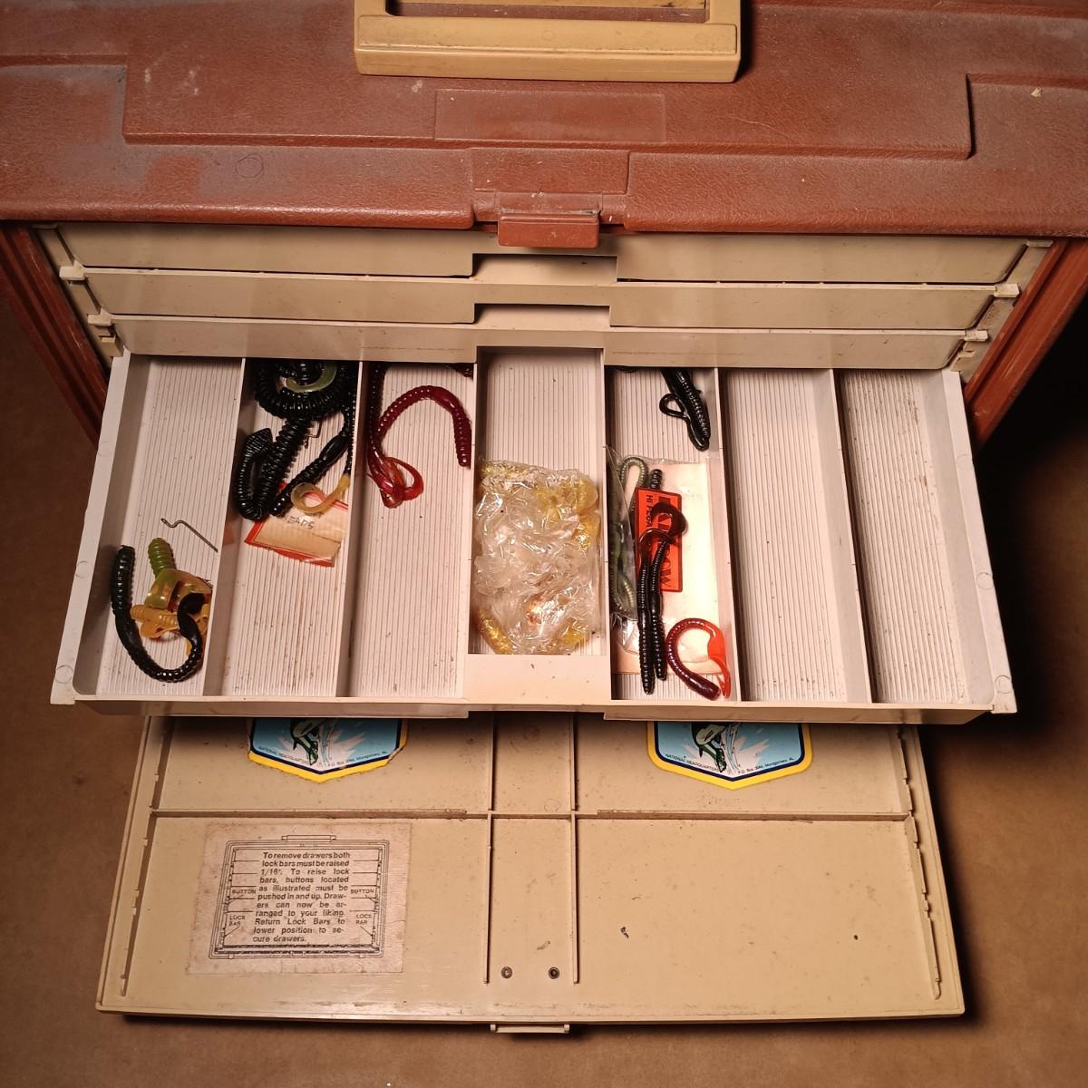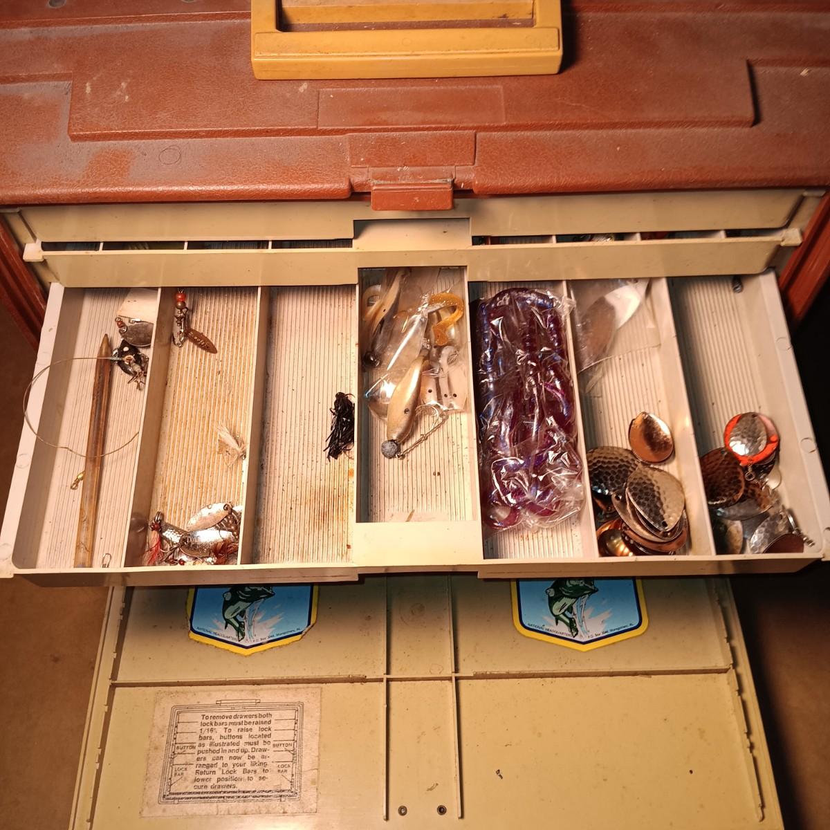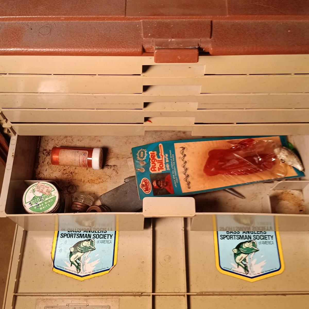 LOT 232K: Basement Finds- Vintage Fishing Reels, Lures, Tackle Boxes & Books