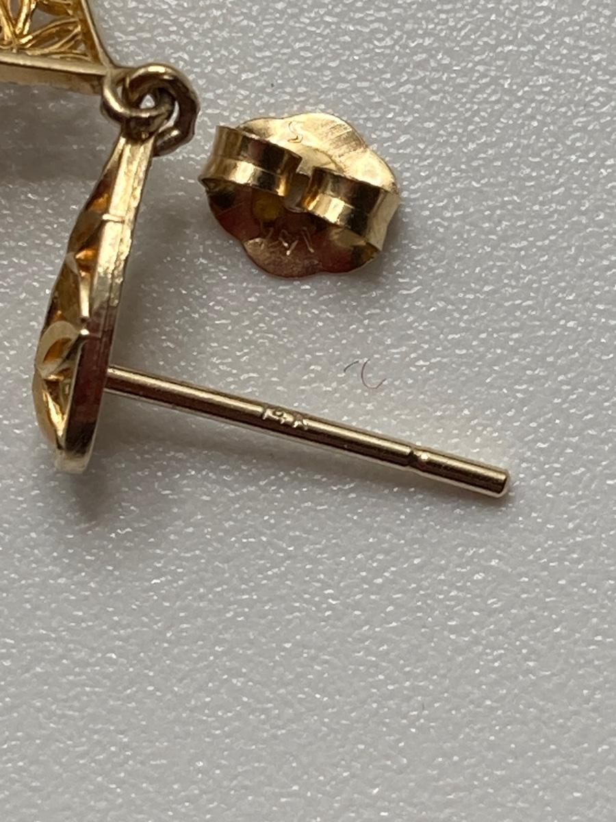 1.91g 14K (one missing butterfly back) - Please see all pictures as they are the best representation of the items. The pictures show condition, measurements if taken, and what is included in the lot. Due to the large amount that we photograph and the time frame, we are not always able to take measurements. All items unless noted, are pre-owned and have been used. If you purchased furniture, you must bring help. We do not allow one person to carry large furniture out on their own. Bring help, tools and a truck for the safety of our client’s homes, and your personal safety. Any damages that result to the property including walls, and floors due to moving of the furniture will be charged to the buyer. Company policy. Thank you.
