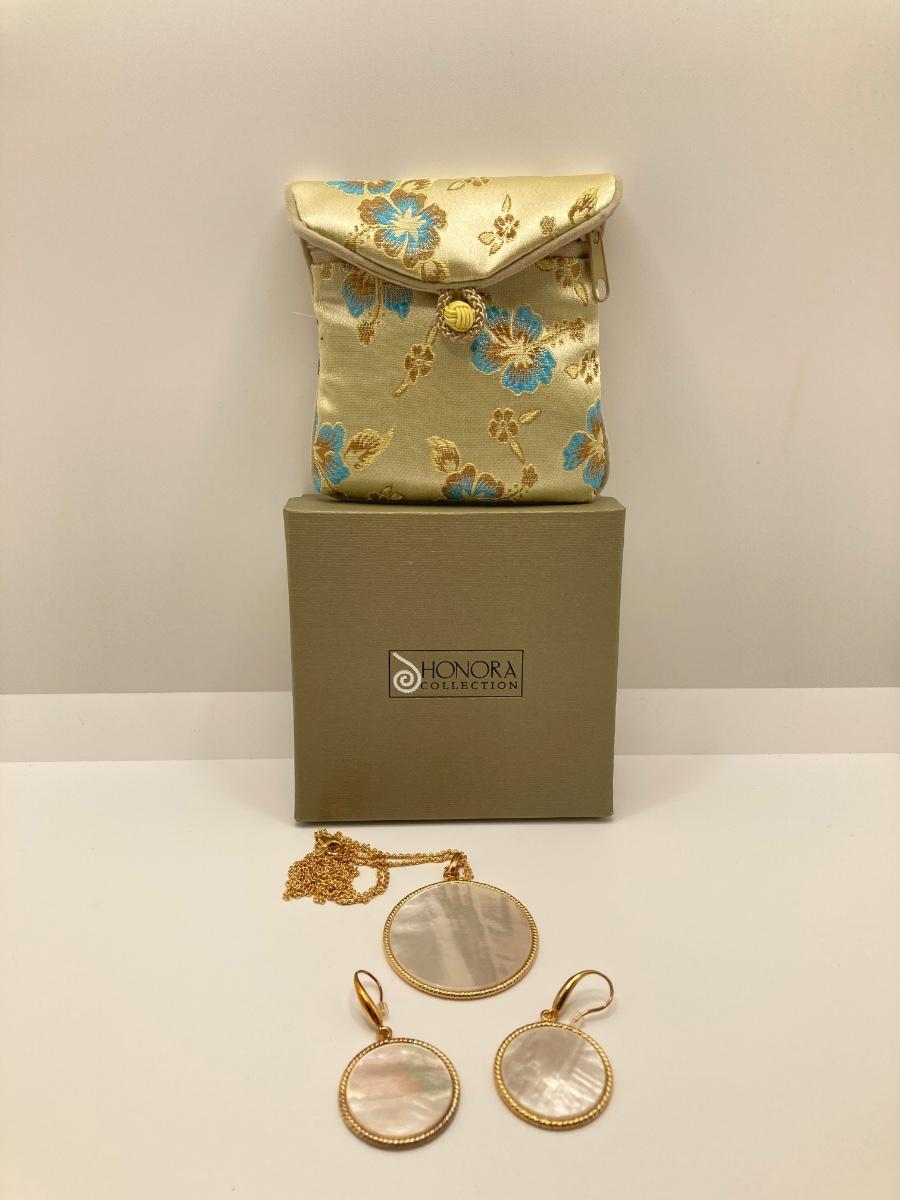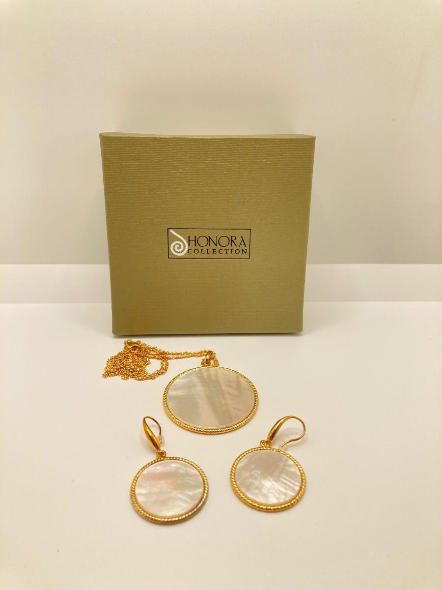 LOT 258J: Honora Collection Gold Vermeil over Sterling Mother of Pearl Necklace / Earrings
