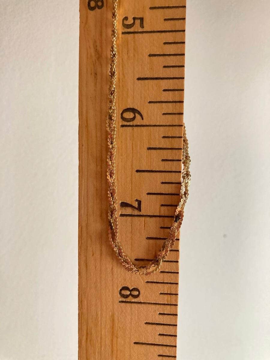 4.80g 14K Italy 15 inches - Please see all pictures as they are the best representation of the items. The pictures show condition, measurements if taken, and what is included in the lot. Due to the large amount that we photograph and the time frame, we are not always able to take measurements. All items unless noted, are pre-owned and have been used. If you purchased furniture, you must bring help. We do not allow one person to carry large furniture out on their own. Bring help, tools and a truck for the safety of our client’s homes, and your personal safety. Any damages that result to the property including walls, and floors due to moving of the furniture will be charged to the buyer. Company policy. Thank you.