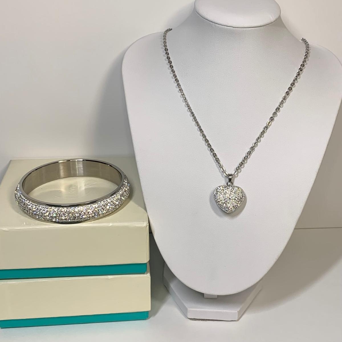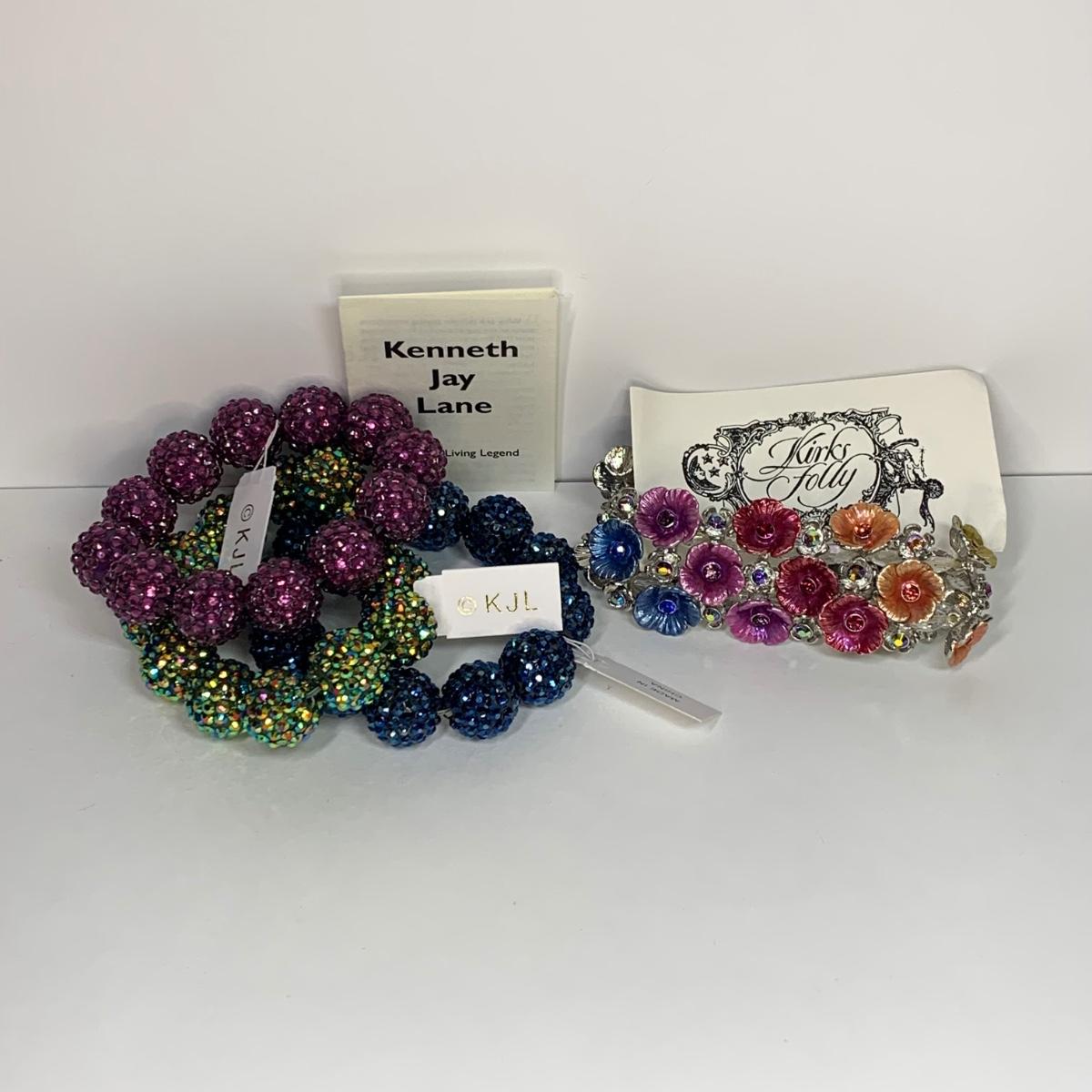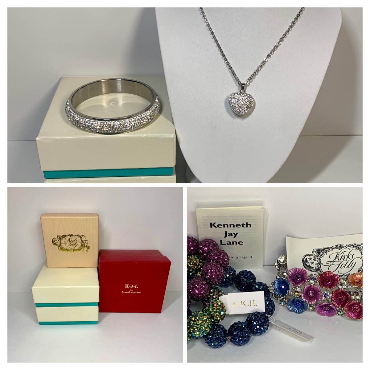 LOT 271R: QVC Heart Necklace & Bangle, KJL Stretch Bracelets & Kirks Folly Floral Stretch Bracelet