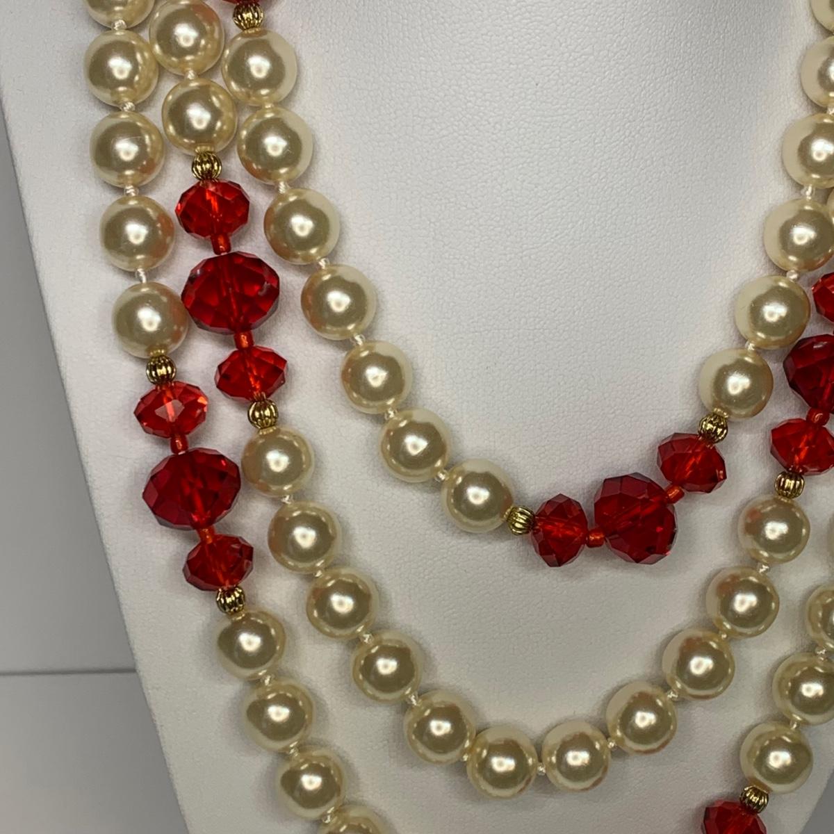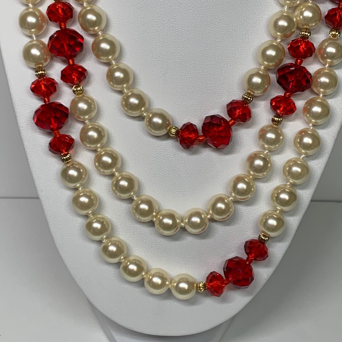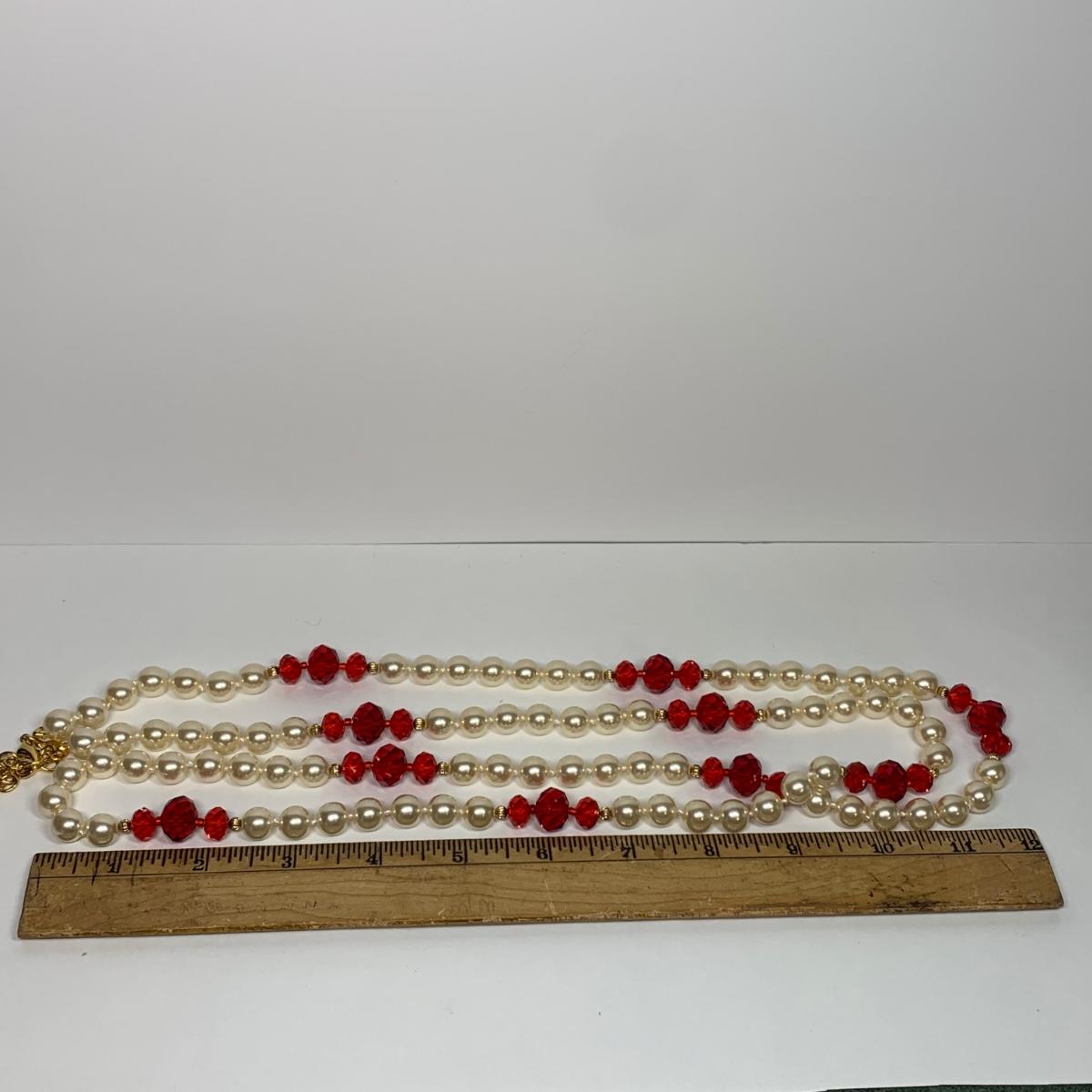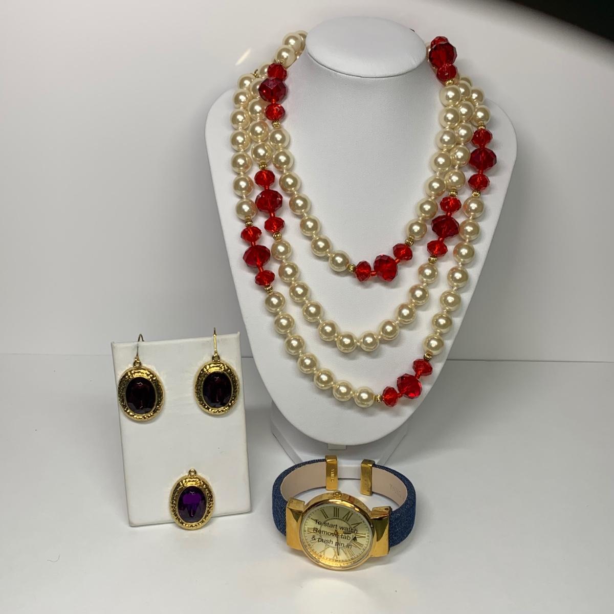 LOT 275R: Joan Rivers Collection: Earrings, Pendant, Watch & Faux Pearl & Red Faceted Bead Necklace