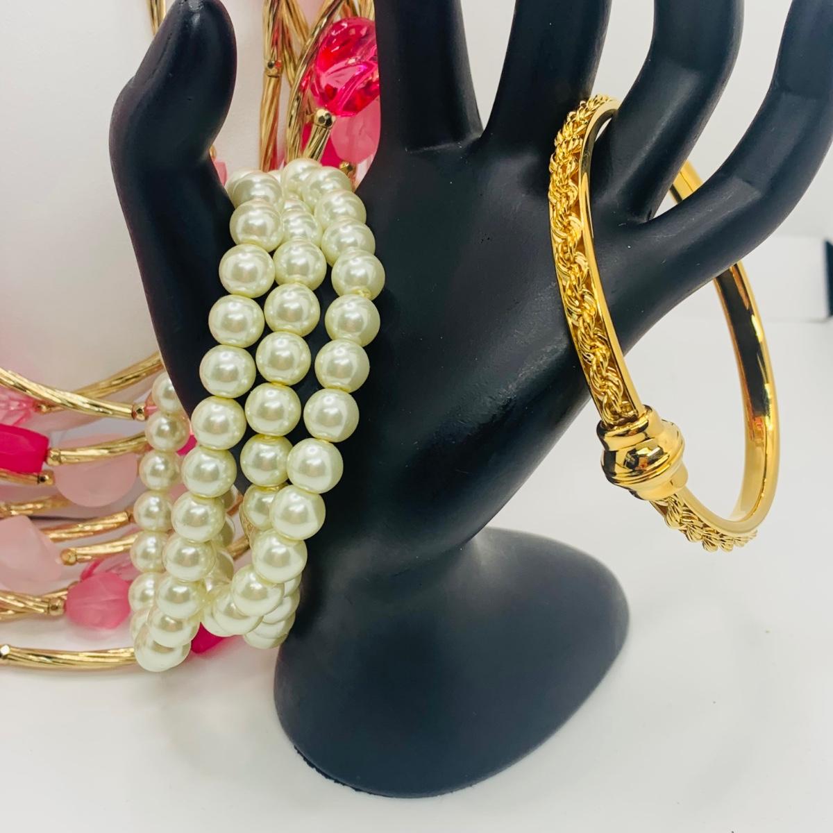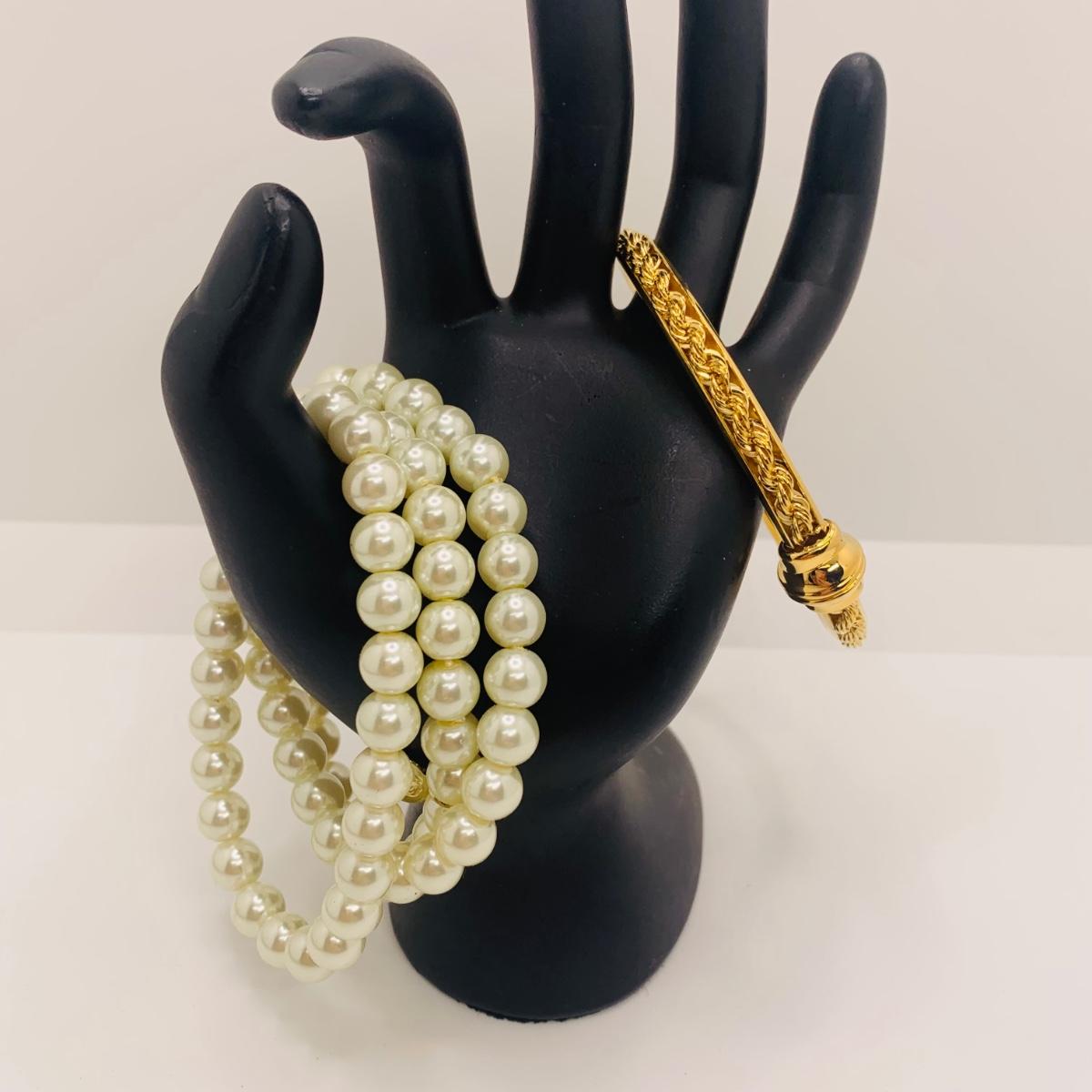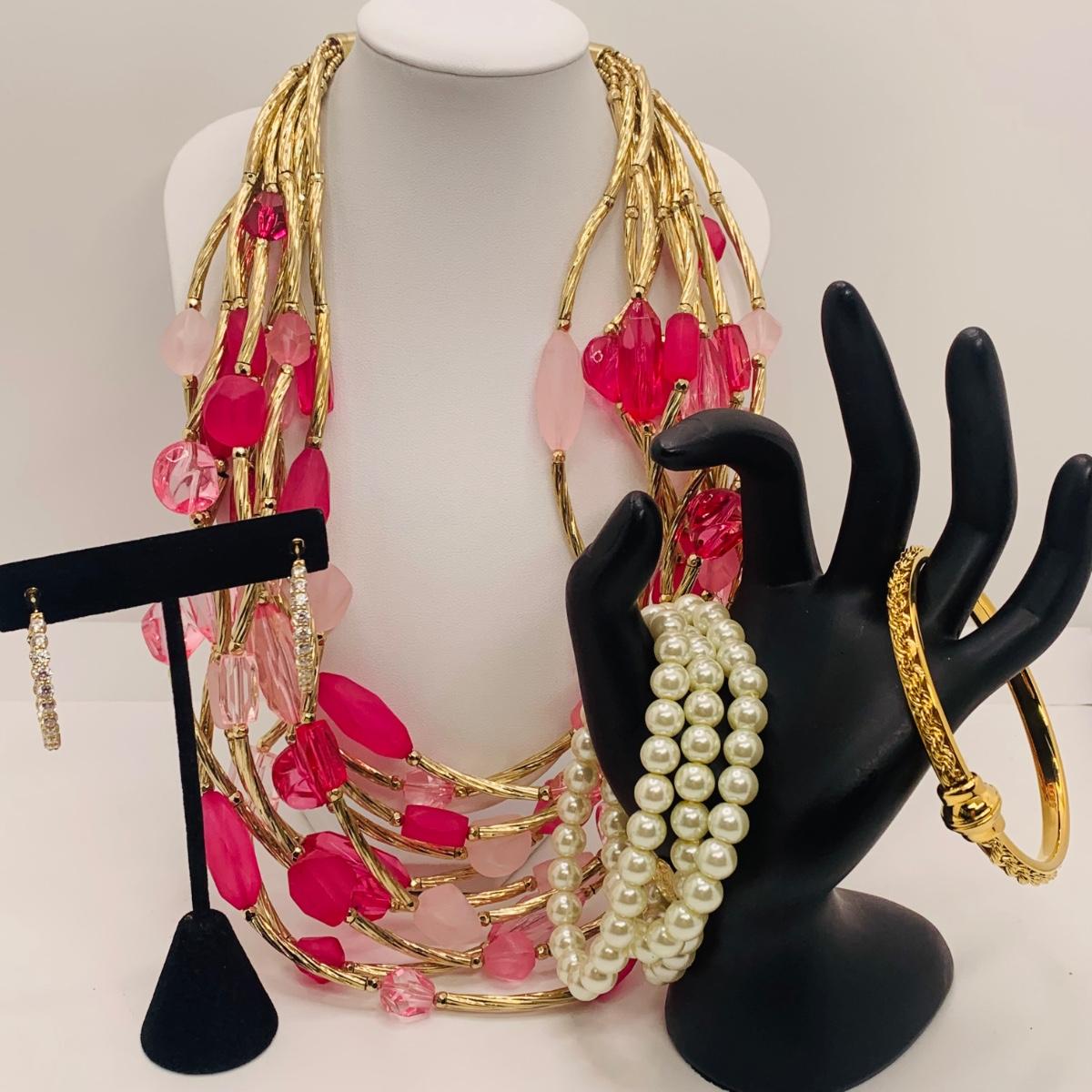 LOT 285R: Bronzo Italia Magnetic Bangle Bracelet, Gold Vermeil/925 Sterling & CZ Hoop Earrings, Susan Graver Fauz Pearl Stretch Bracelet, Louis Dell' Olio Multi Strand Beaded Necklace