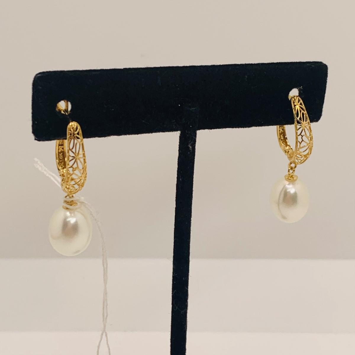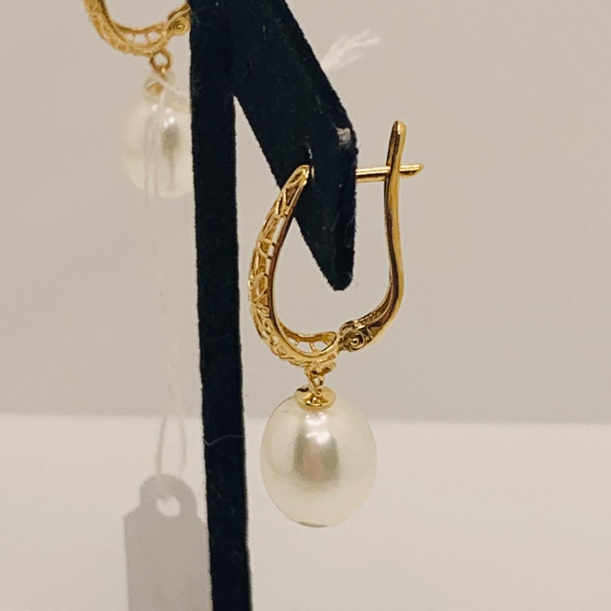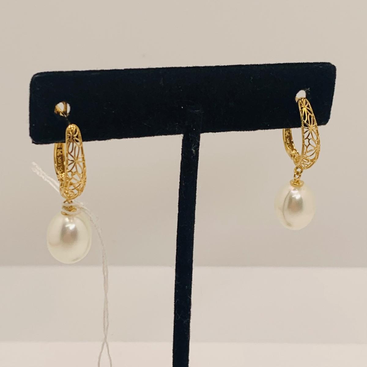 LOT 286R: 14K Gold & Pearl Lever Back Earrings 4.04g. Tw