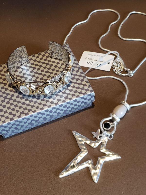 Lot 978: NEW Long Necklace with a Star Pendant & a Cuff Bracelet