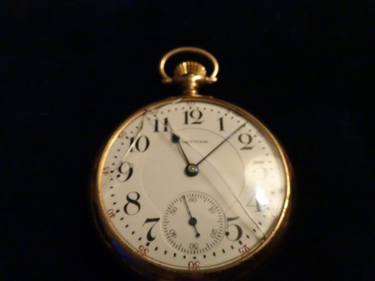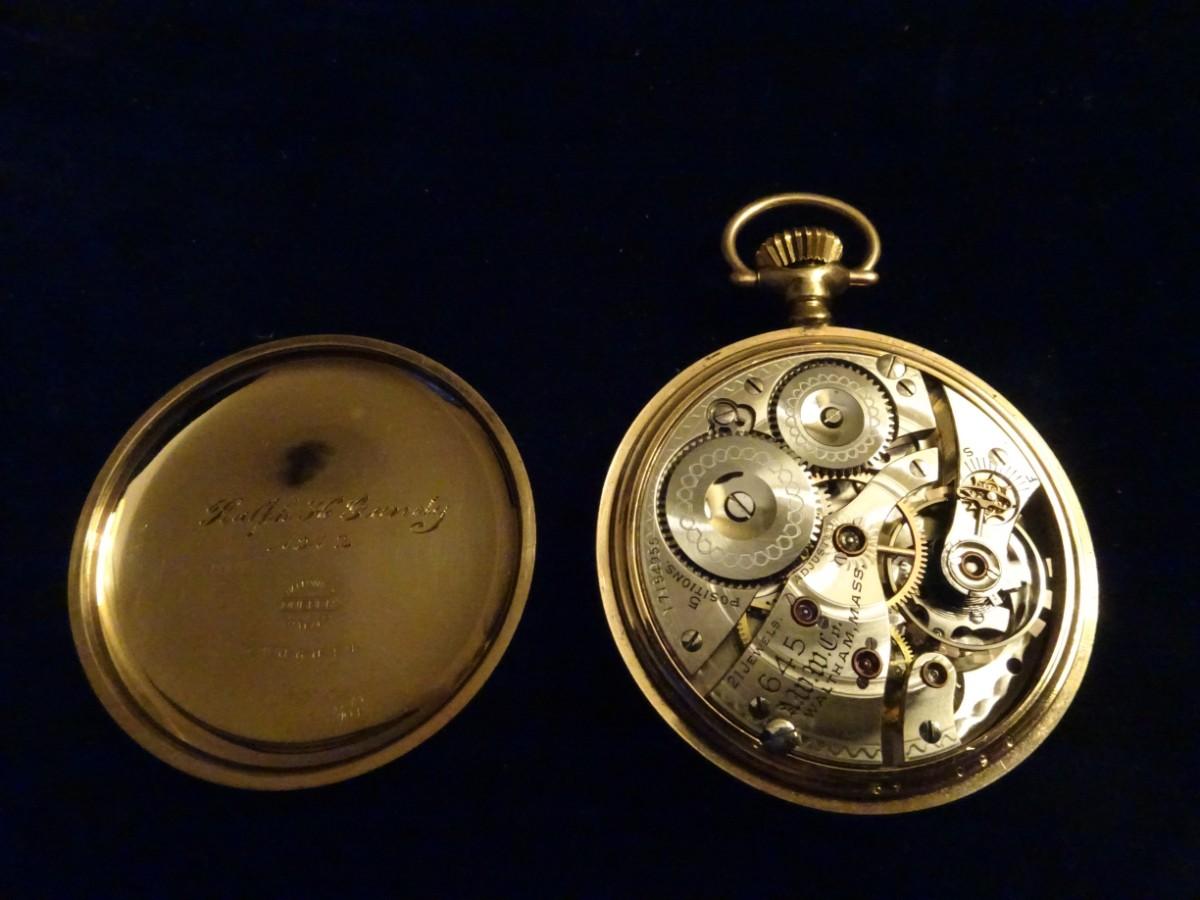 SERIAL NUMBER 17154955, 21 JEWEL RUBY, MADE IN 1908, GRADE 645, LEVER SET, CRACKED CRYSTAL