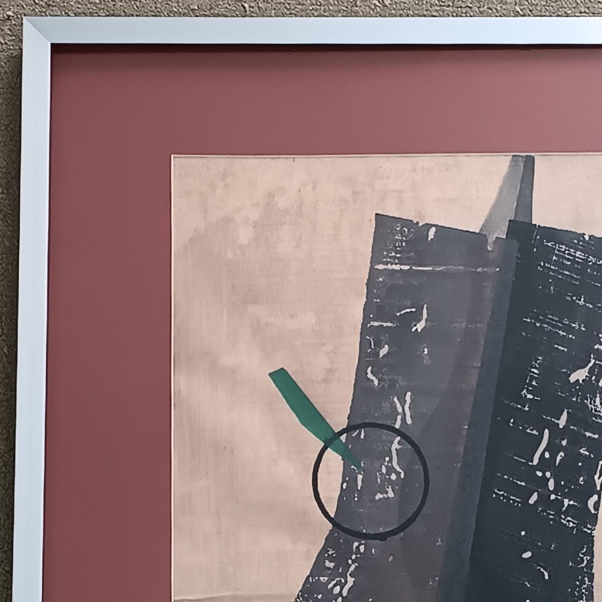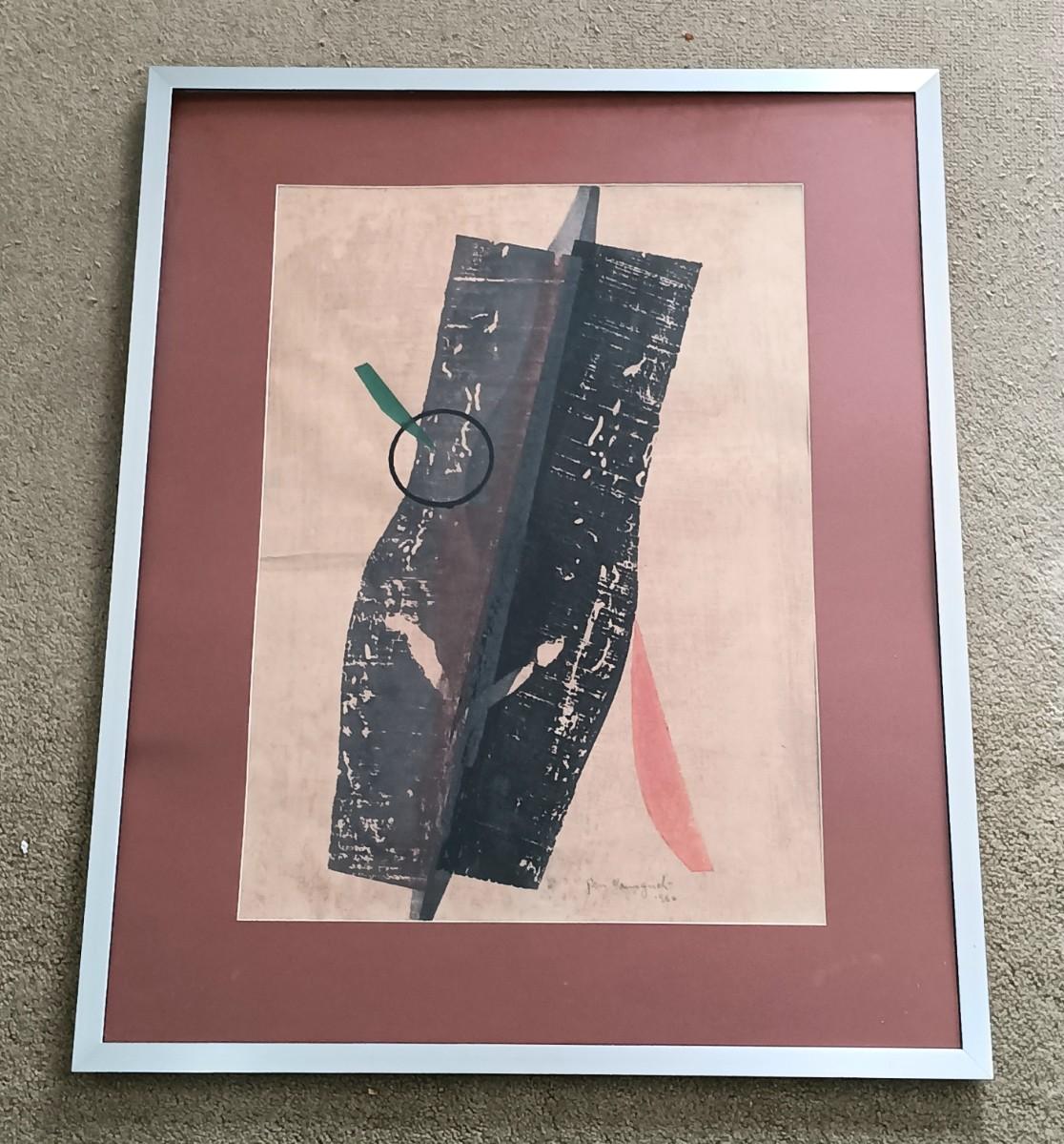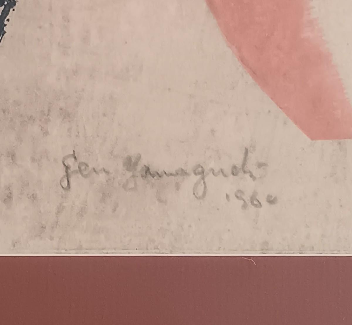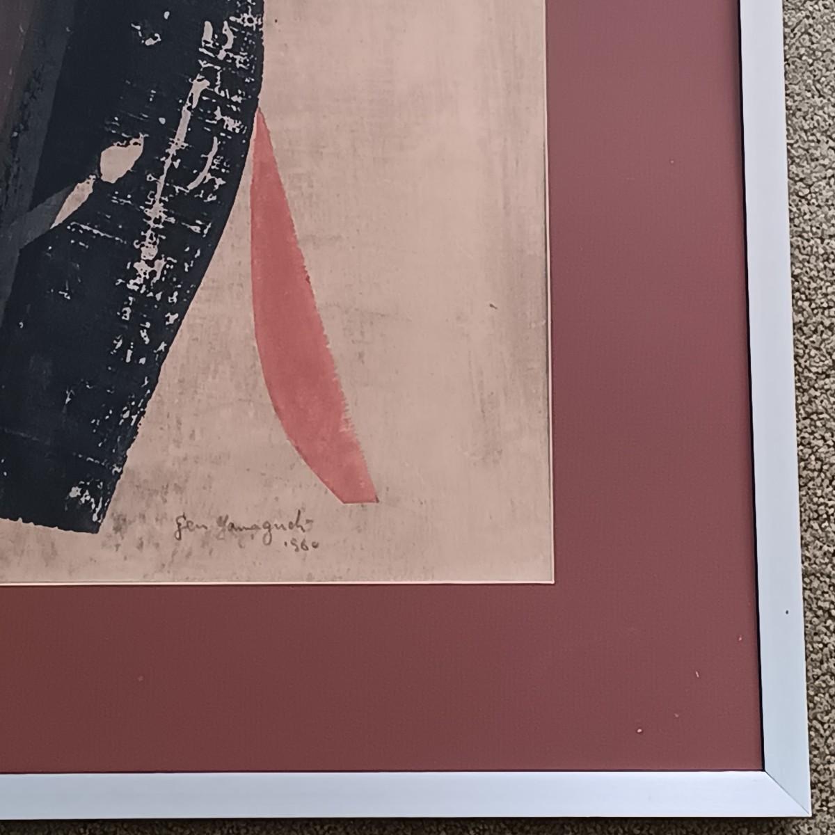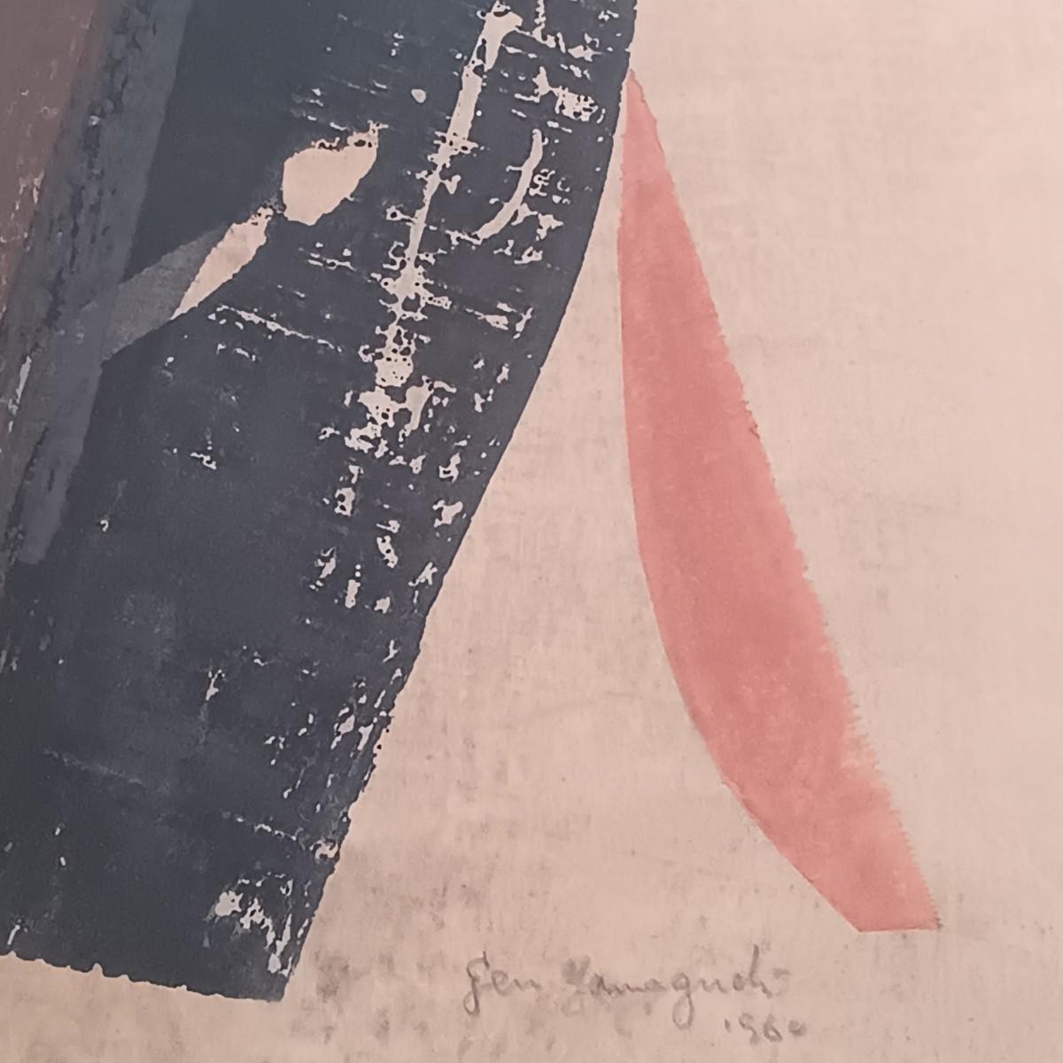 LOT 2MB: Gen Yamaguchi (1903-76) Japanese Abstract Block Print Pencil Signed, Dated 1960