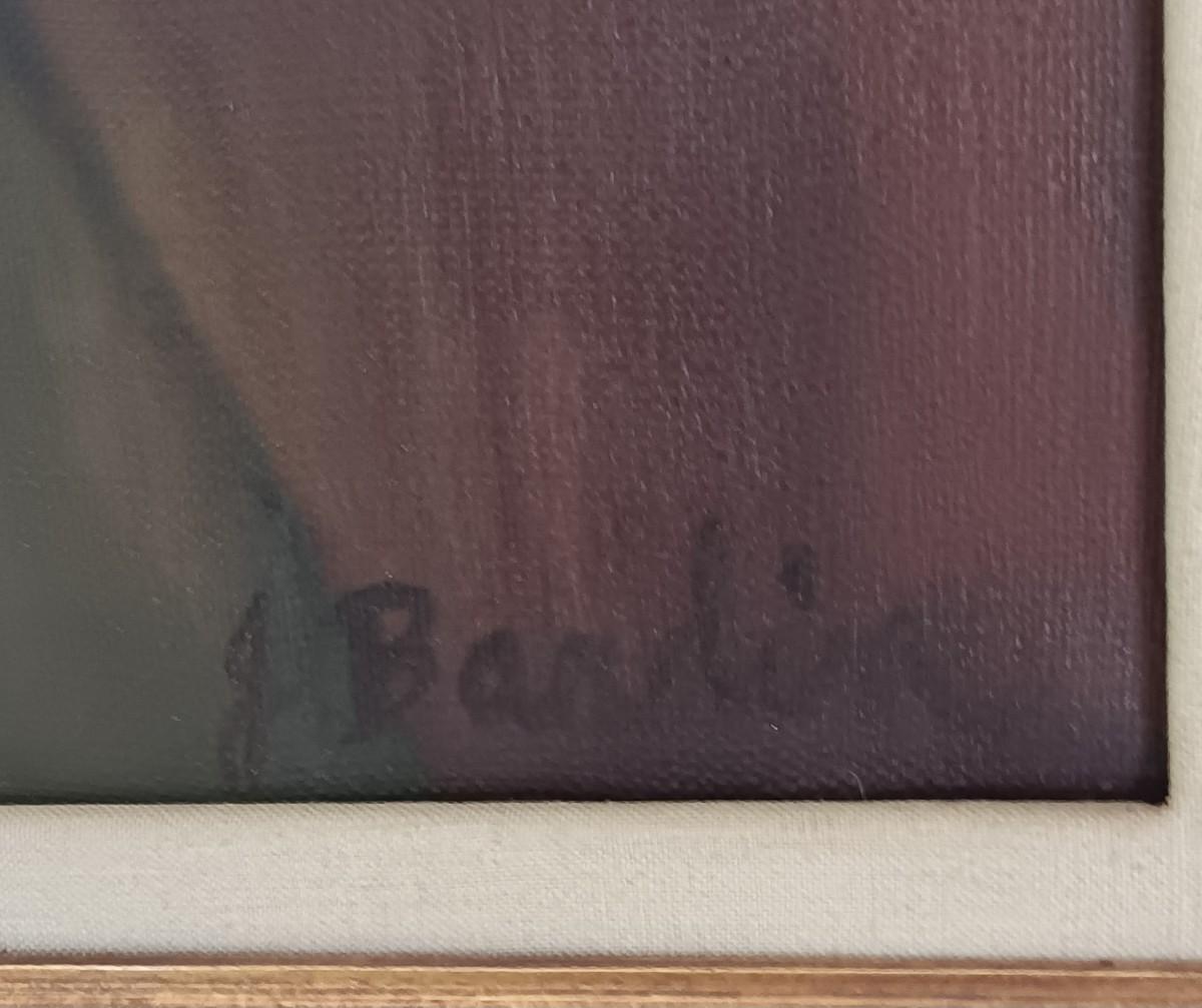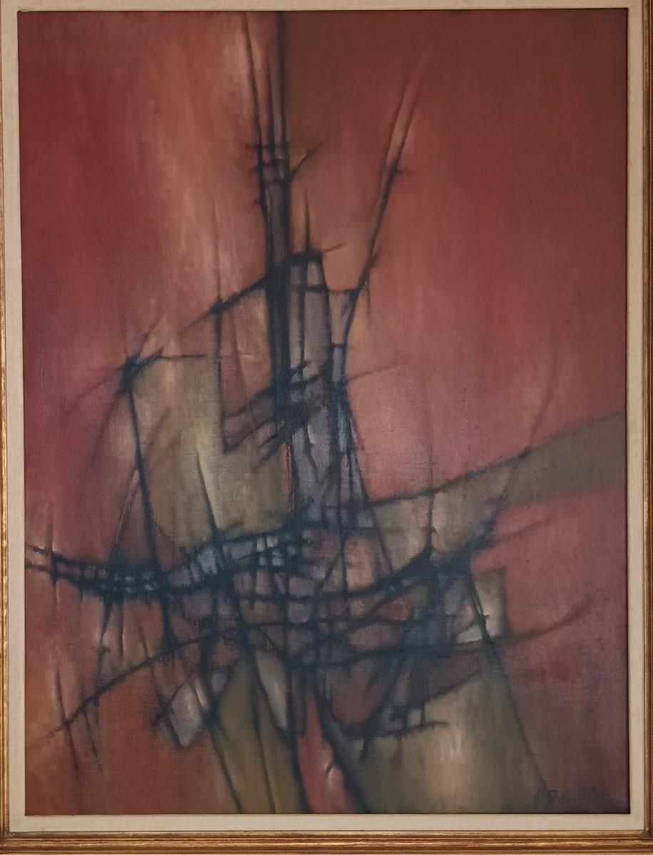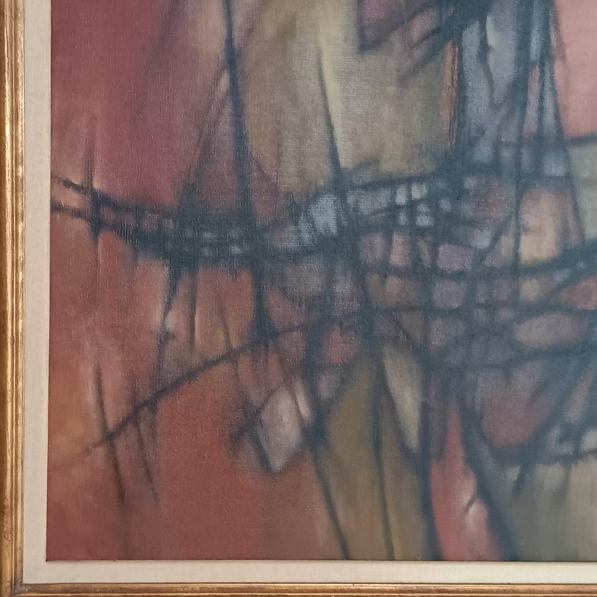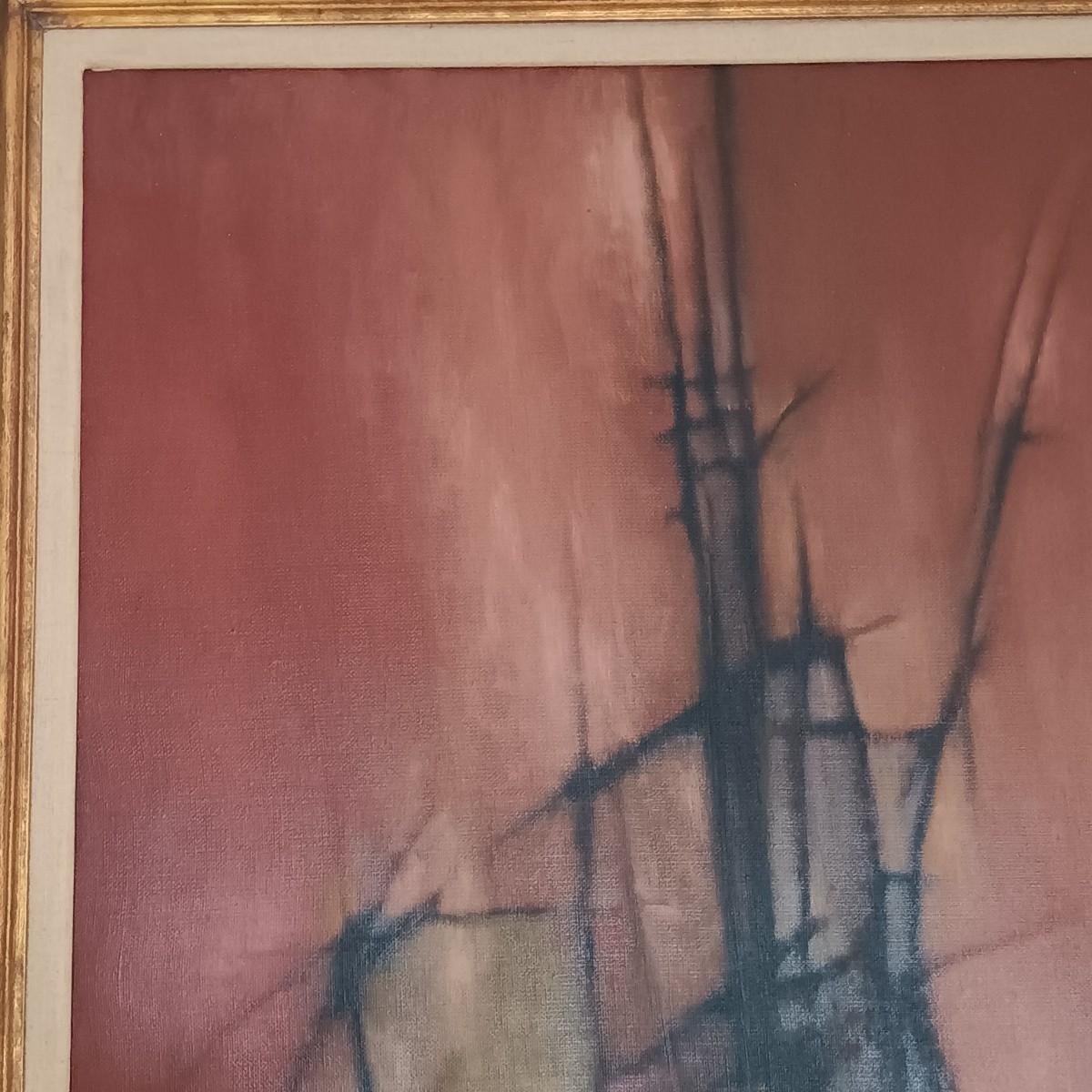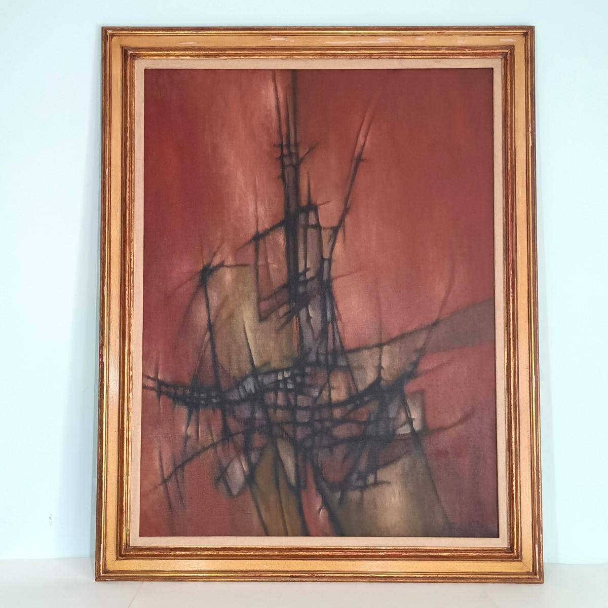 LOT 37MB: MCM Abstract Oil Painting, "Brick Red w/Black Structure" Signed Jesse Redwin Bardin (1923-1987)