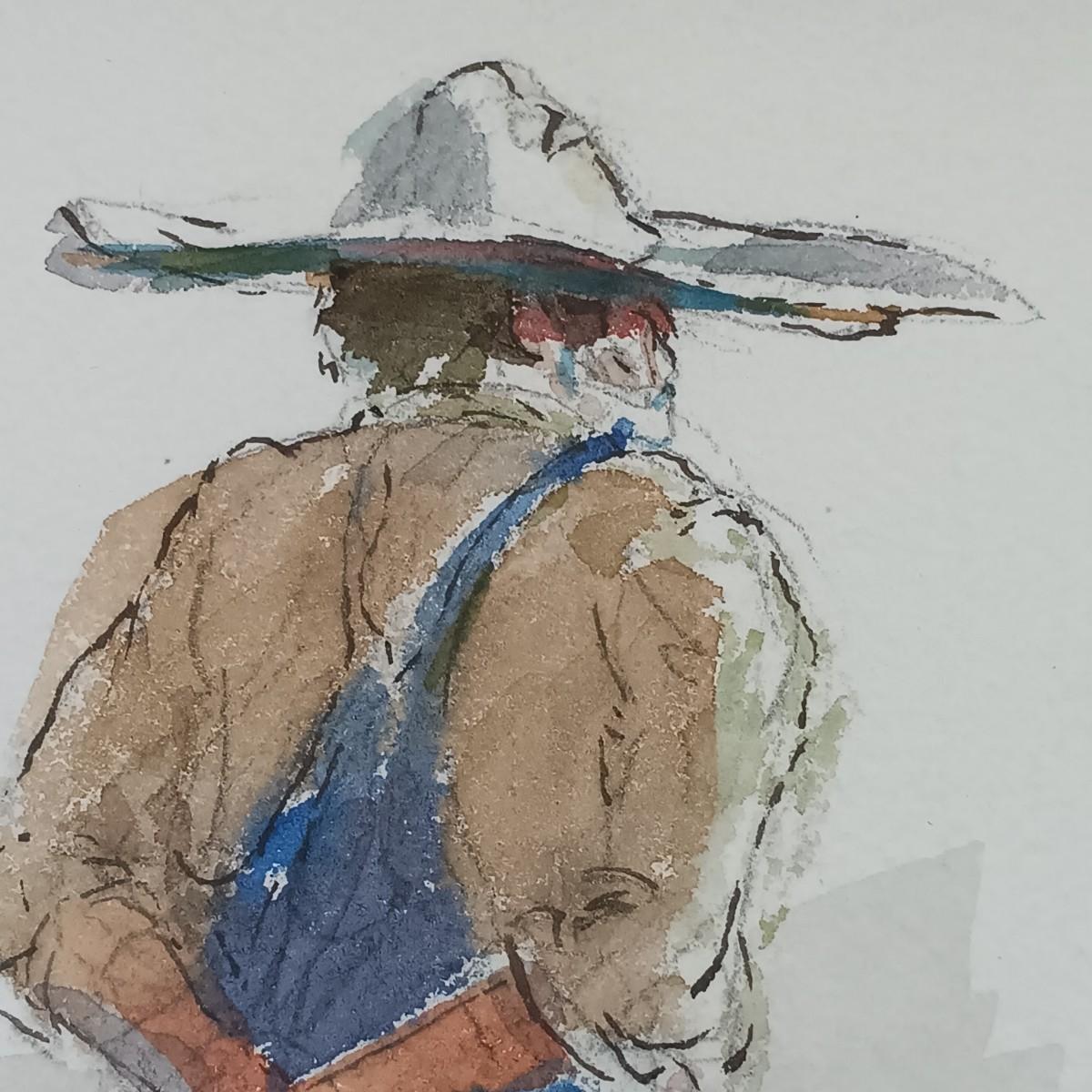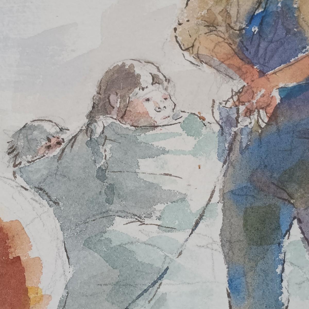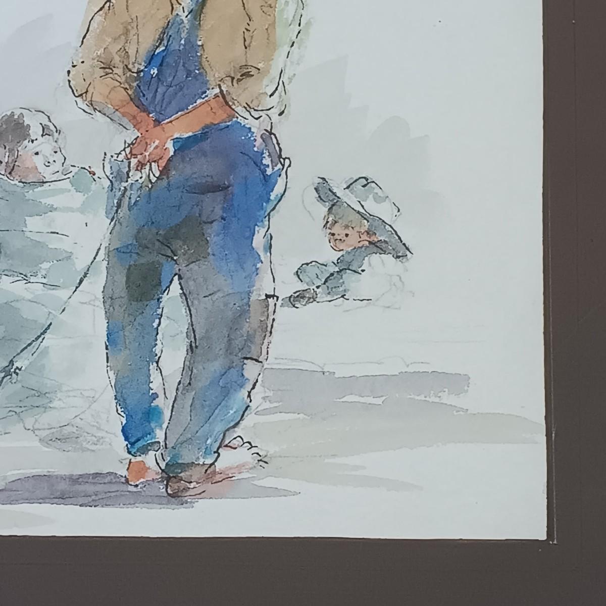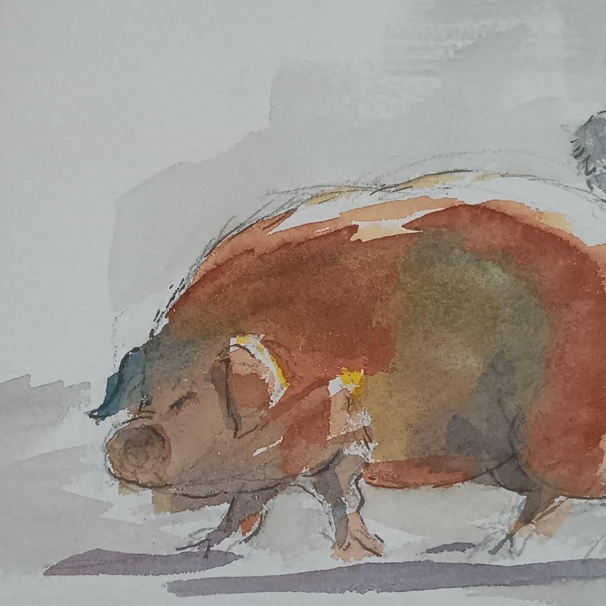 LOT 50MB: Framed Watercolor, Farmhouse Design, Pig and People Subject Matter