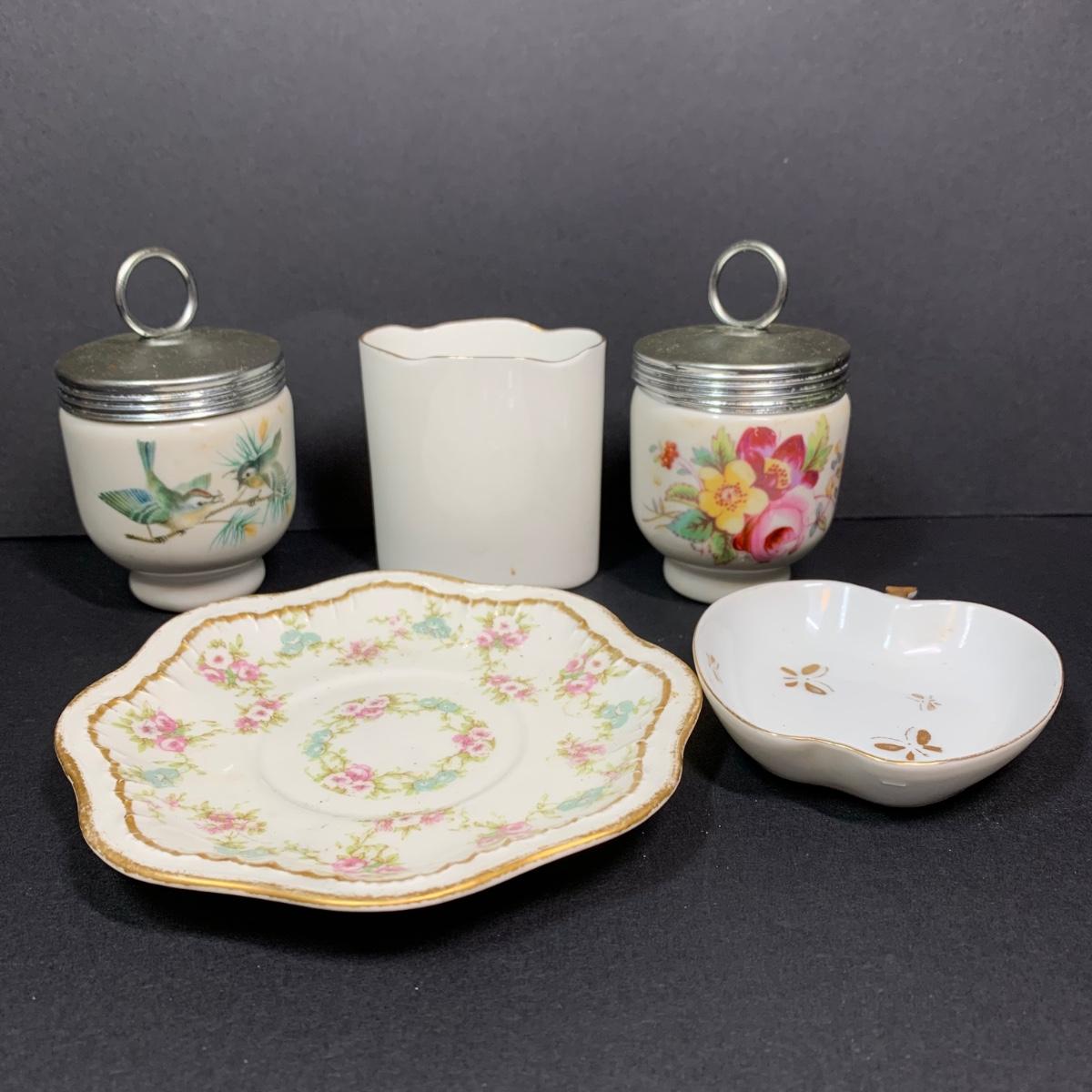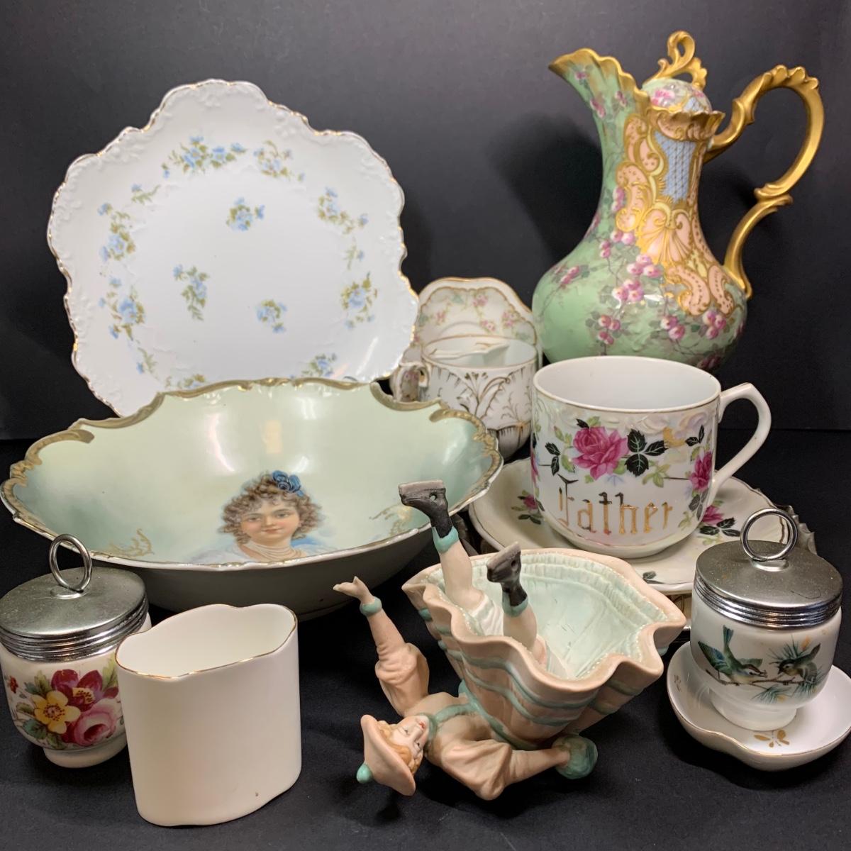 LOT 59K: Limoges Hot Chocolate Pot, Ardalt Occupied Japan Fallen Skater, Royal Worcester Porcelain Egg Coddlers & More