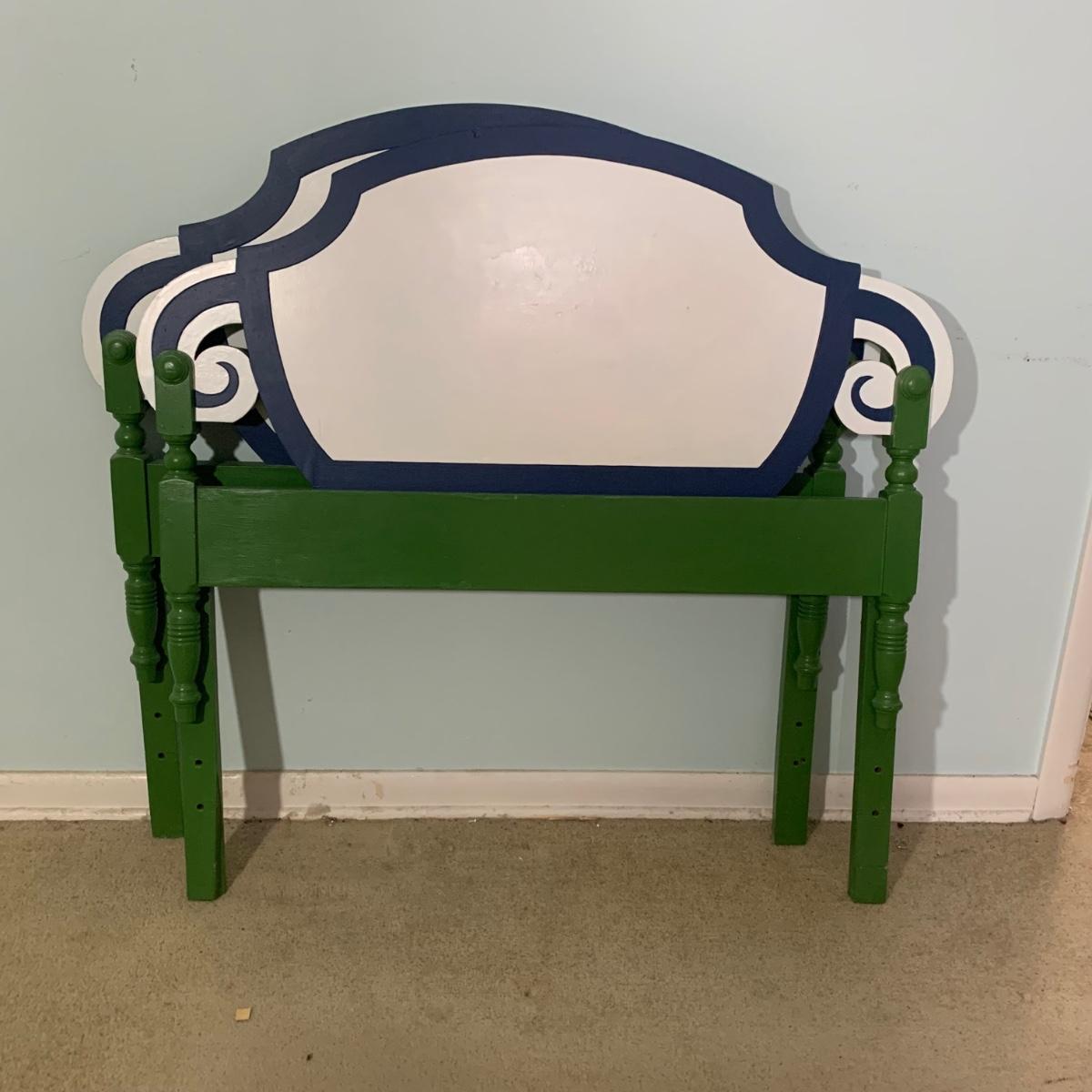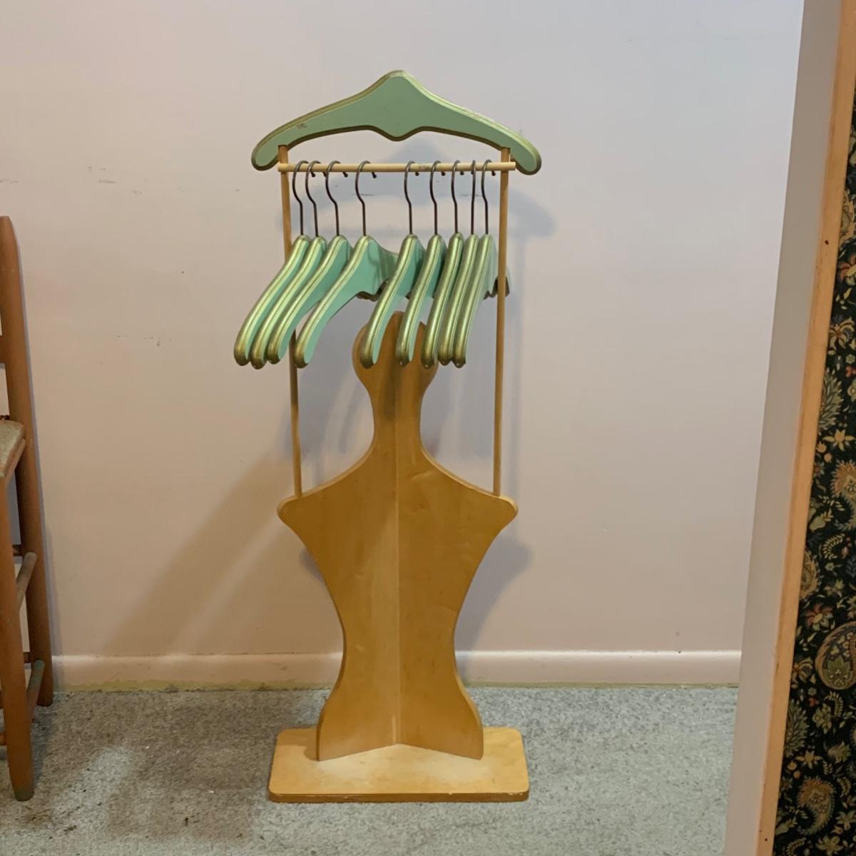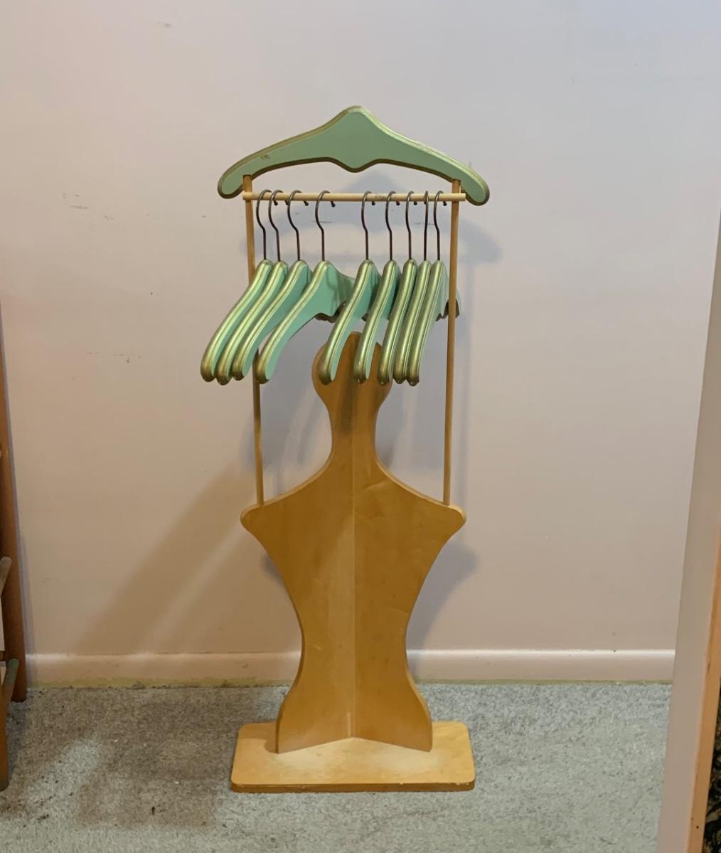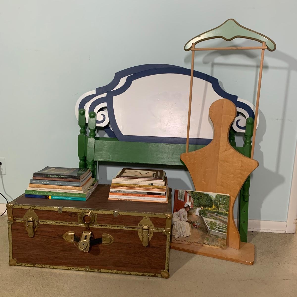 LOT 62M: Hand Crafted Valet, Painted Twin Headboards, Footlocker, Painted Wooden Hangers & Collection of Art Books