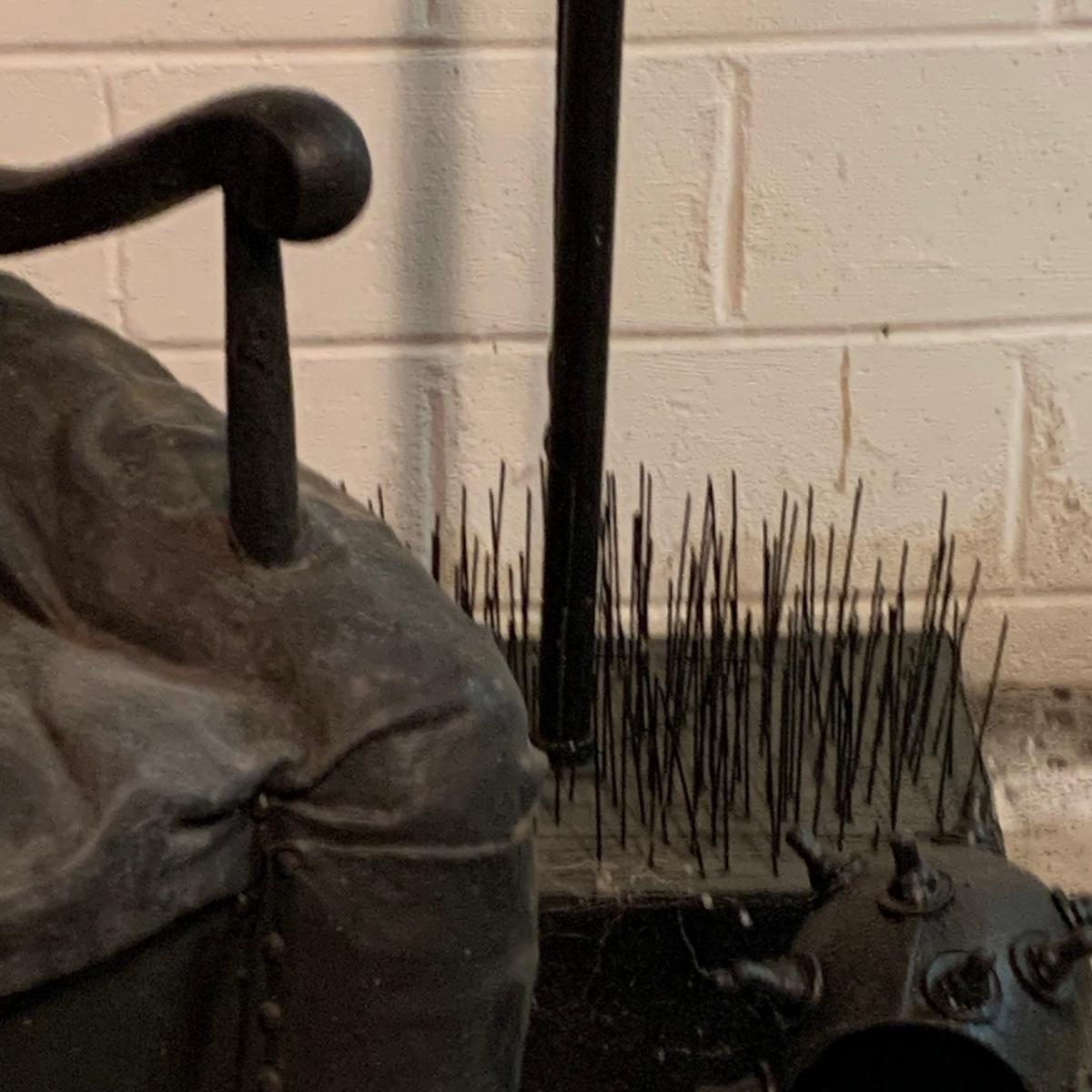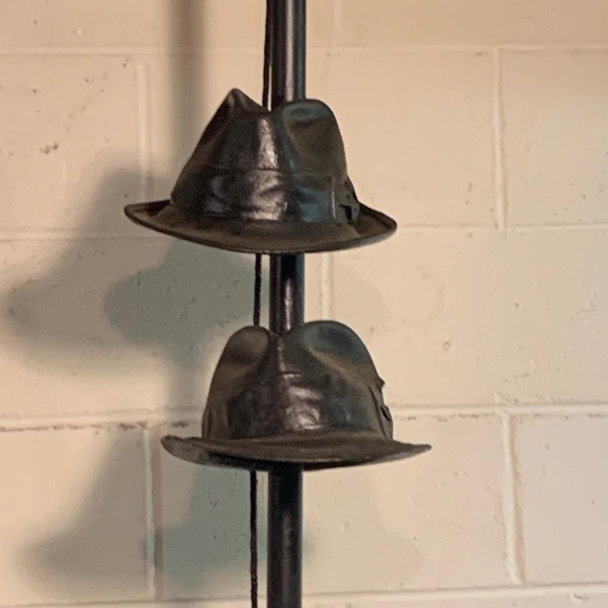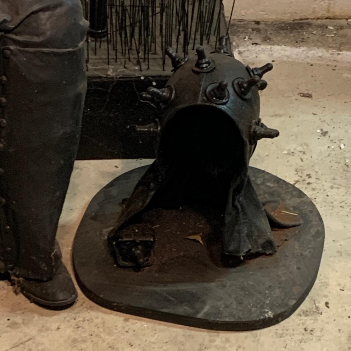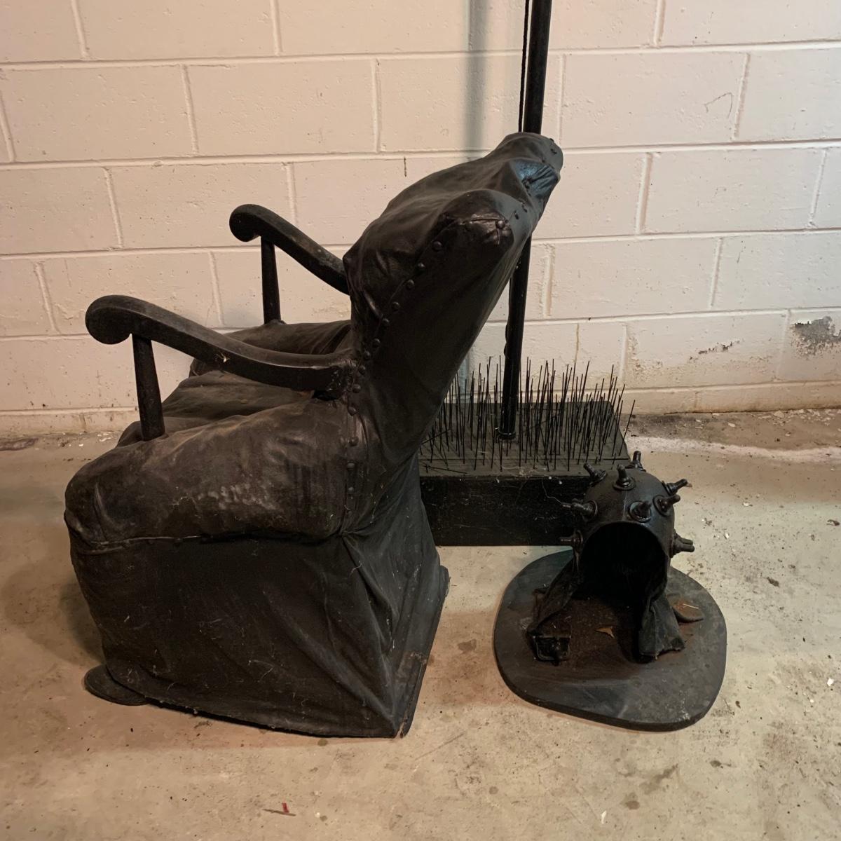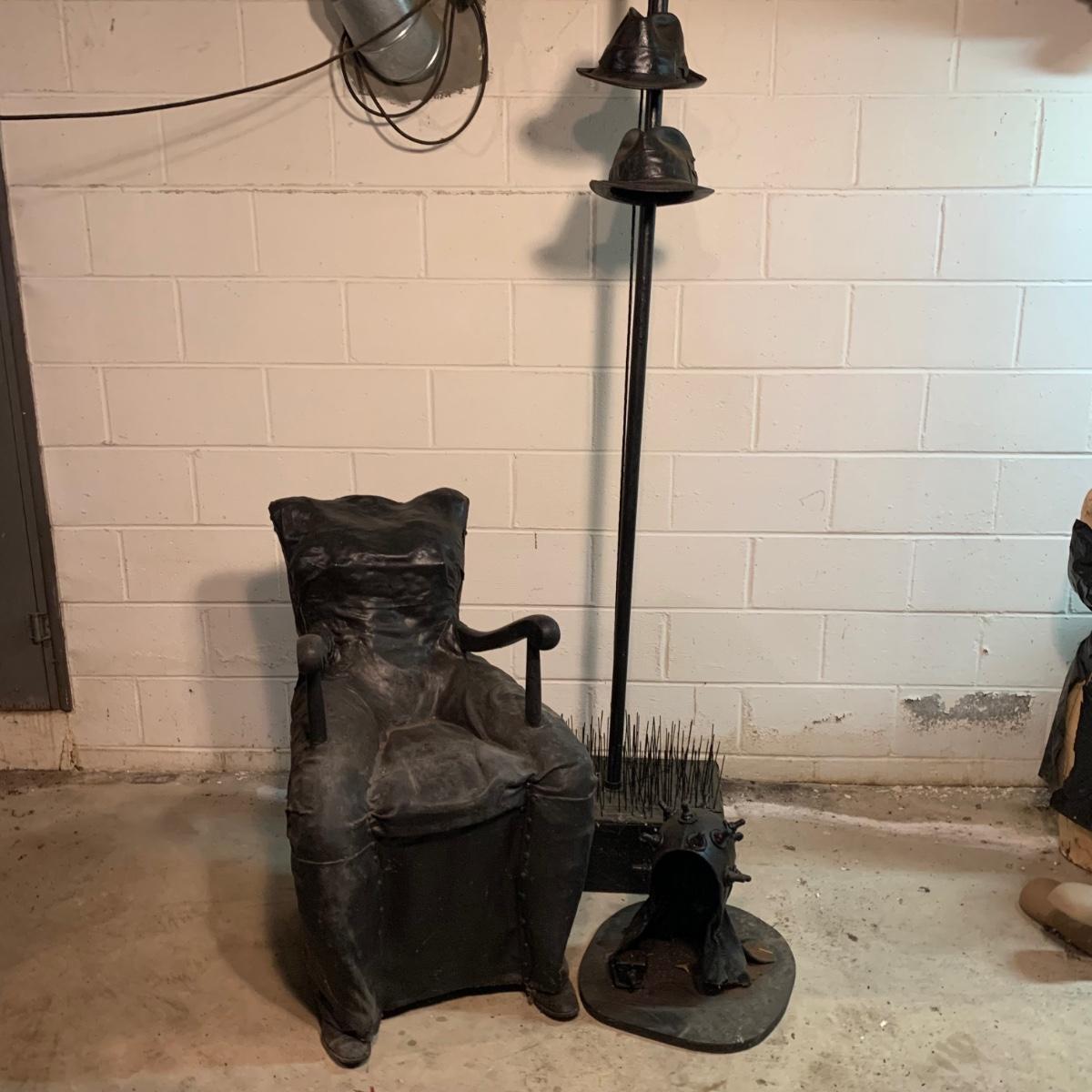 The exact composition of the sculptures is unknown. Some appear to be actual articles of clothing while others may be cloth which has been hardened then painted. They are life-size, lighter in weight.