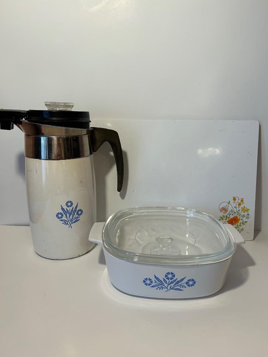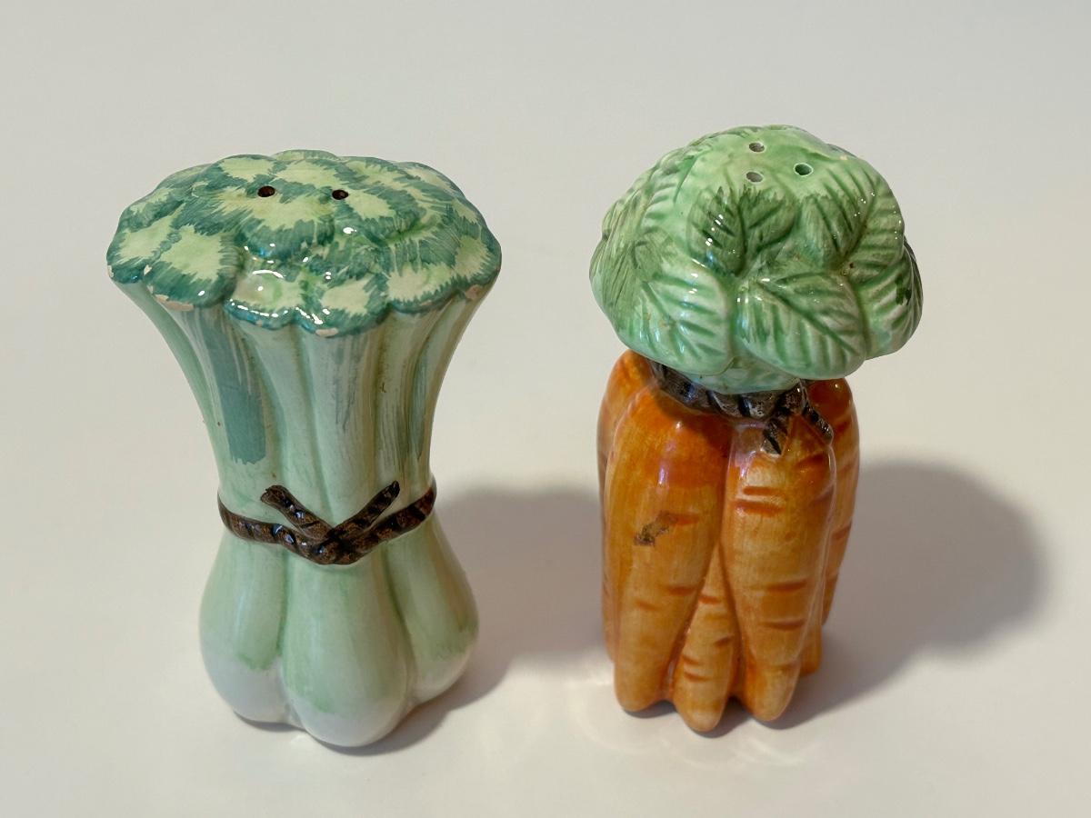 LOT 82K: Corning Ware Cornflower, Vegetable S&P Shakers And More