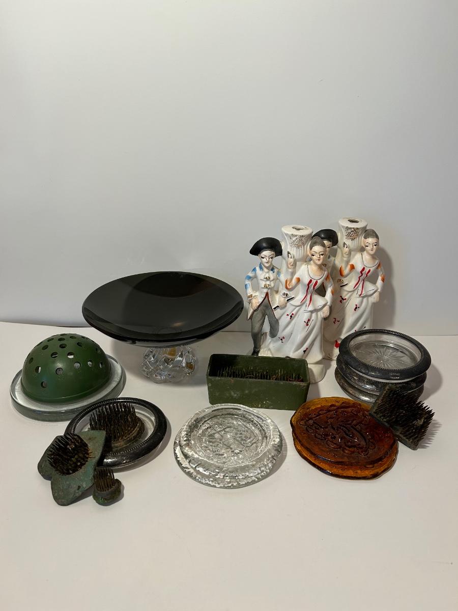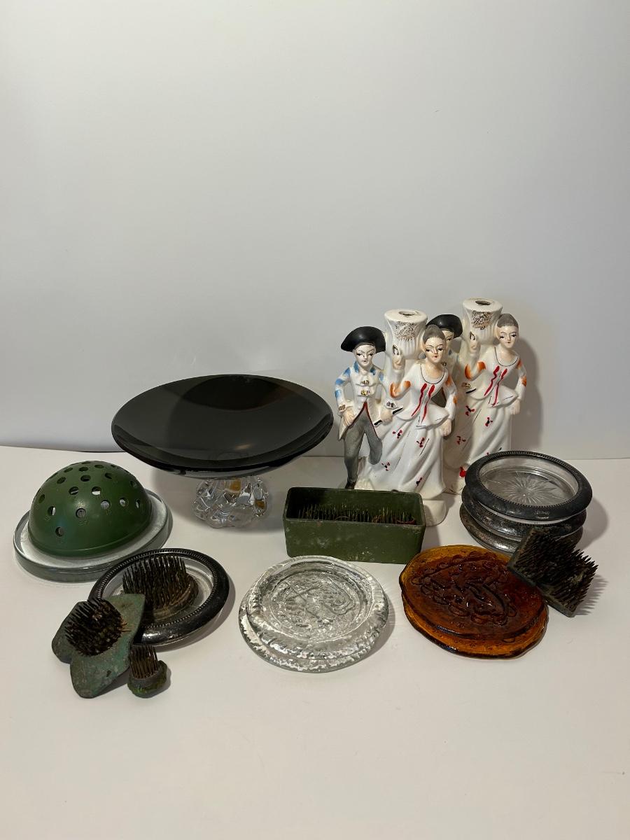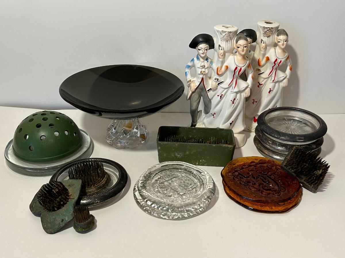 LOT 85F: Decorative Bowl, Flower Frogs, Coasters And More