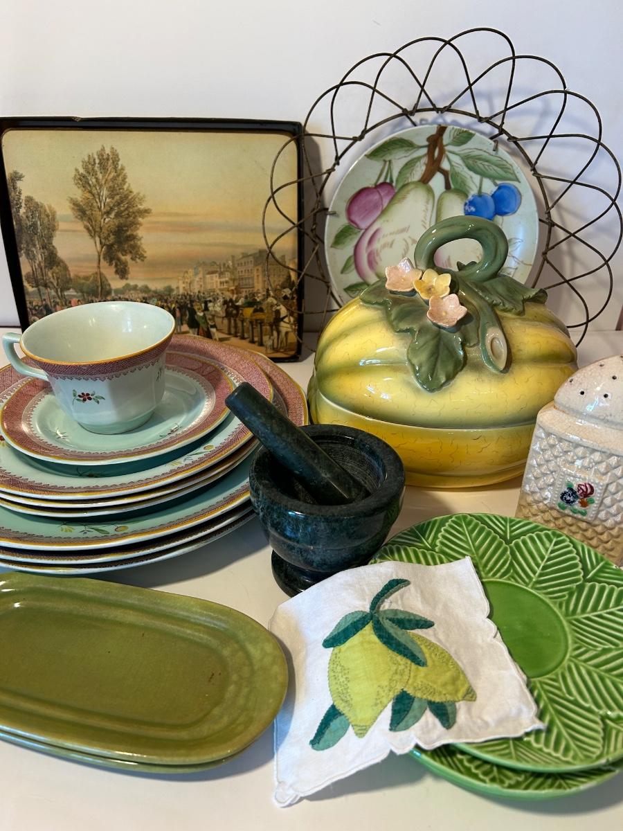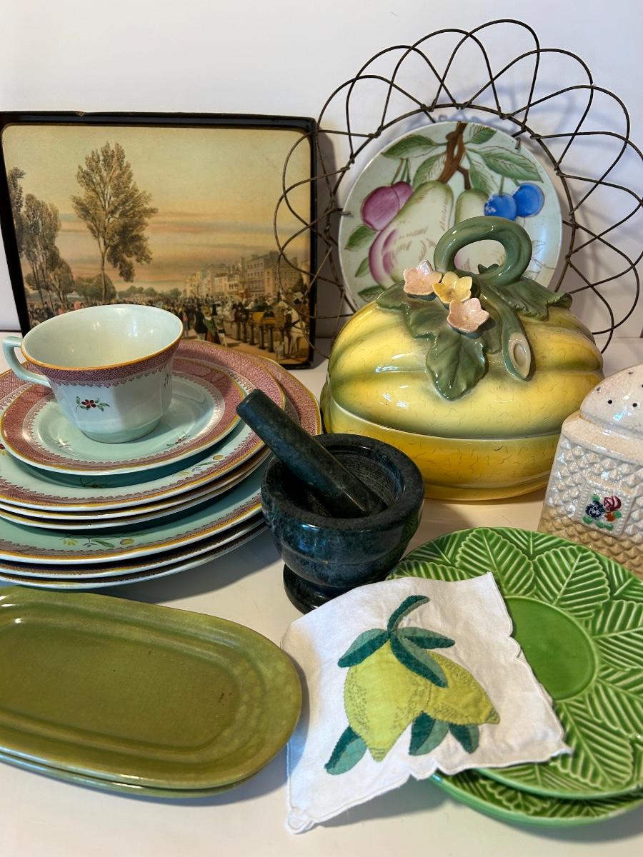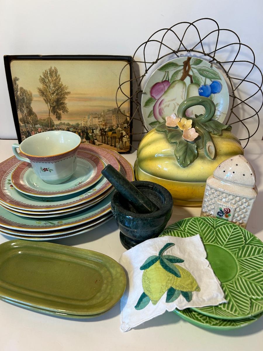 LOT 95K: Vintage Fritz And Floyd Covered Dish, Adams Calyx Ware, Placemats, Bread Basket And More
