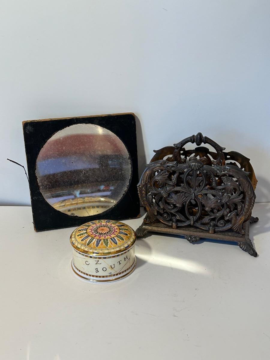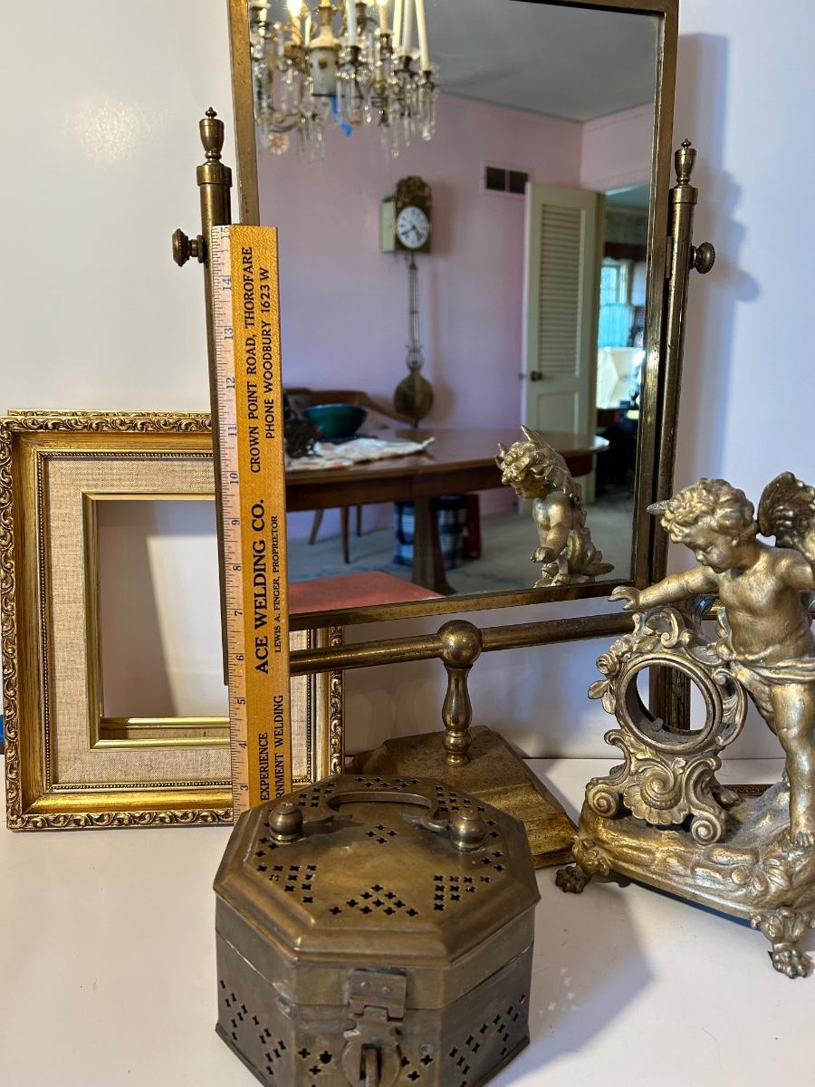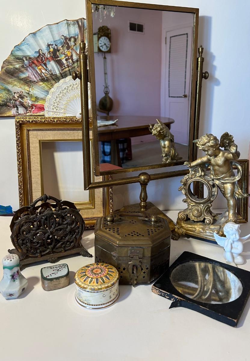 LOT 98F: Wedgewood Trinket Box With Lid, Brass Mirror, Frames And More