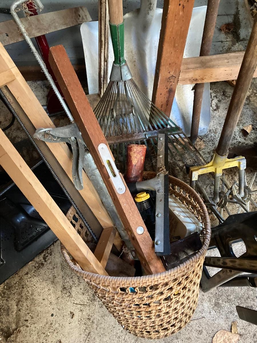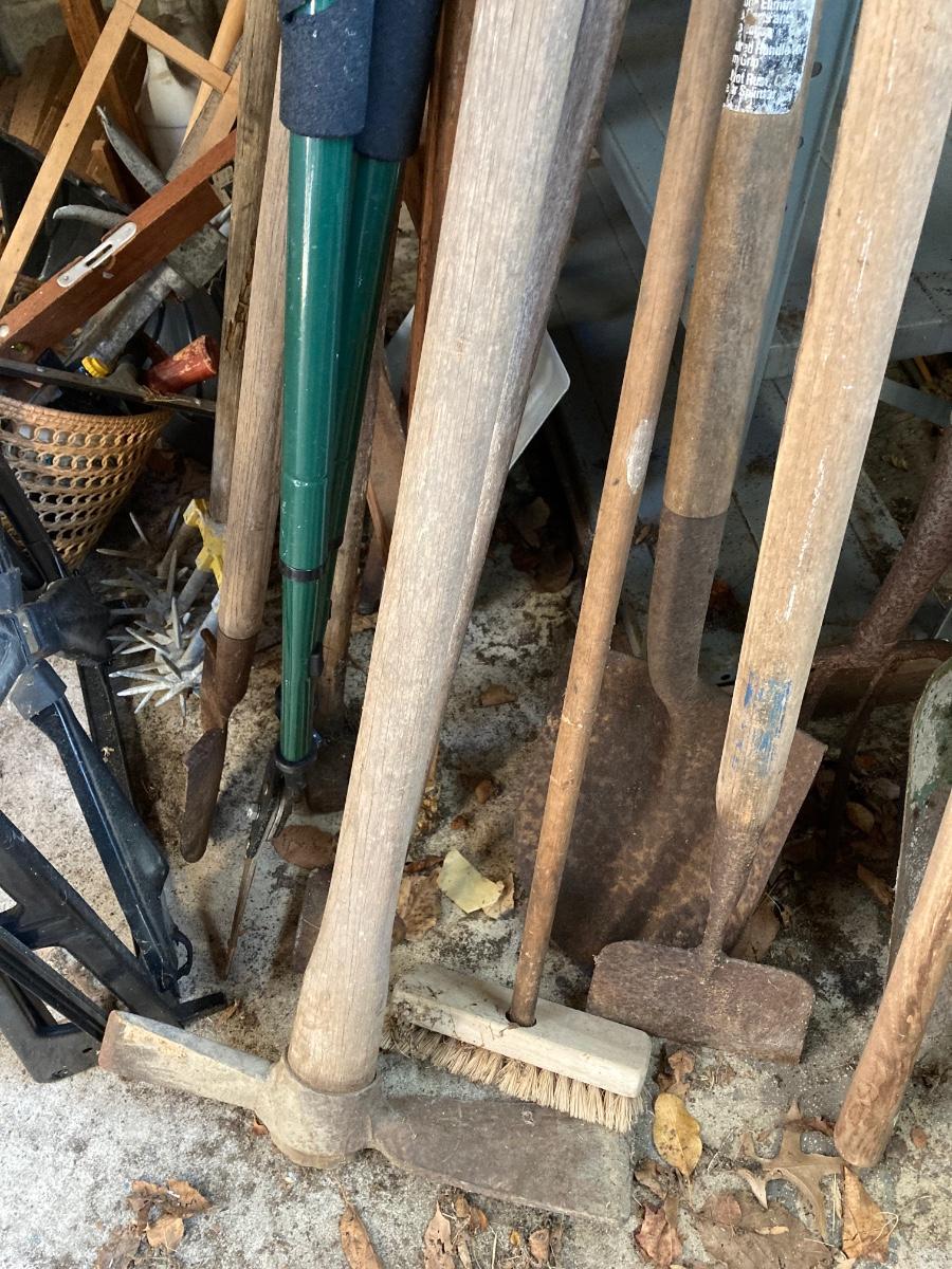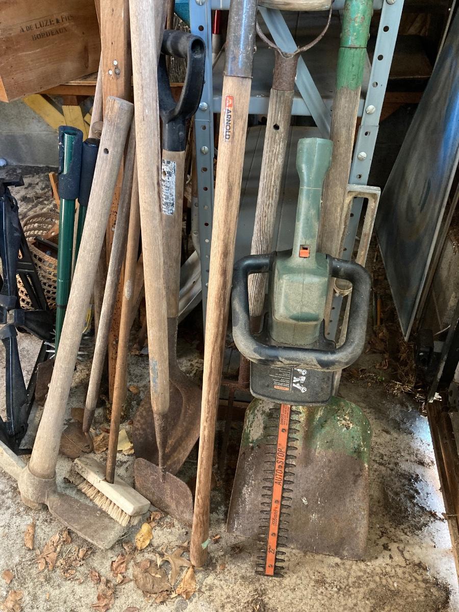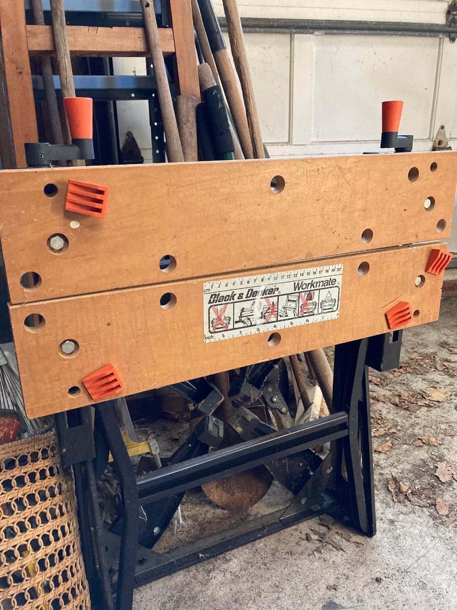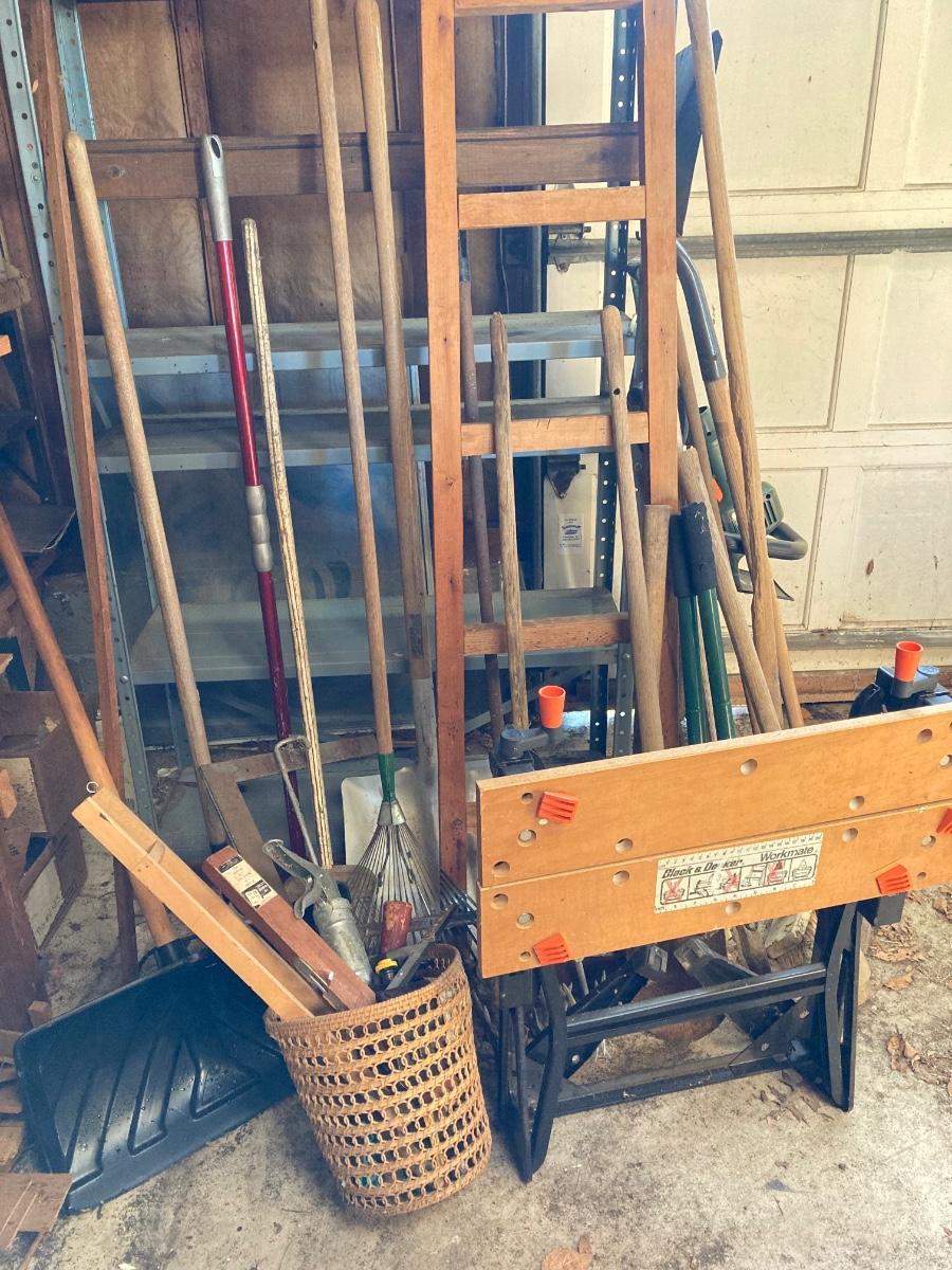 LOT 154G: Black and Decker Work Bench with Large Lot of Lawn and Garden Tools