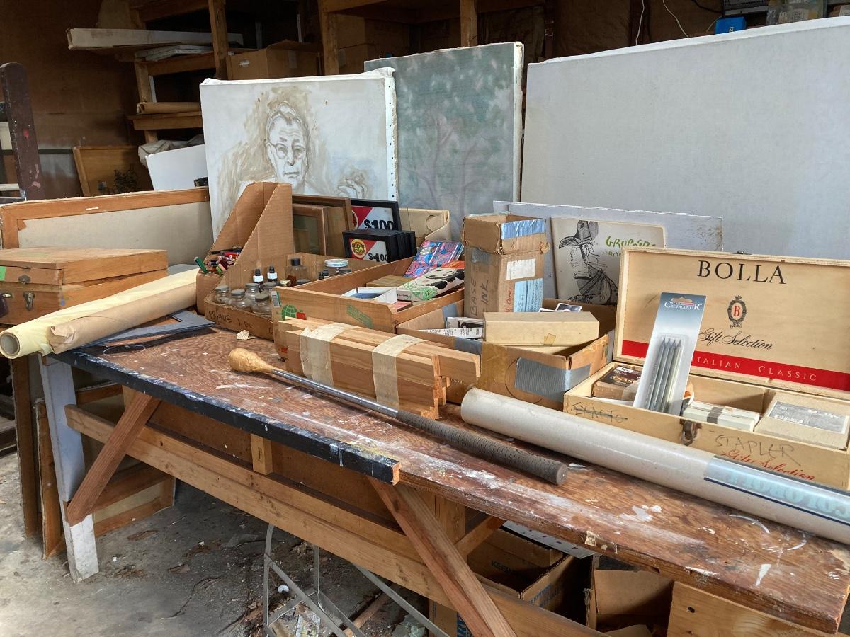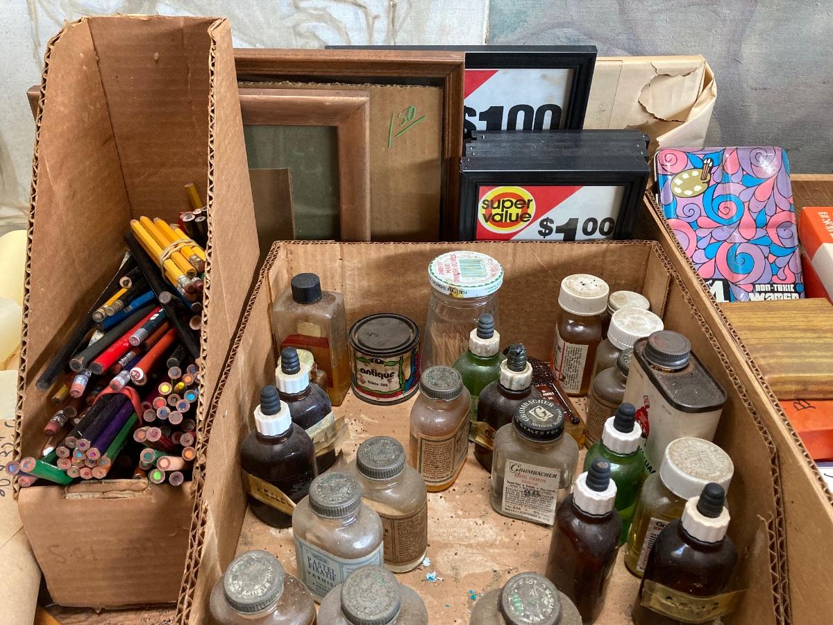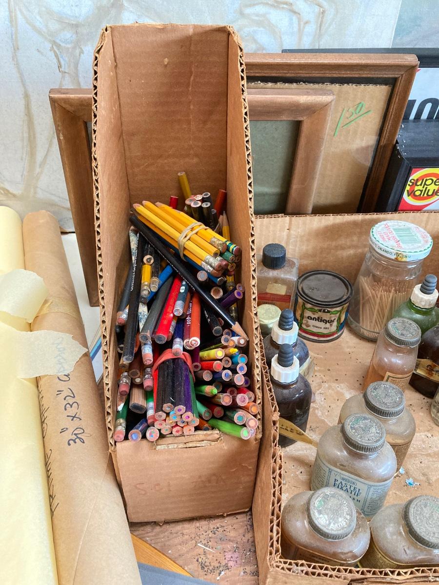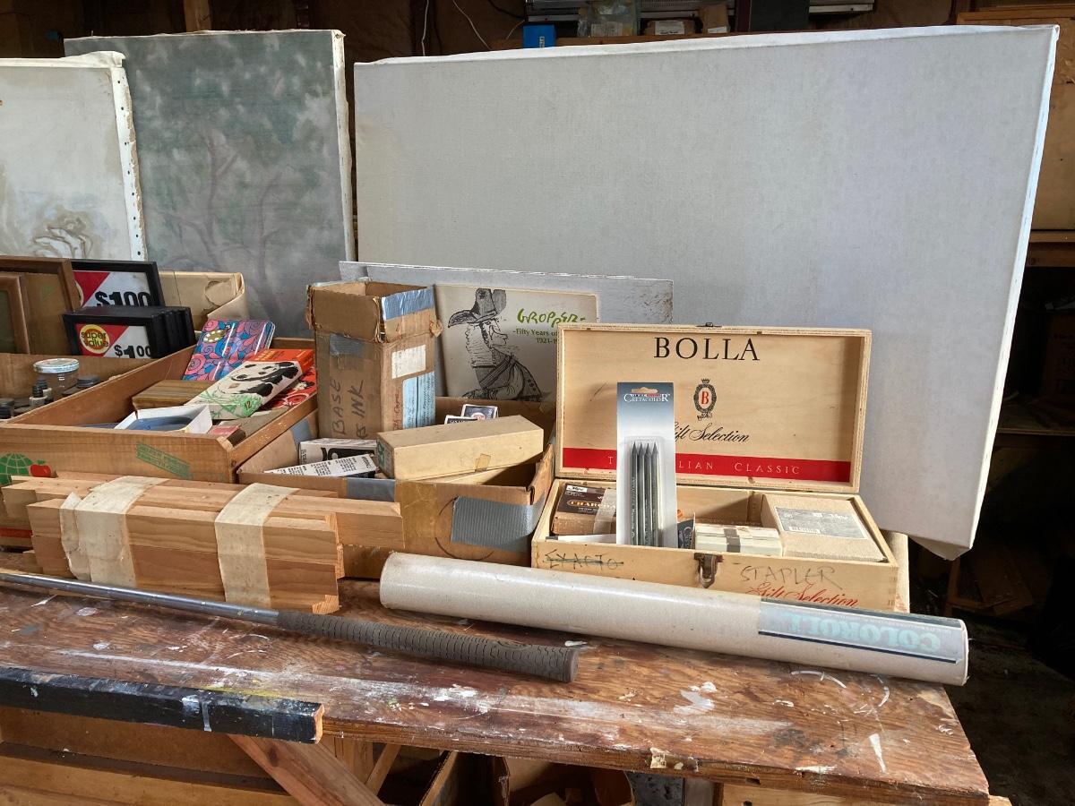 LOT 160G: Table Filled with Art Supplies