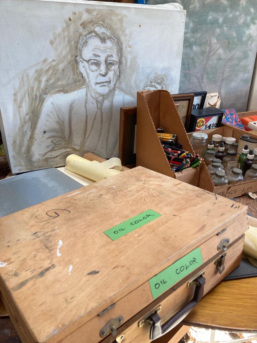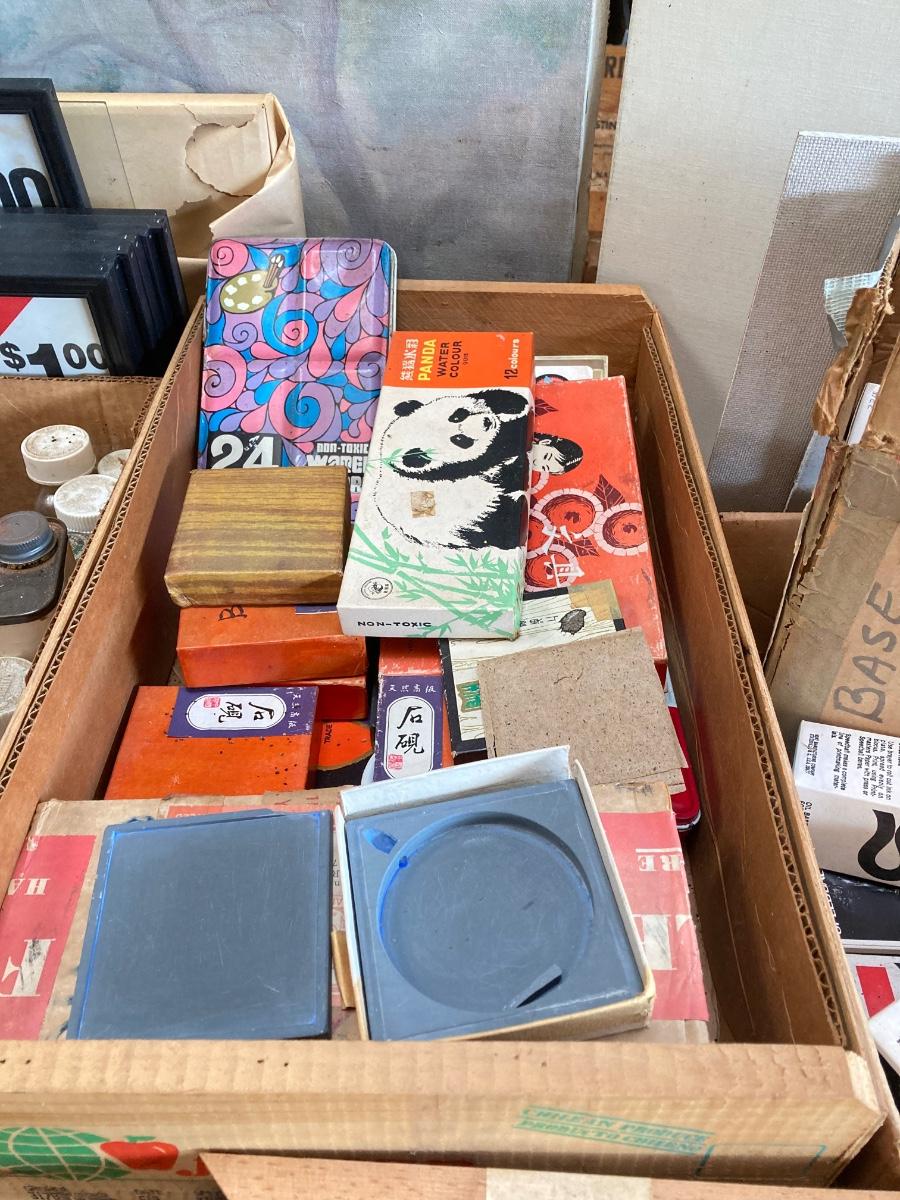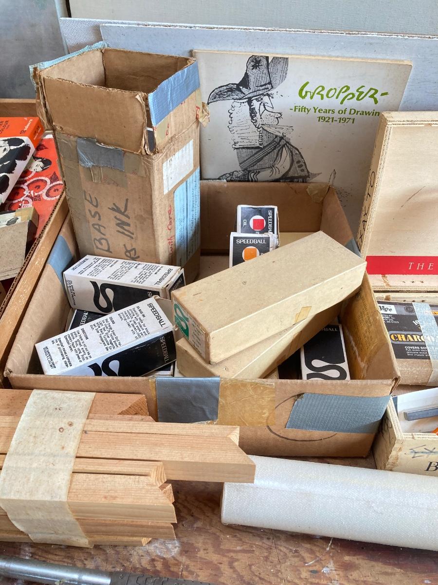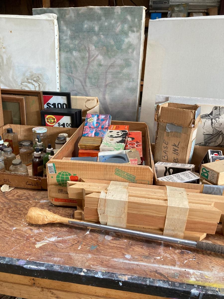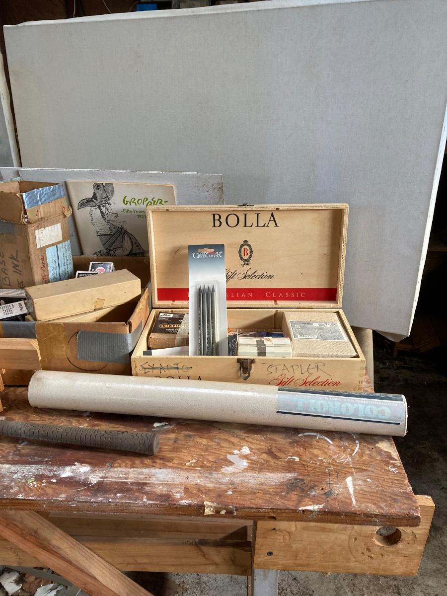 LOT 160G: Table Filled with Art Supplies
