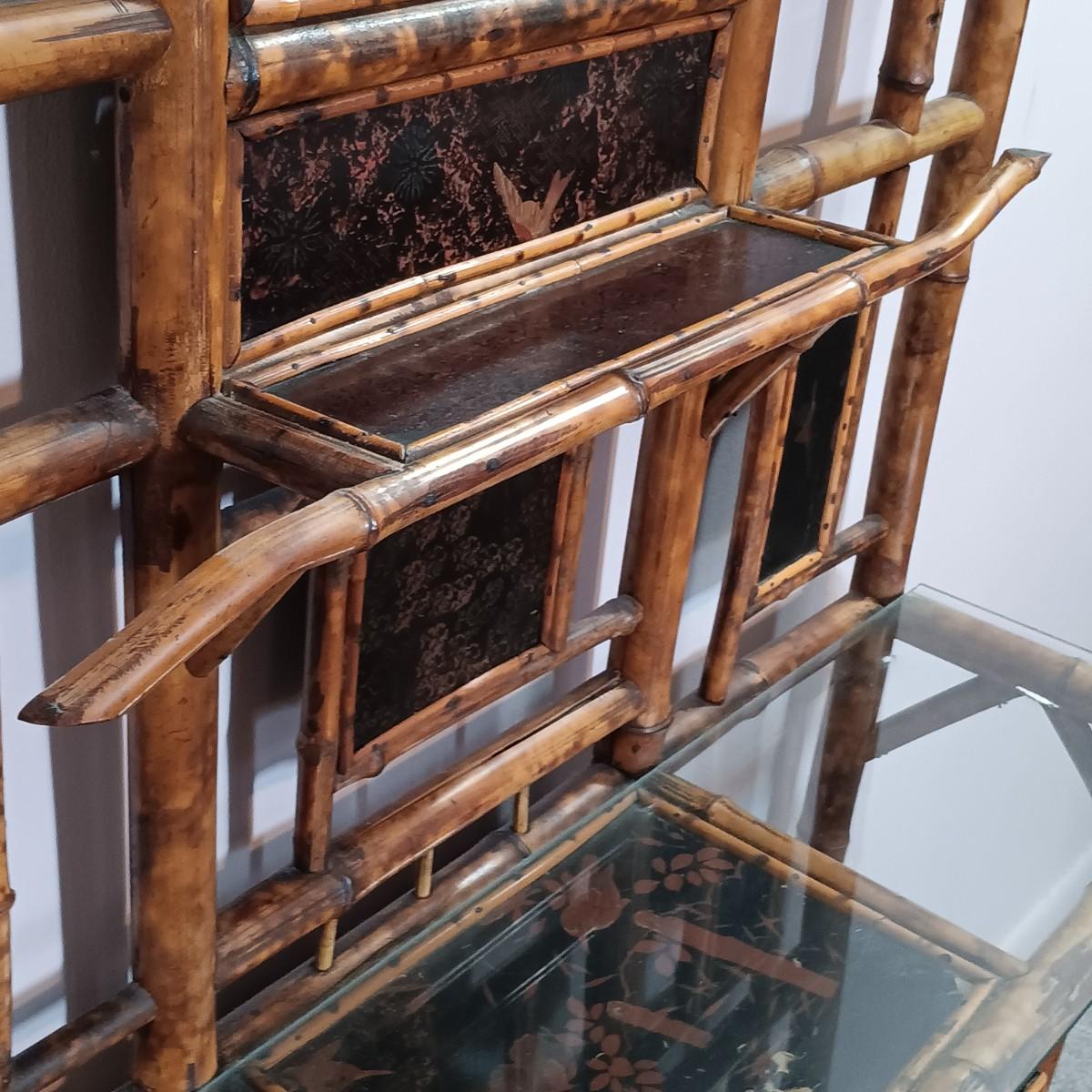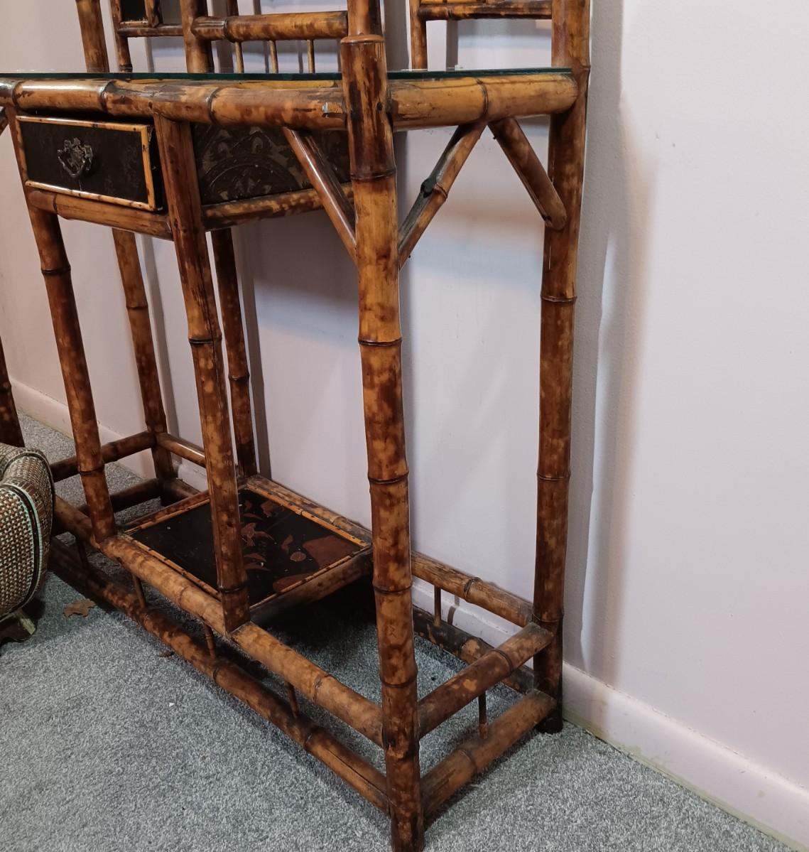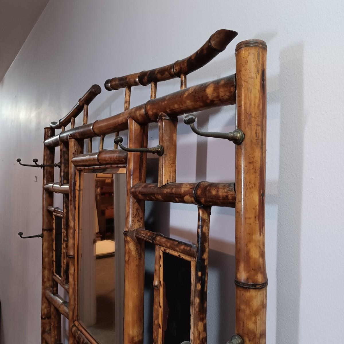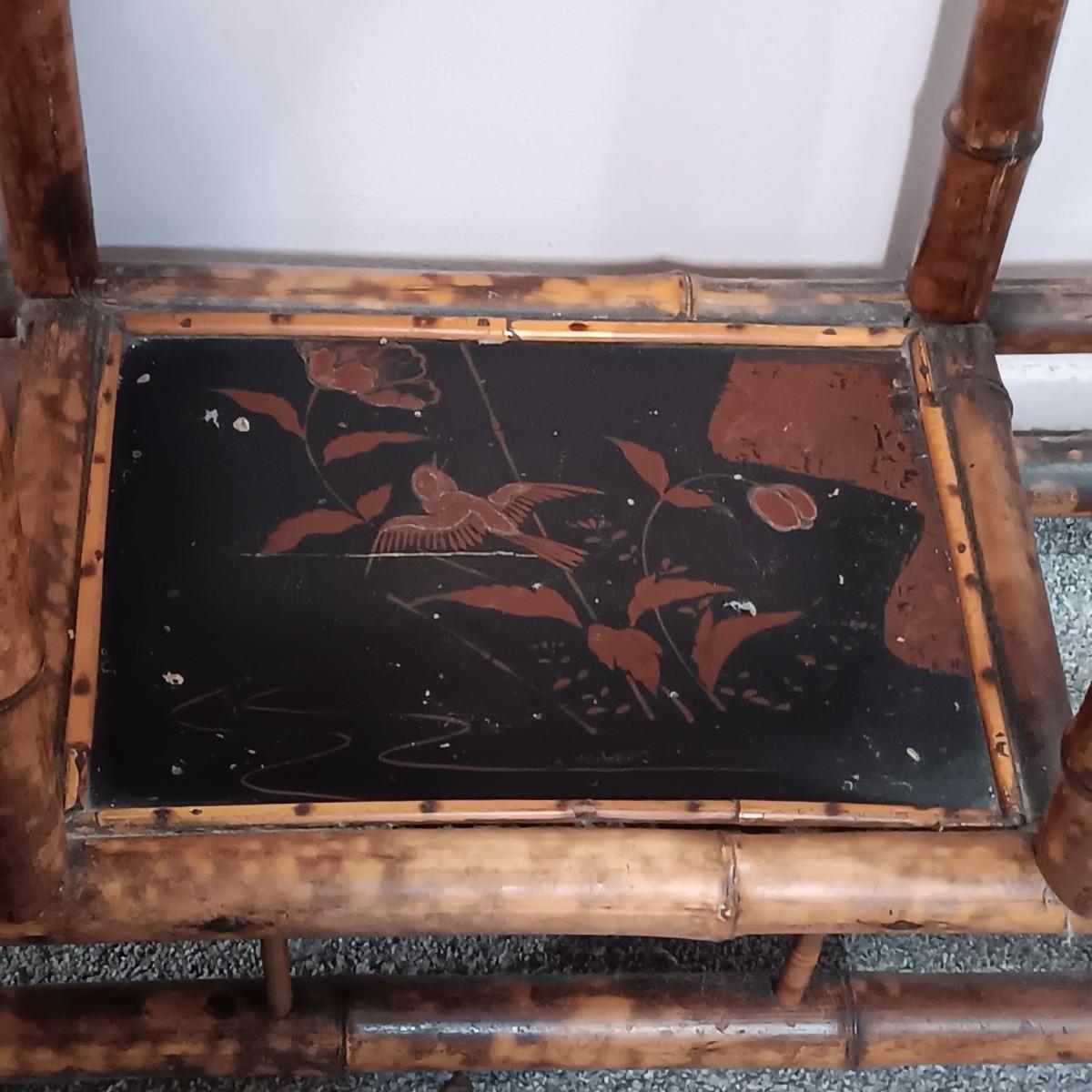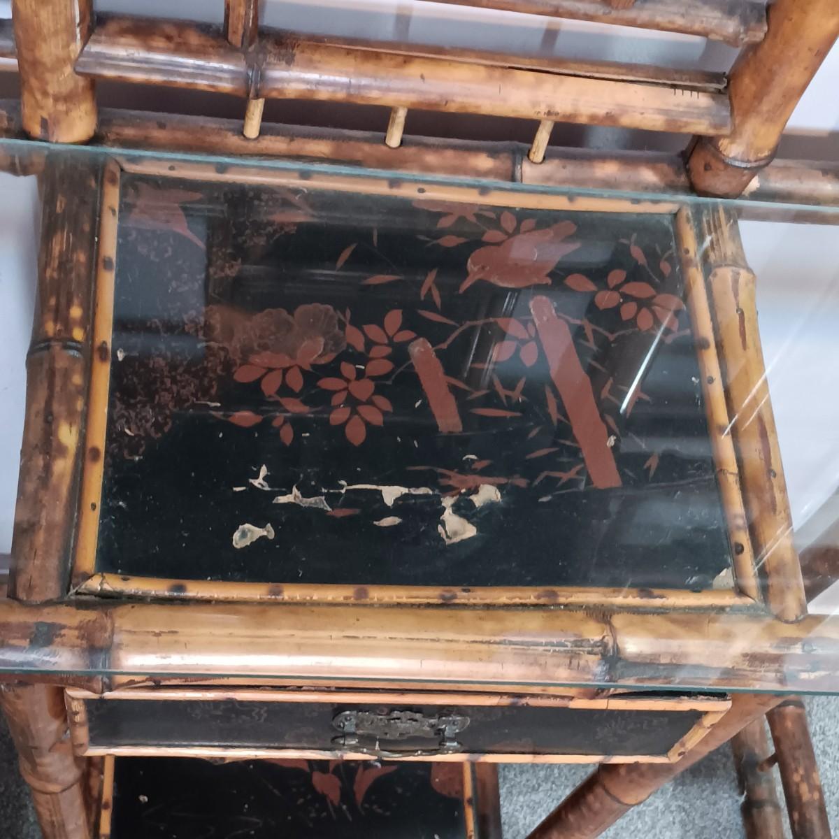 LOT 172H: Vintage Bamboo Hall Tree with Wooden Basket & Lacquered Box