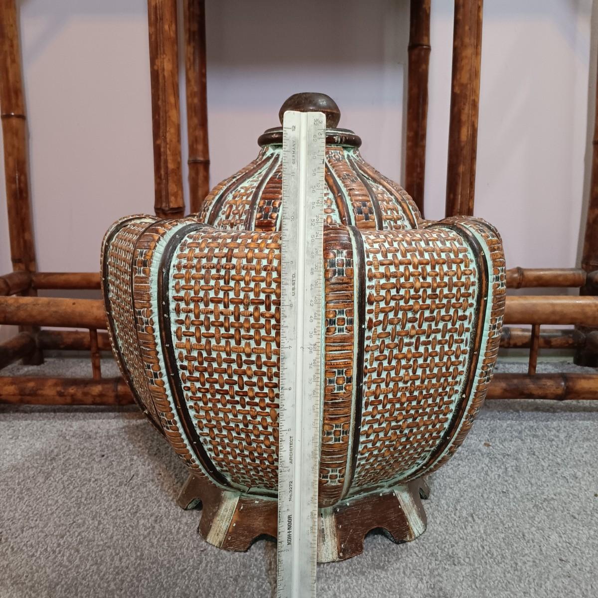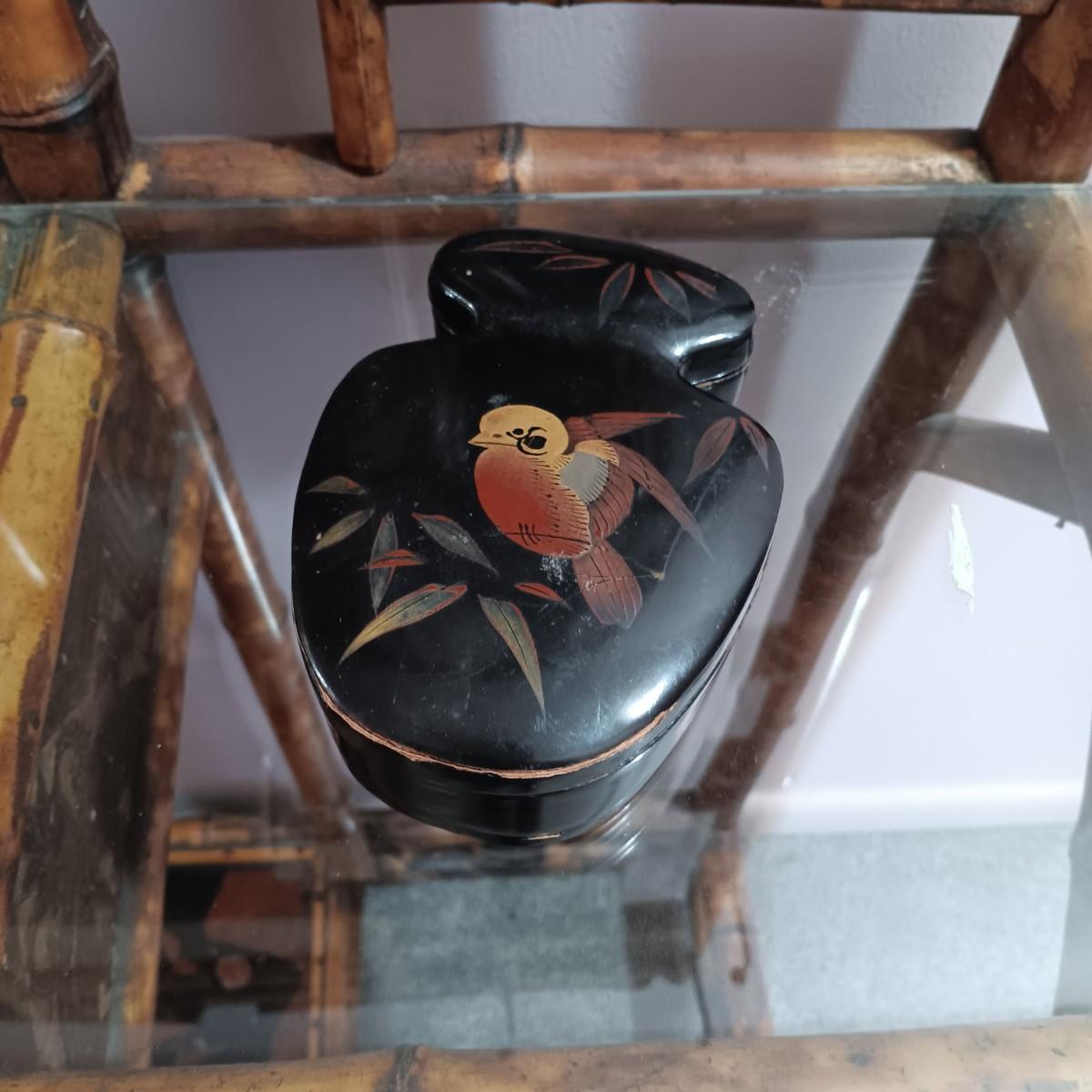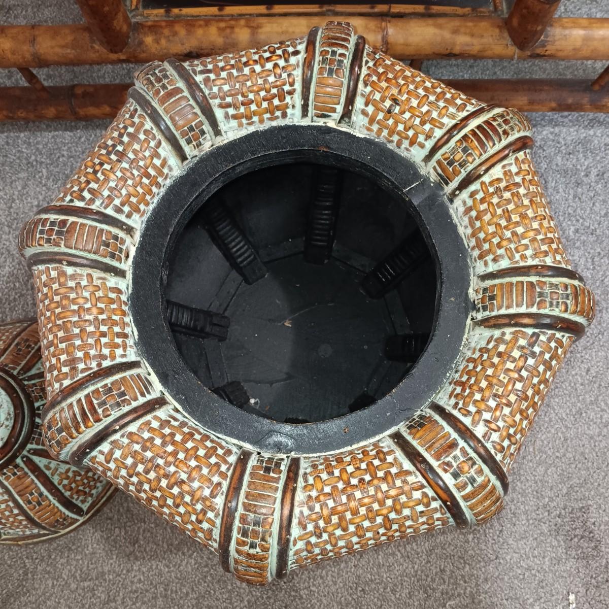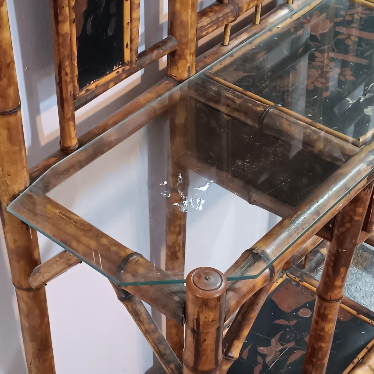 LOT 172H: Vintage Bamboo Hall Tree with Wooden Basket & Lacquered Box