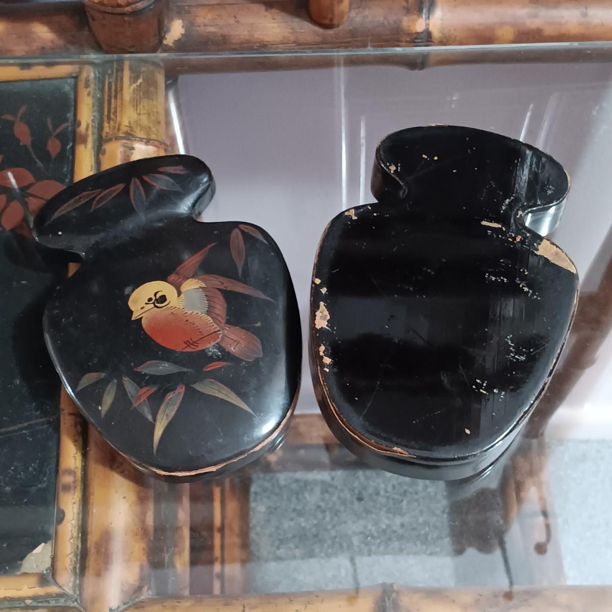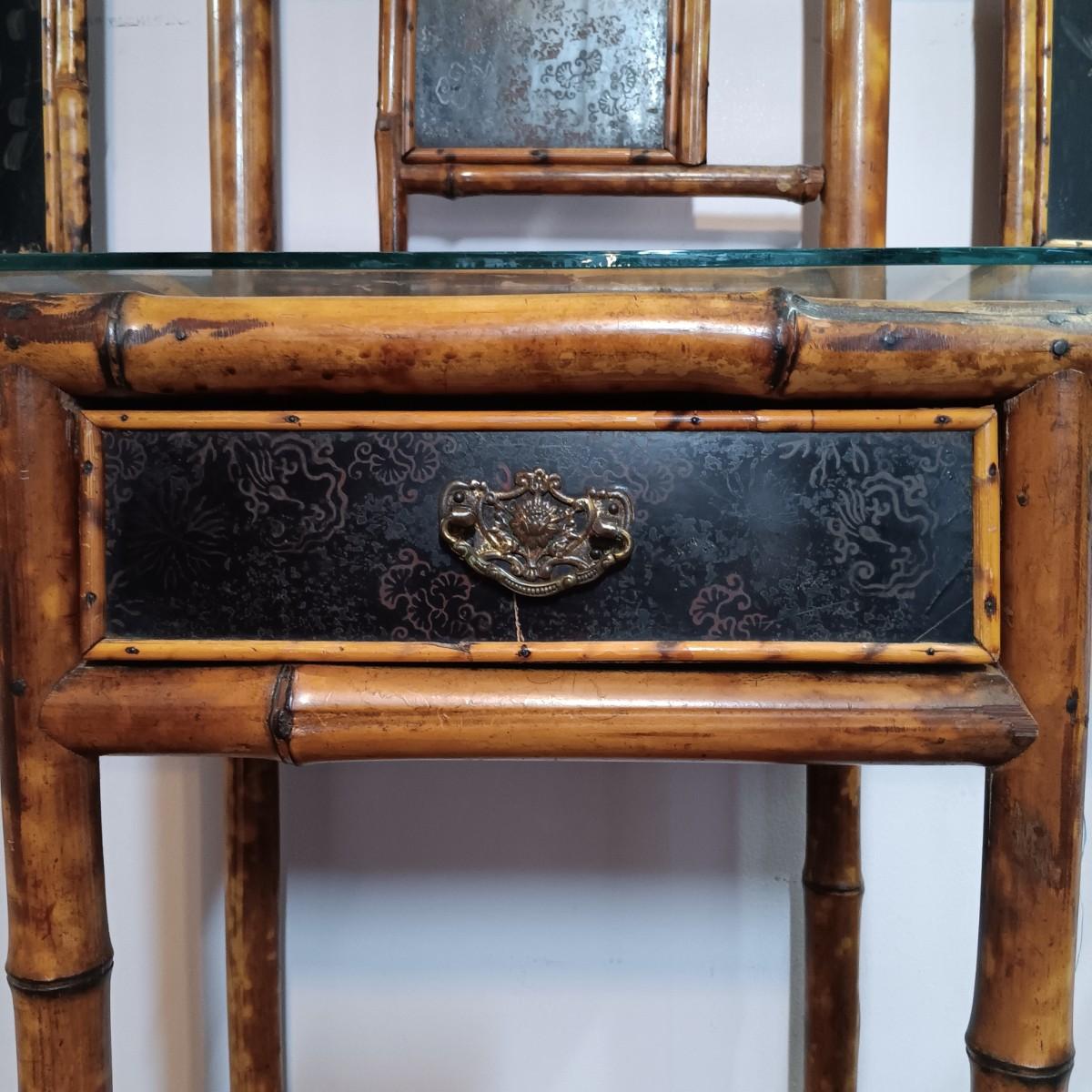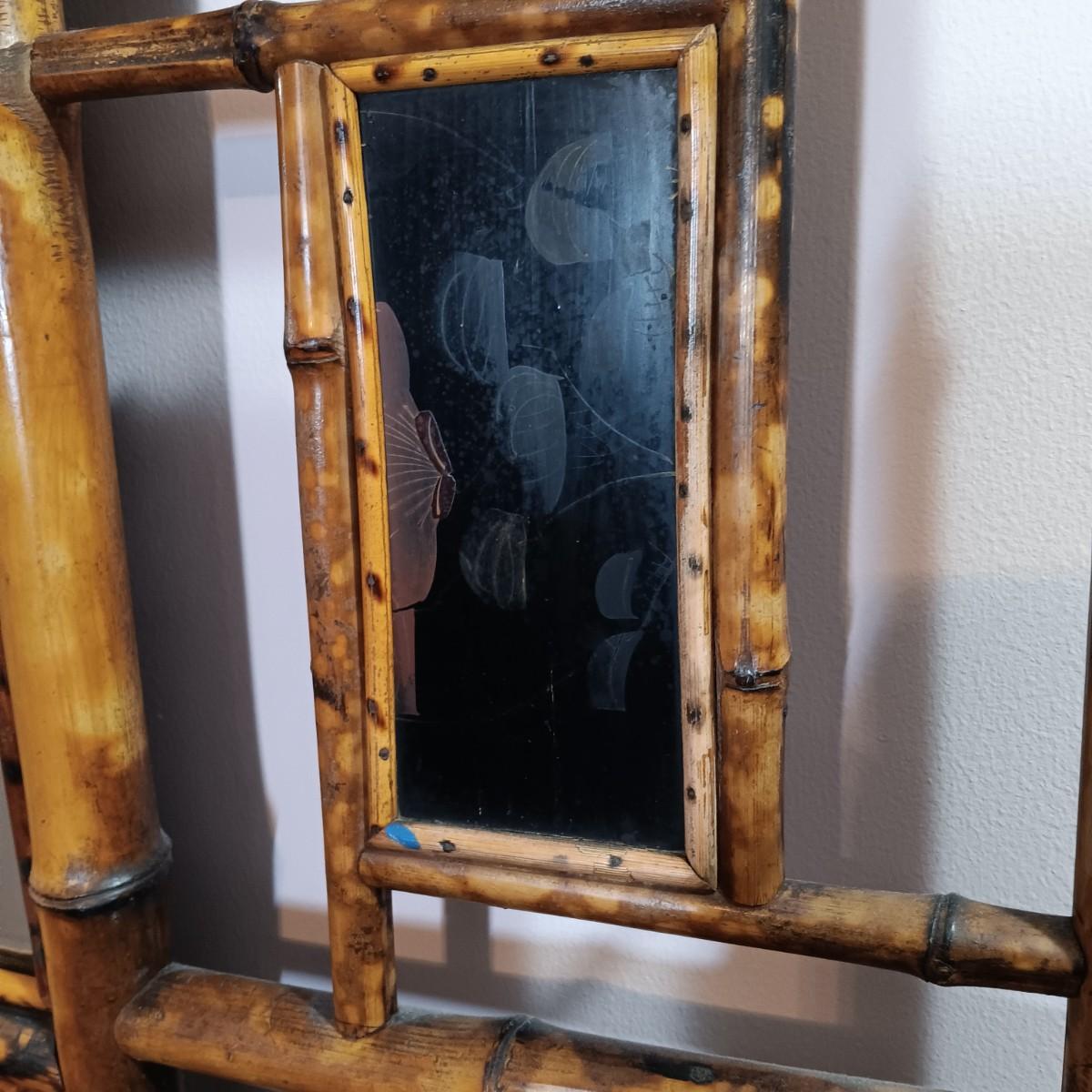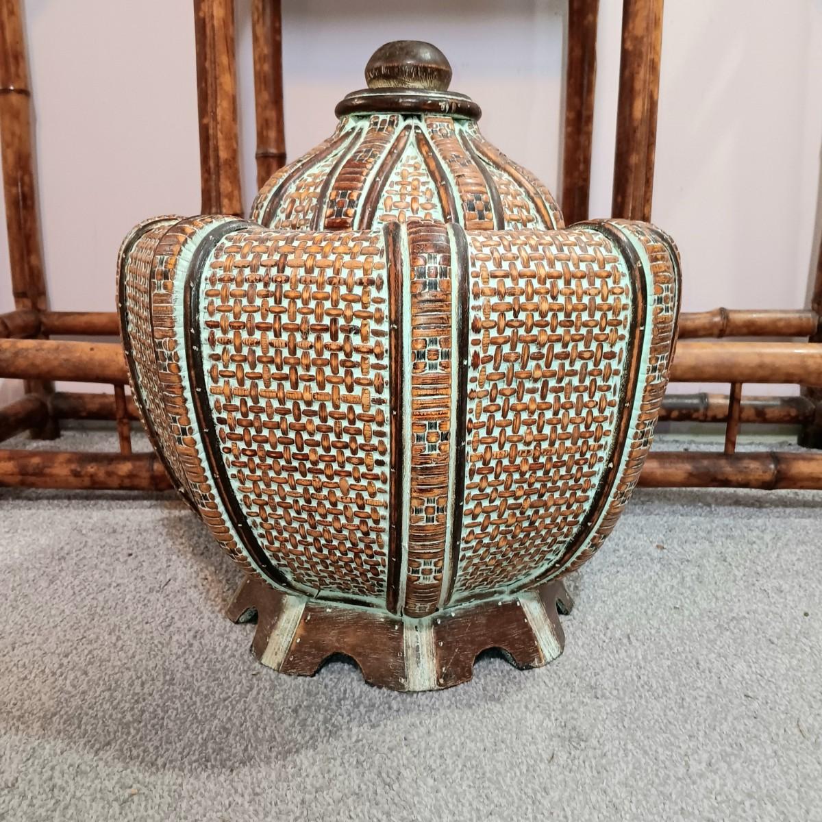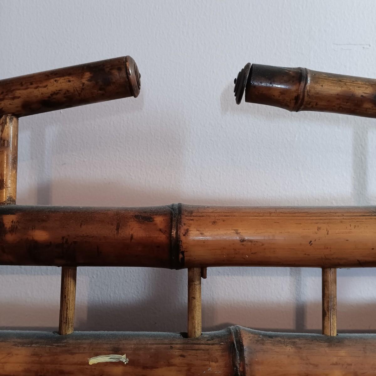 LOT 172H: Vintage Bamboo Hall Tree with Wooden Basket & Lacquered Box