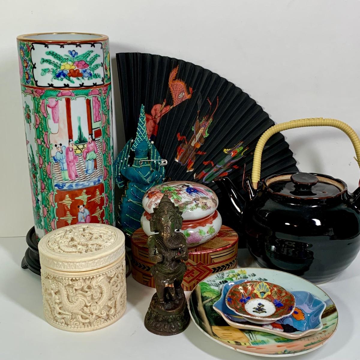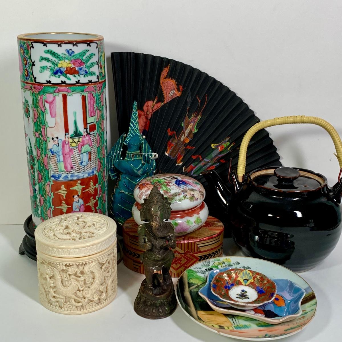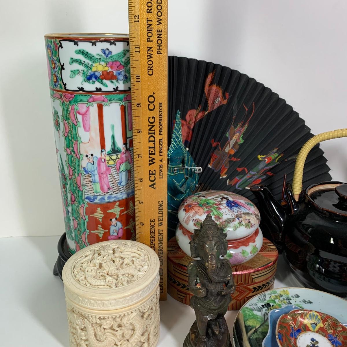 LOT 176Chinese Rose Medallion Vase, Small Noritake Dish & More