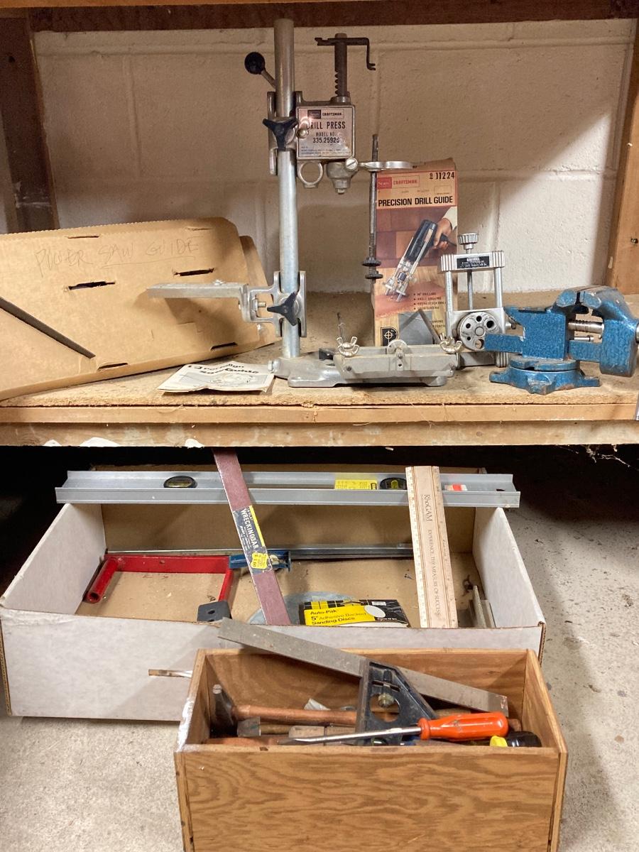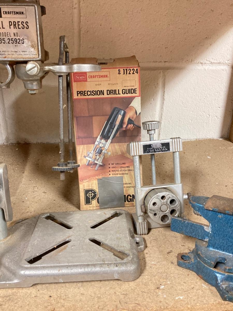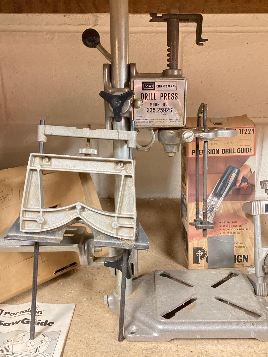 LOT 194DB: Basement Finds - Sears / Craftsman Drill Press, Saw Guide and More