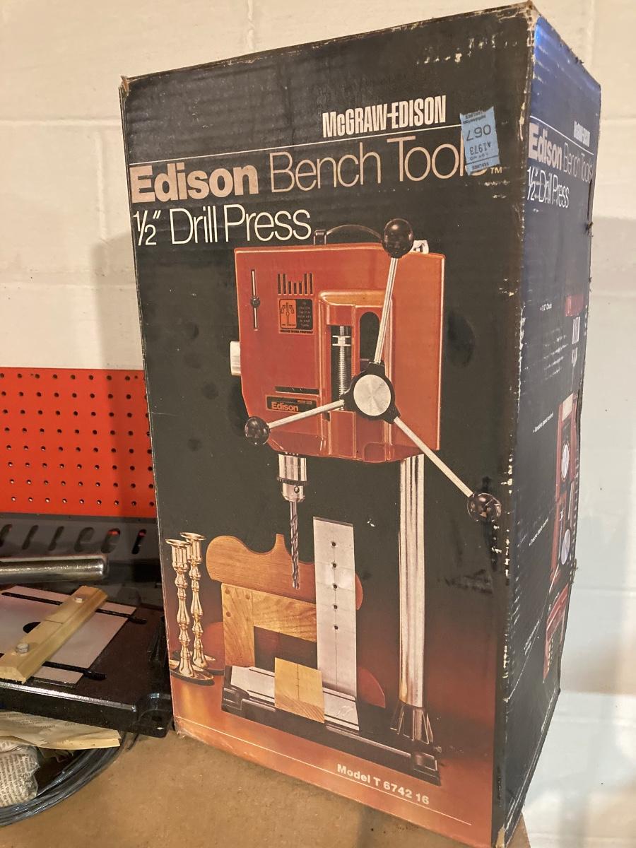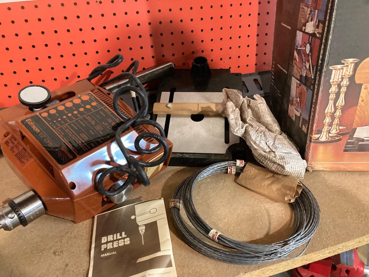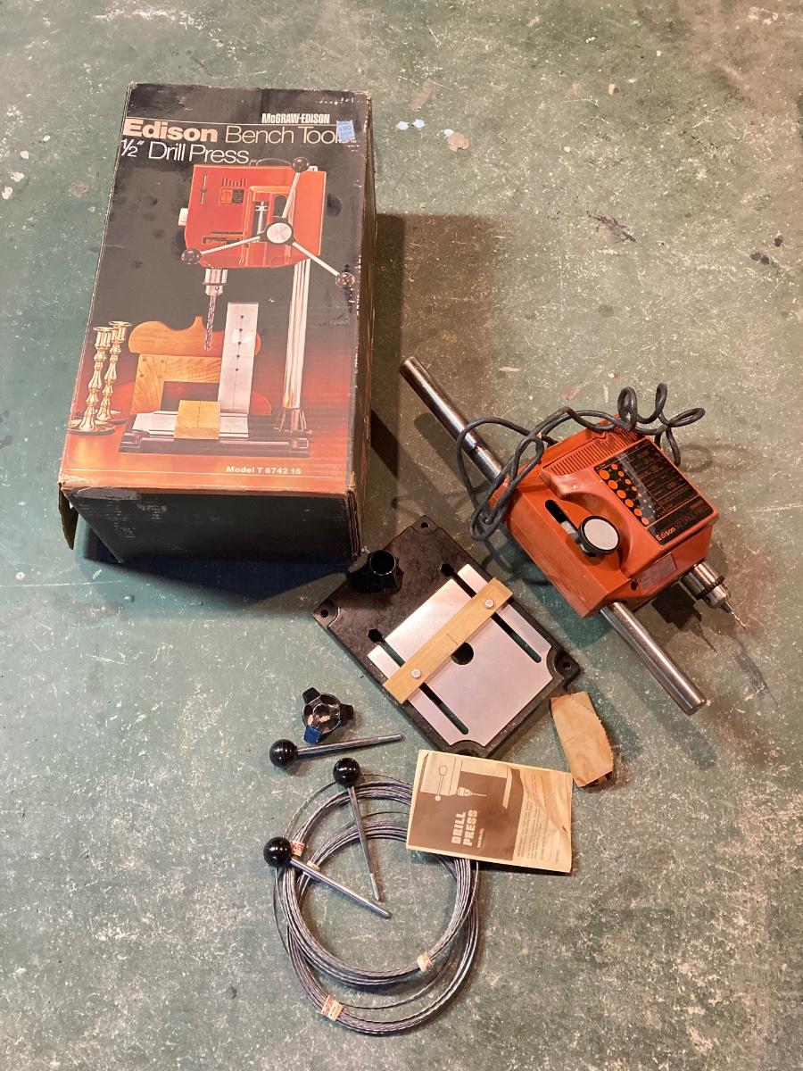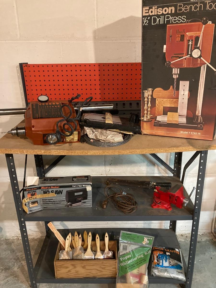 LOT 196DB: Work Bench with Edison Drill Press, Jig Saw and More