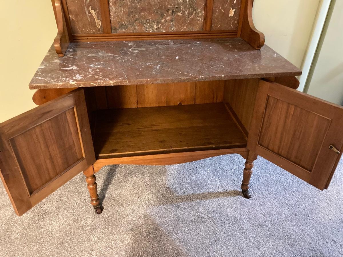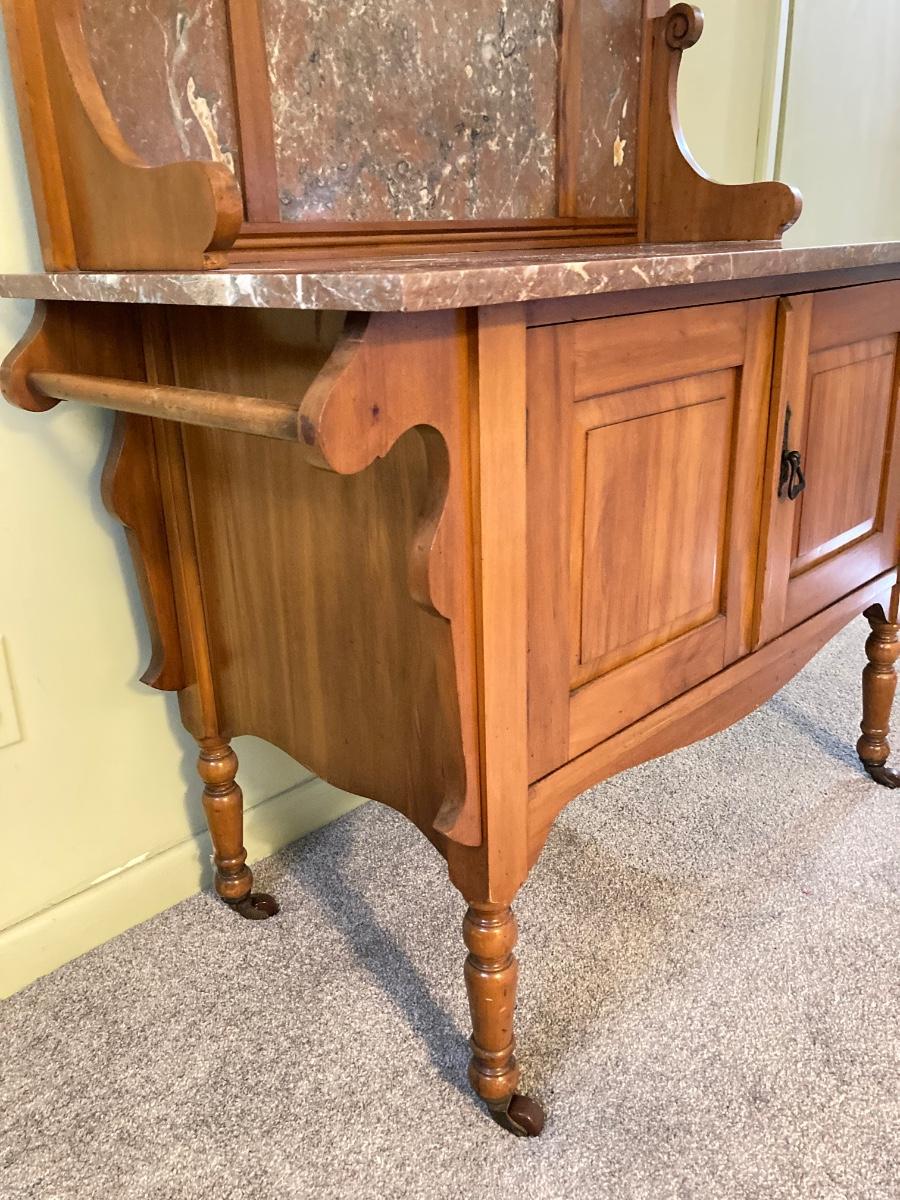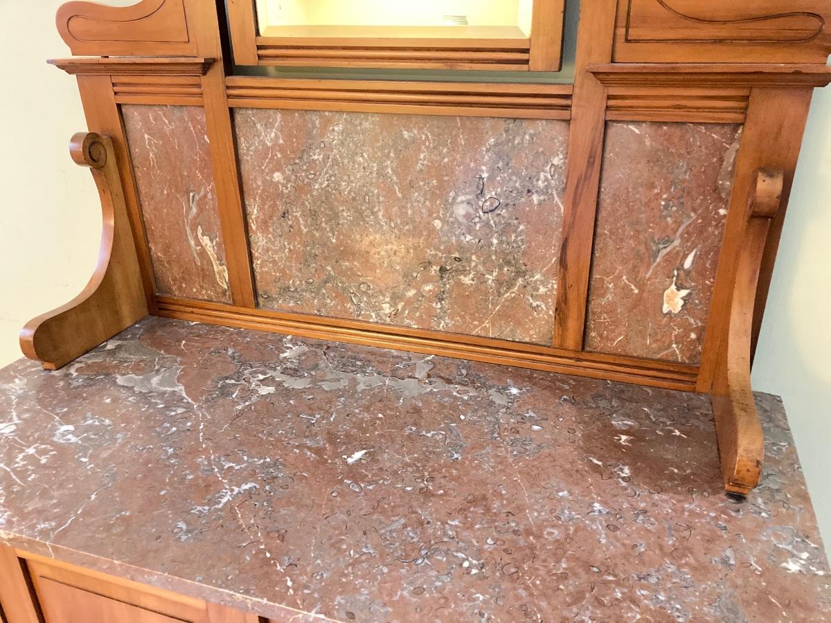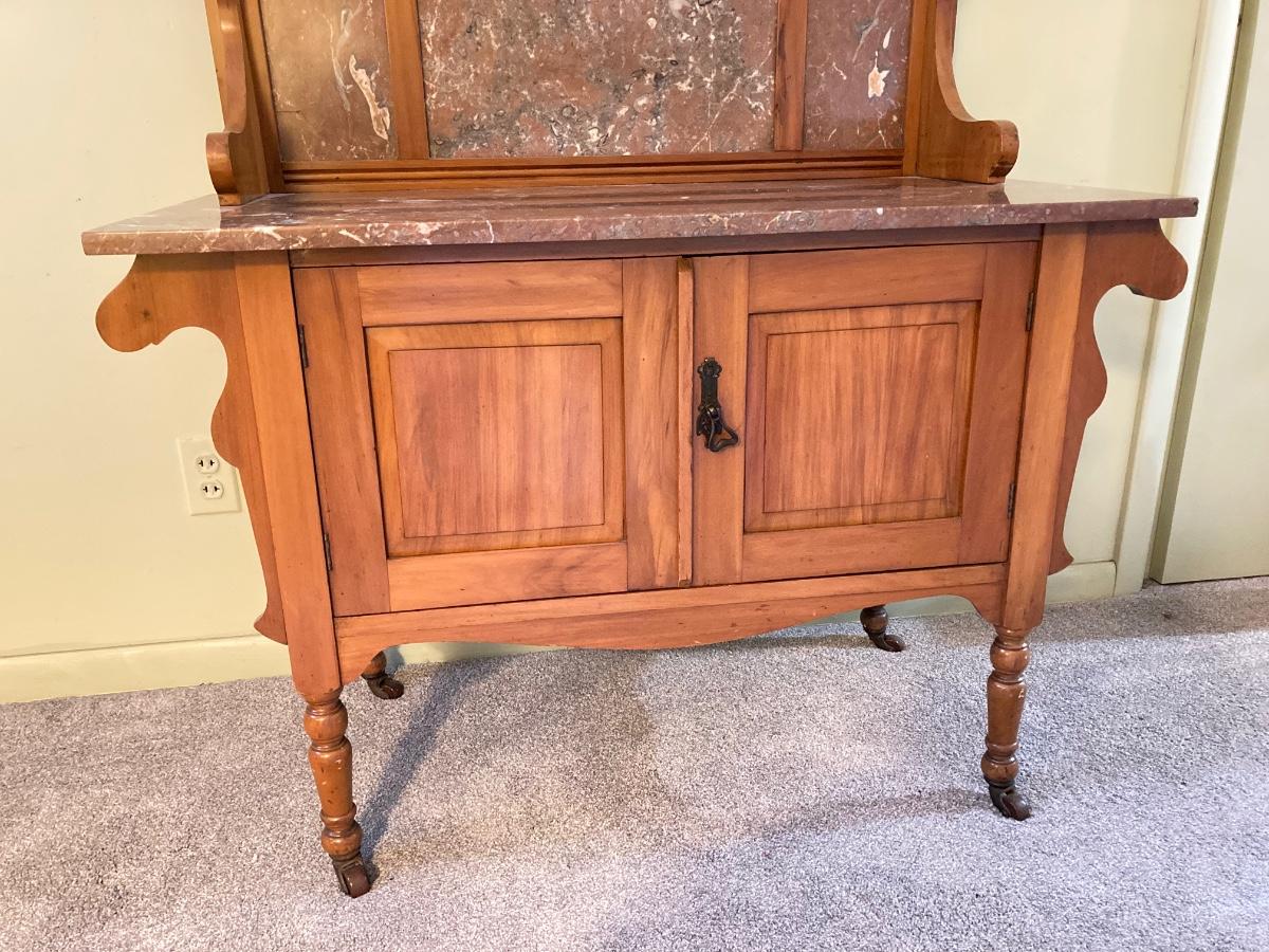 LOT 208B: Vintage Rolling Marble Top Buffet Cabinet