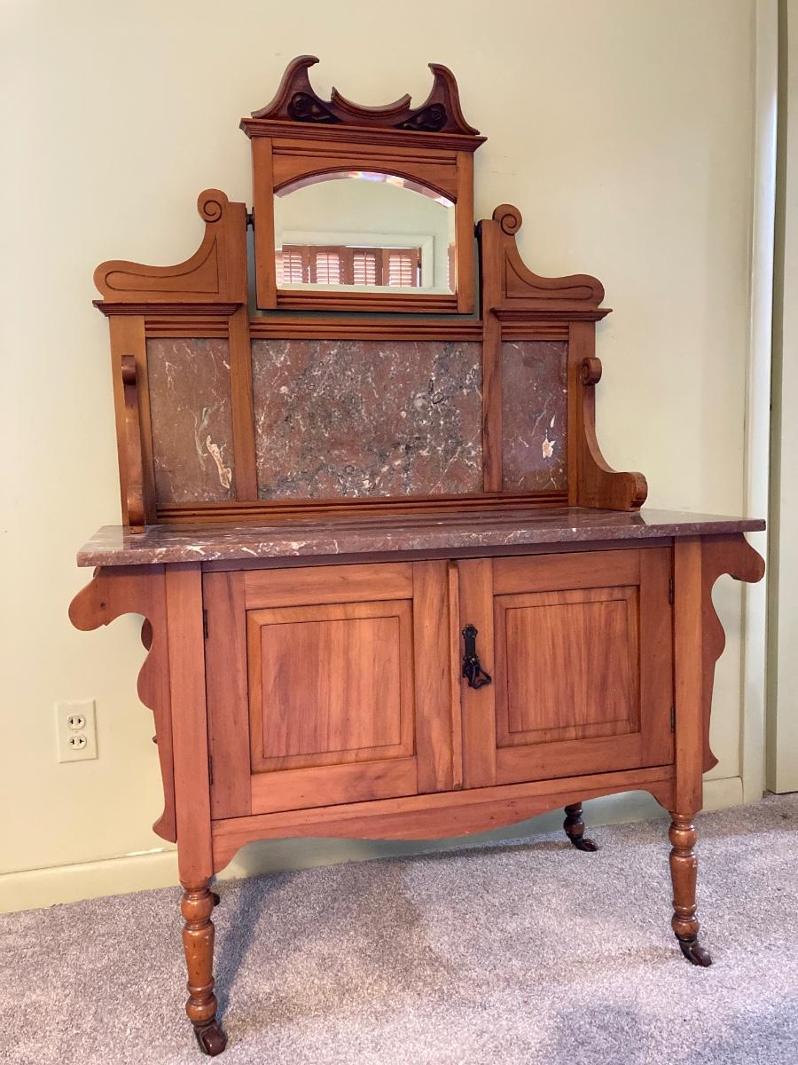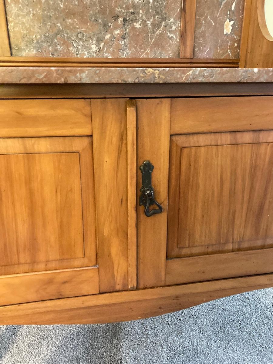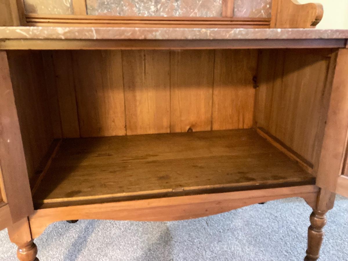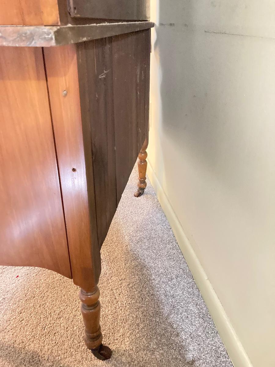 LOT 208B: Vintage Rolling Marble Top Buffet Cabinet