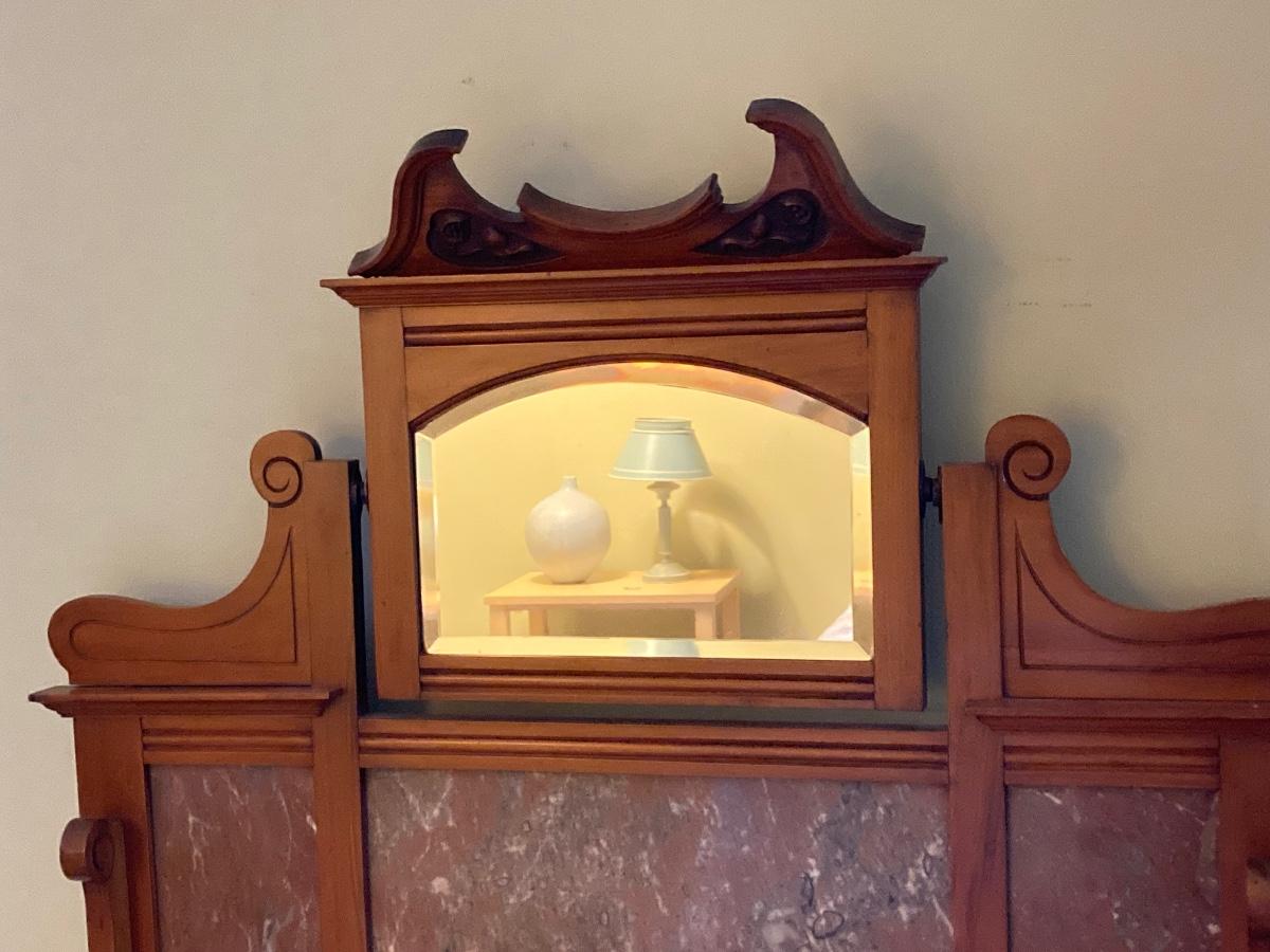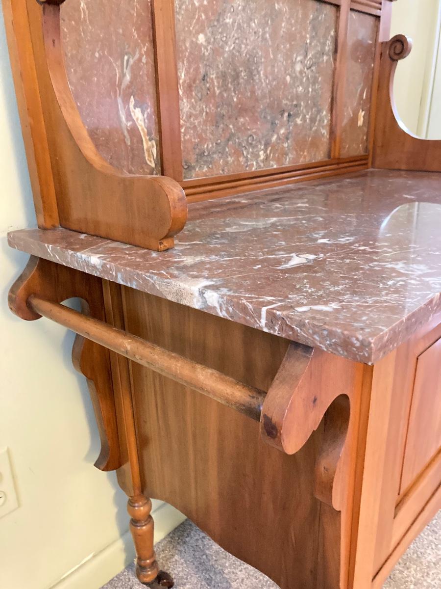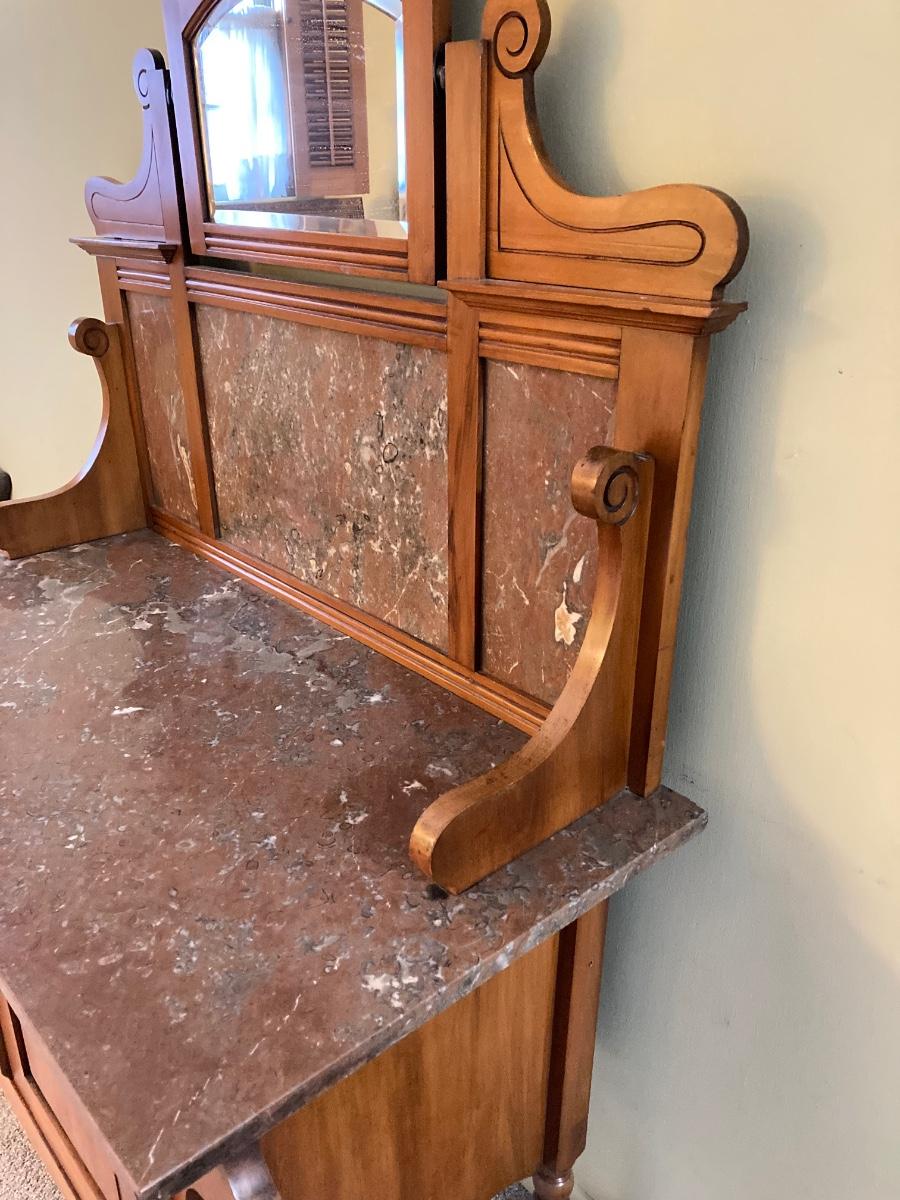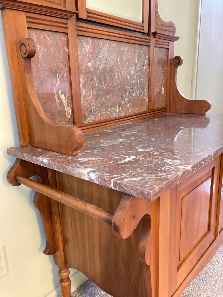LOT 208B: Vintage Rolling Marble Top Buffet Cabinet