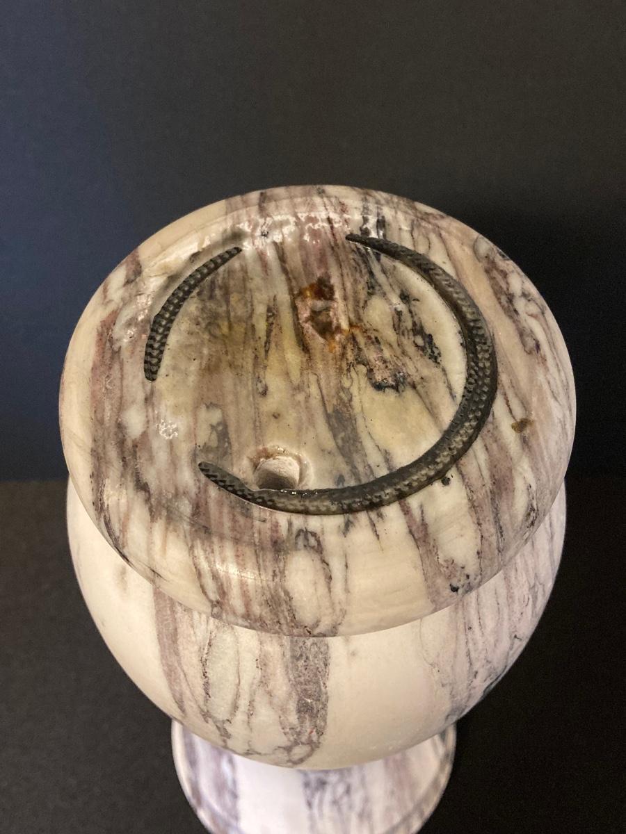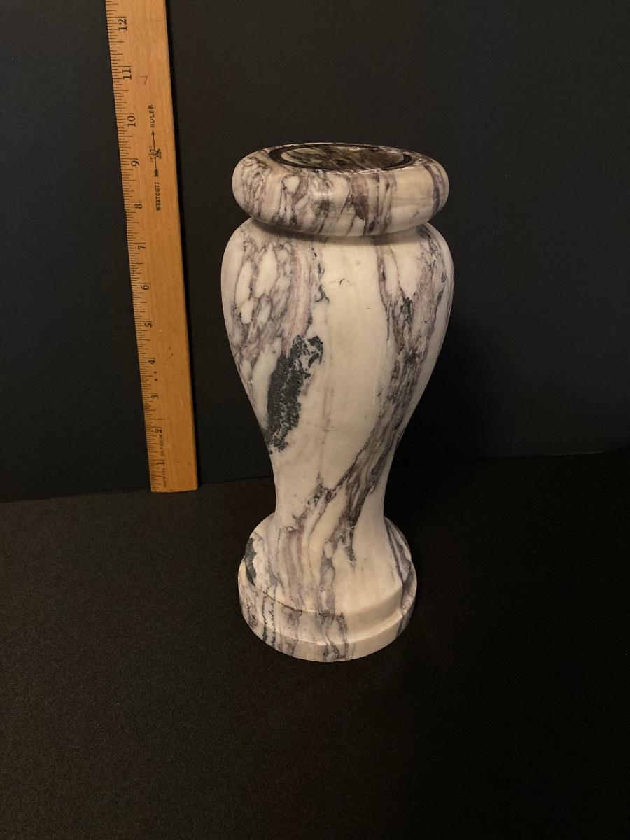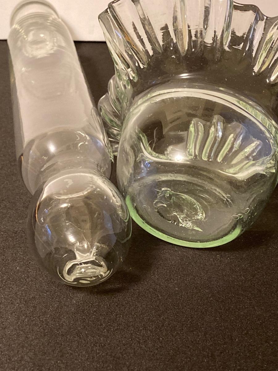 LOT 221F: Hand Blown Rolling Pin, Candy Dish & Wine Glass, Vintage Marble Candle Stick & More